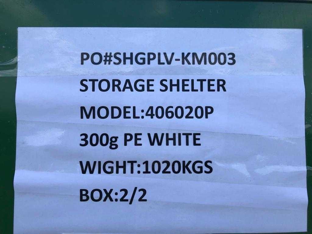 Eversteel Opslag tent/Storage Building, afmeting: 18 x 12 x 6,1 mtr, 1900 kg, gegalvaniseerde buizen, met oprolbare deur (maat: 4 x 4,5 mtr) verpakt in 2 ijzeren kratten. Nee Merk: Eversteel Model: EV-40-60-20 Kleur: Wit Gewicht: 1900kg Lengte: 1800cm Breedte: 1200cm Hoogte: 610cm