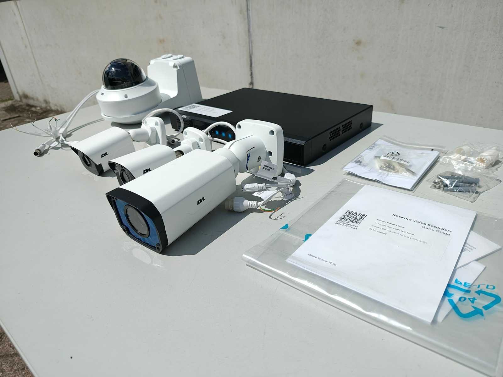 Beveiling set met 4 camera's en een recorder. netwerk video recorder / 16 poorten DWL-NVR16P 2x kleine IP camera DWL-BF01 1x grote camera DWL-BM02, 1x bol camera DWL-DVV03, 1x kleine bol camera DWL-DFV02met bevestigingsbeugel ongebruikt in doos Nee Merk: DWL Model: NVR16P