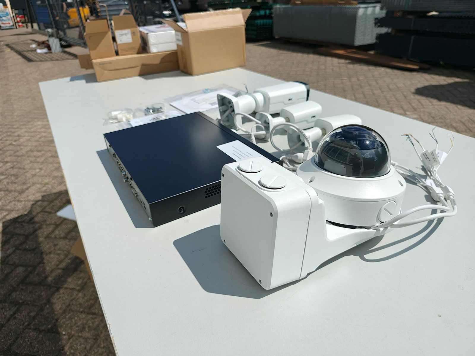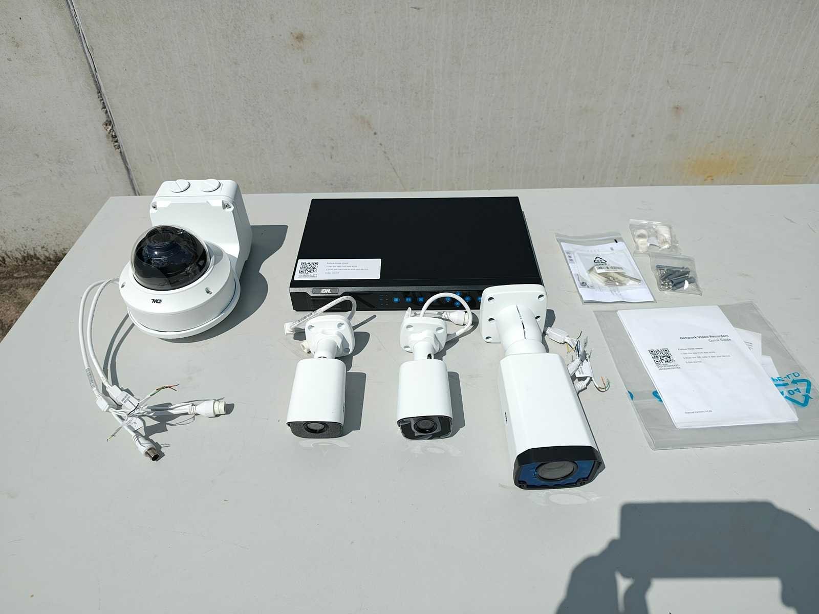 Beveiling set met 4 camera's en een recorder. netwerk video recorder / 16 poorten DWL-NVR16P 2x kleine IP camera DWL-BF01 1x grote camera DWL-BM02, 1x bol camera DWL-DVV03, 1x kleine bol camera DWL-DFV02met bevestigingsbeugel ongebruikt in doos Nee Merk: DWL Model: NVR16P