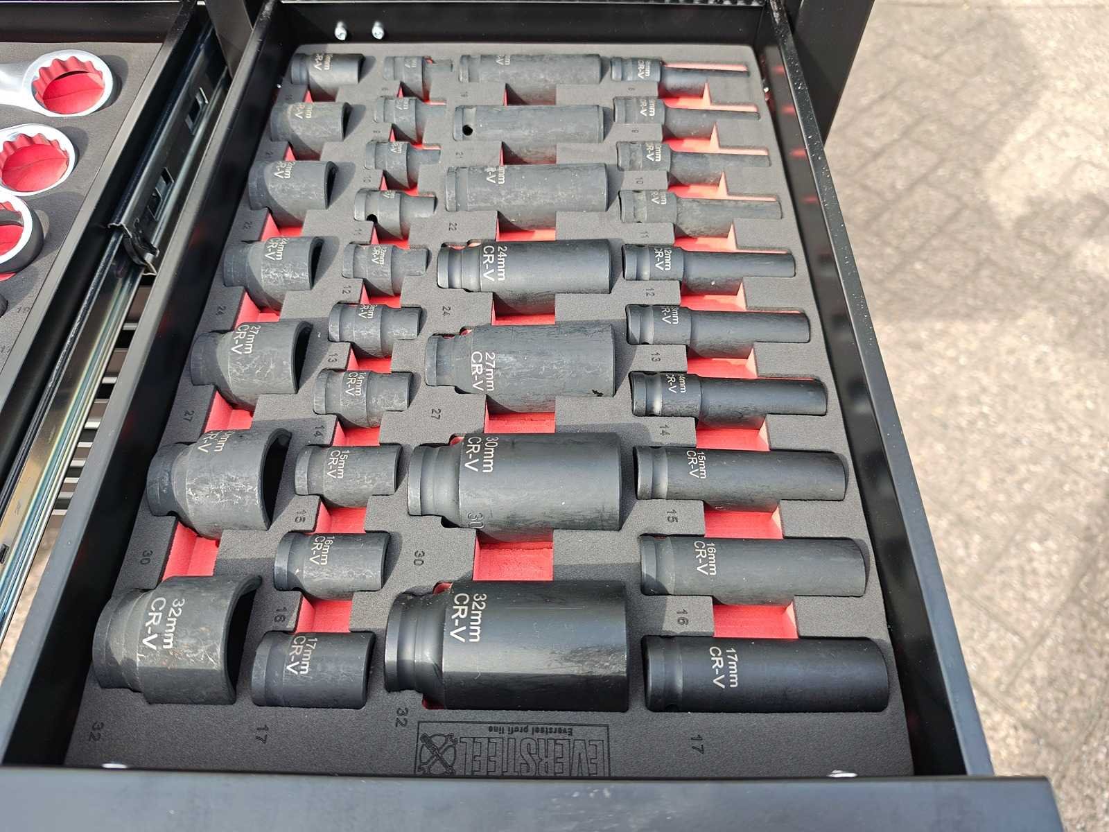 Professionele gereedschapswagen 14 laden, gevuld met gereedschap voor alledaags gebruik, ongebruikt in doos Nee Merk: Eversteel Type: Profi XXL Bouwjaar: 2025 Aantal laden: 14 Met inhoud: true Eigen gewicht: 160kg