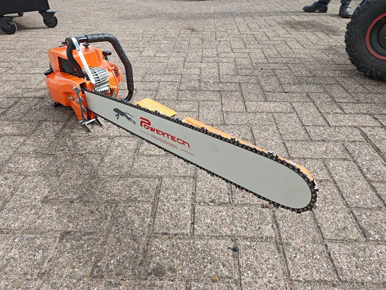 Ongebruikte kettingzaag met zaagblad van 90 cm Nee Merk: Powertech Type: PT8500 Bouwjaar: 2025 Zaagblad afm. l: 900mm Brandstof: benzine Motorvermogen (kW): 4.8kW Eigen gewicht: 10kg