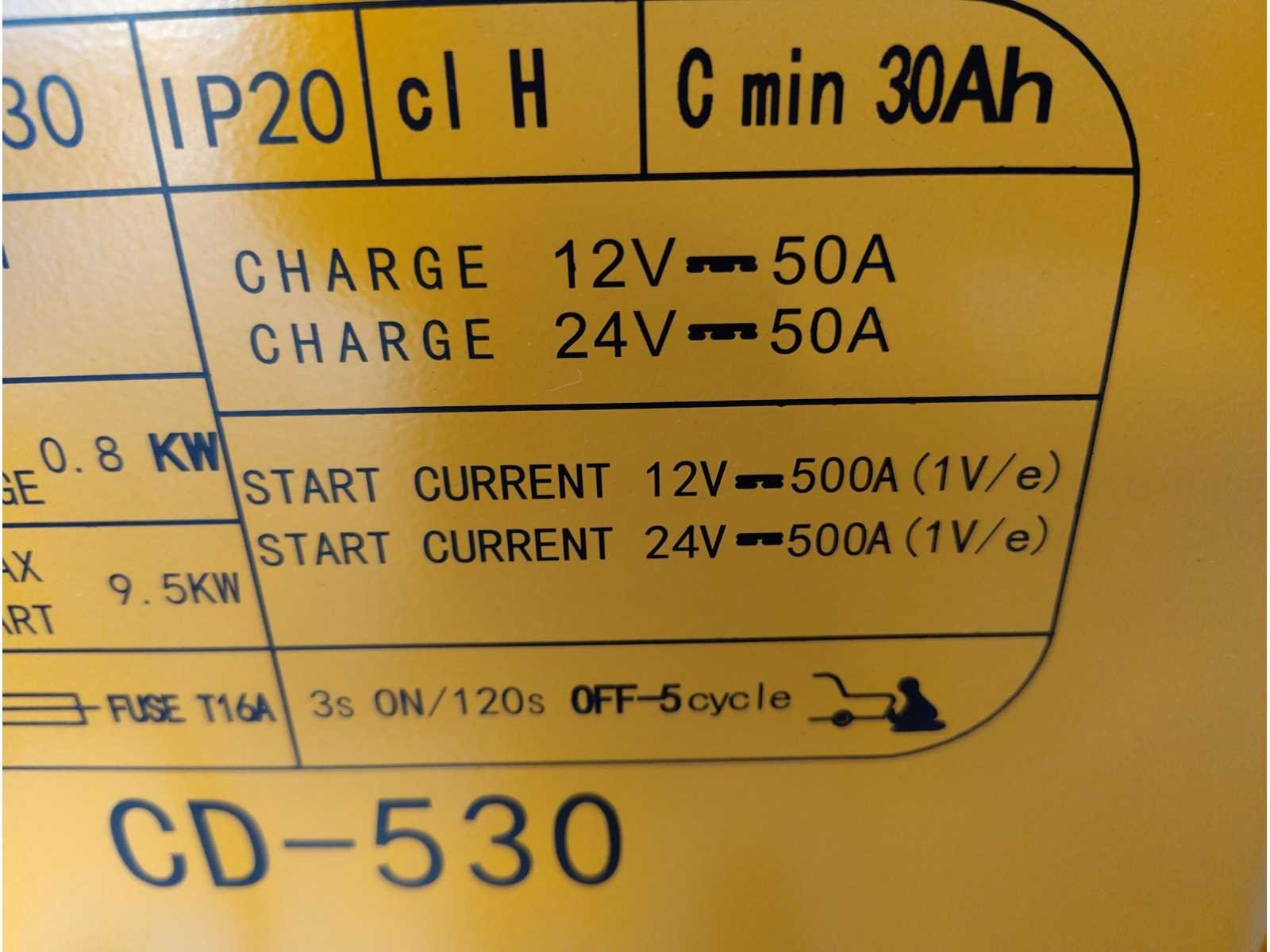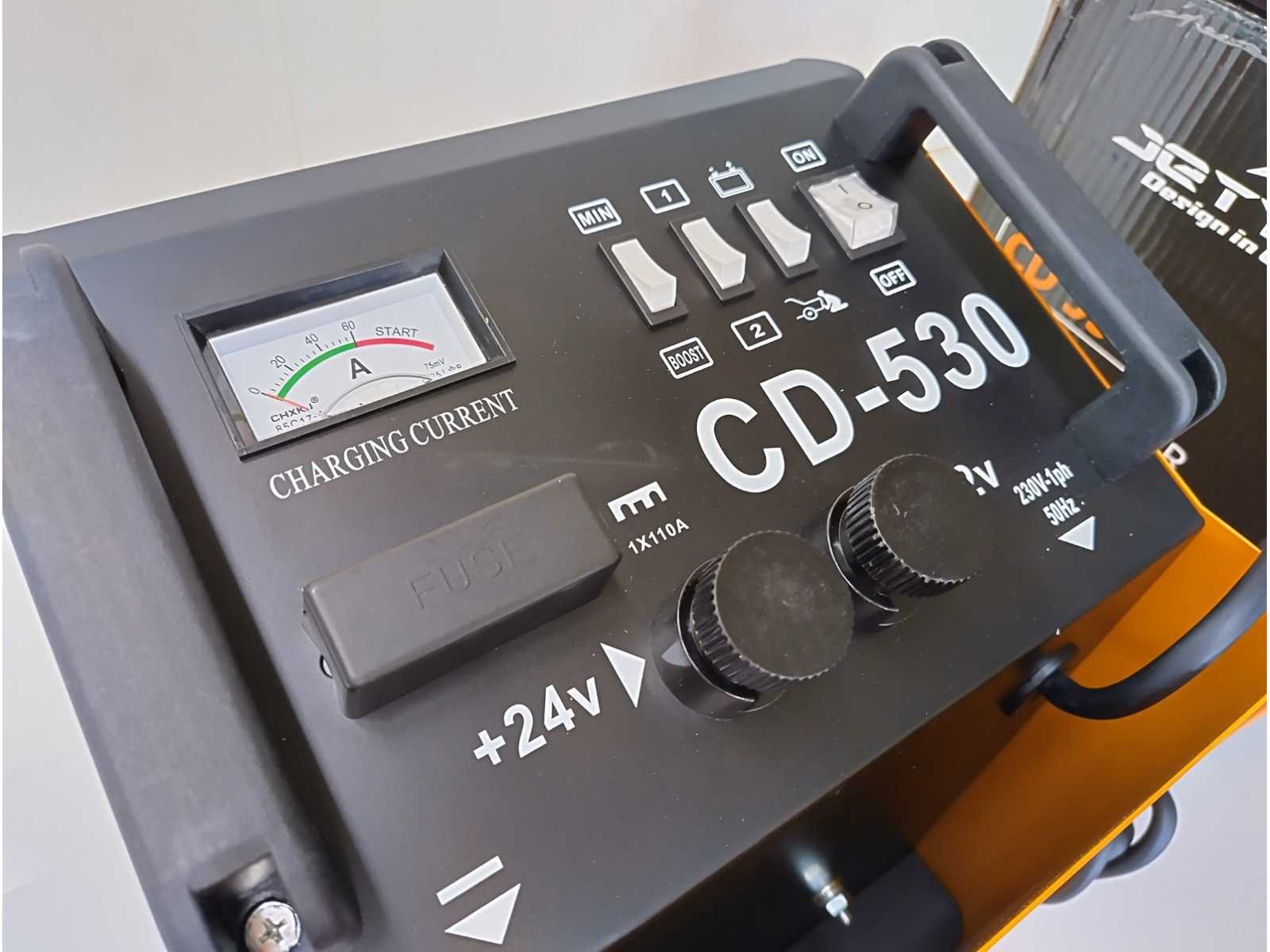 Acculader en booster, geschikt voor snel starten met 500 amp vermogen. ook geschikt voor normaal laden. 12 en 24 Volt. in doos Nee Merk: Jettool Type: CD-530 Bouwjaar: 2025 Spanning: 12.24V Accu lader: true