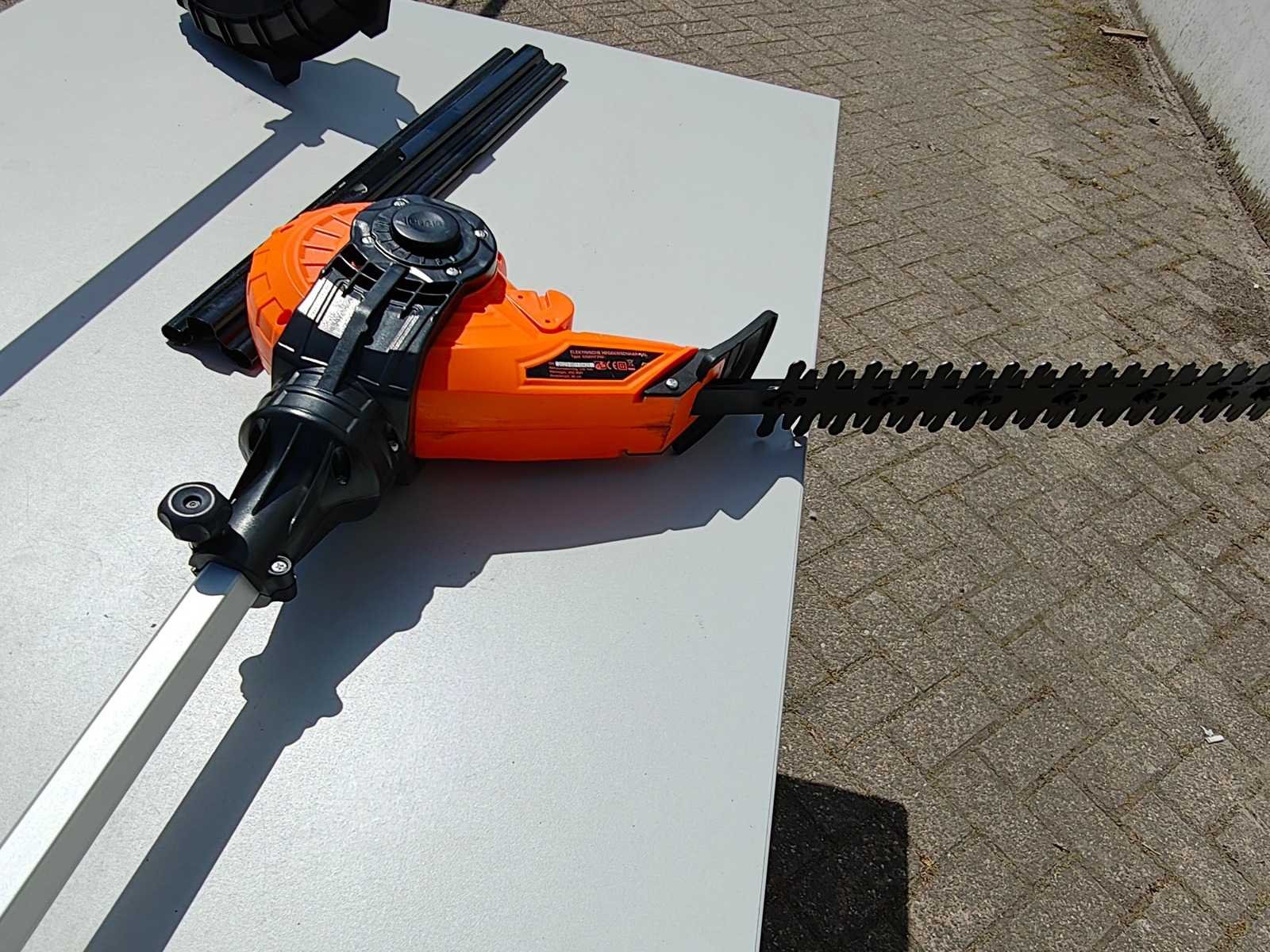 Kibani Accu Heggenschaar XXL – 45 cm Zwaardlengte - 230V - Telescopisch, verstelbare hoogte van 190 tot 250 cm, werkhoek van -60° tot +80°. ongebruikt. Bosmaaier/ grastrimmer op accu. incl accu 20 volt en lader Nee Merk: Kibani Bouwjaar: 2025