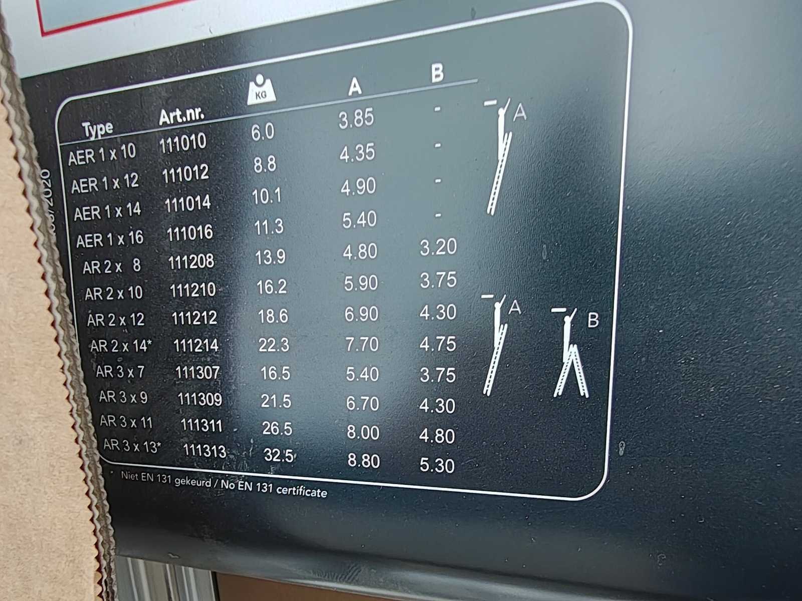2x8 sporten, ongebruikt Nee Merk: Altrex Type: R2040 Aluminium: true Schuifladder: true Dubbel: true Eigen gewicht: 13.9kg