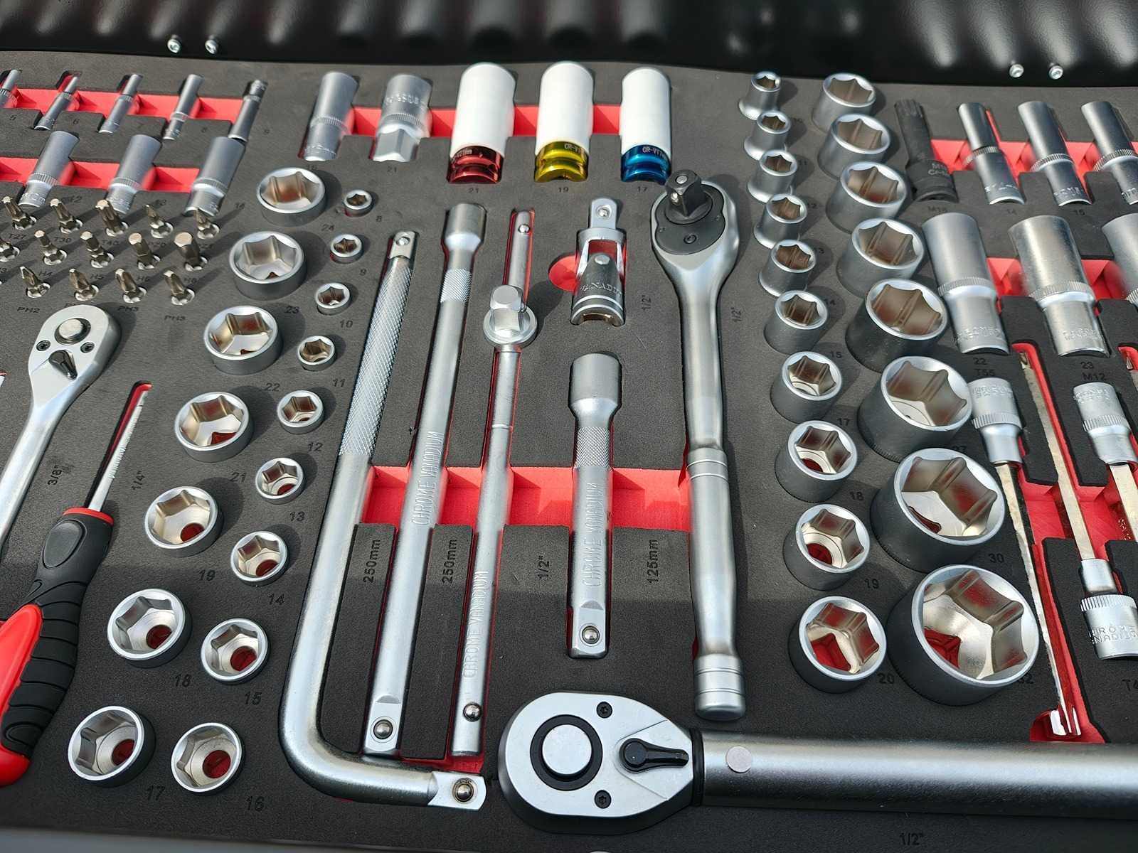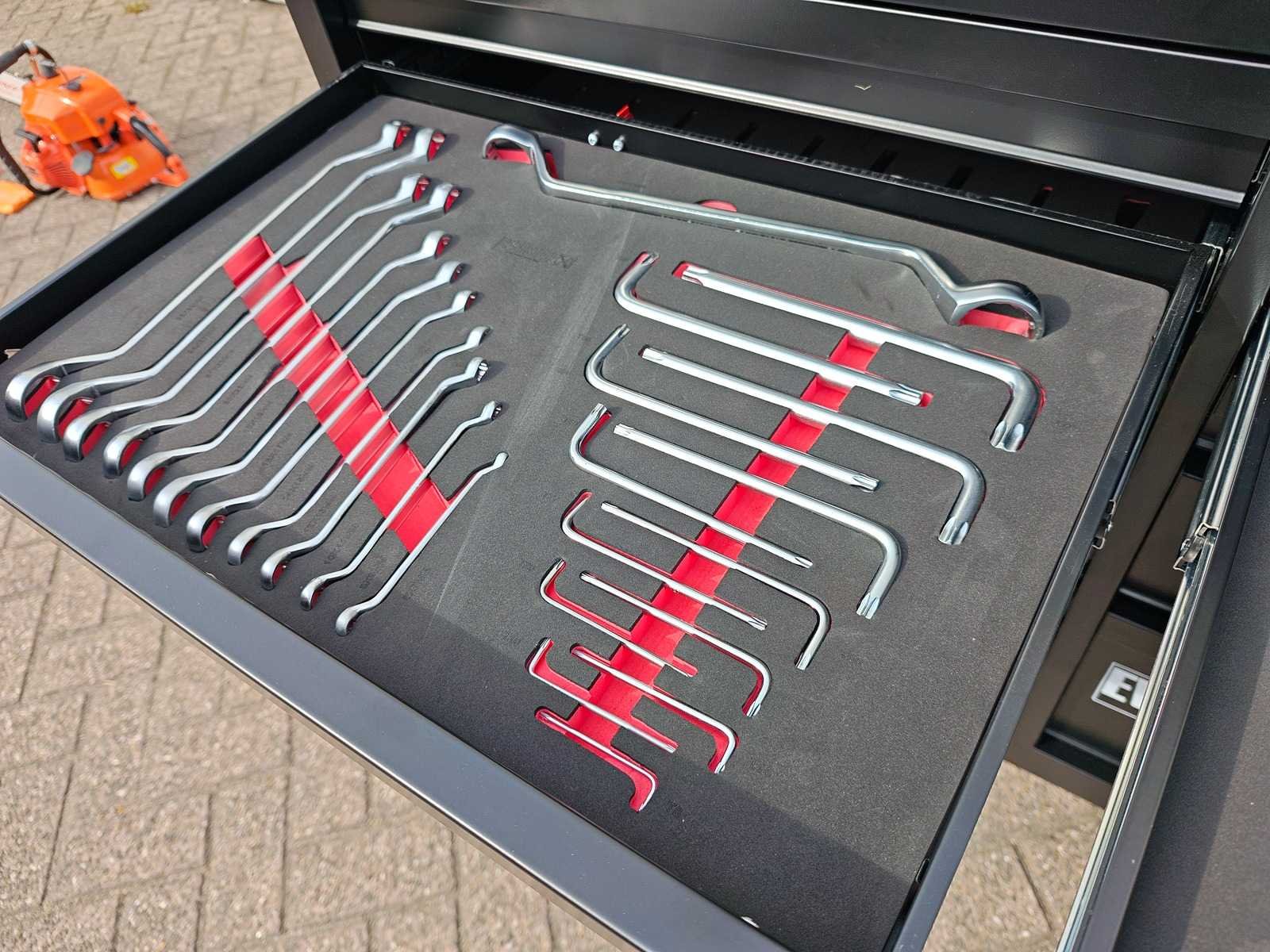Professionele gereedschapswagen 14 laden, gevuld met gereedschap voor alledaags gebruik, ongebruikt in doos Nee Merk: Eversteel Type: Profi XXL Bouwjaar: 2025 Aantal laden: 14 Met inhoud: true Eigen gewicht: 160kg