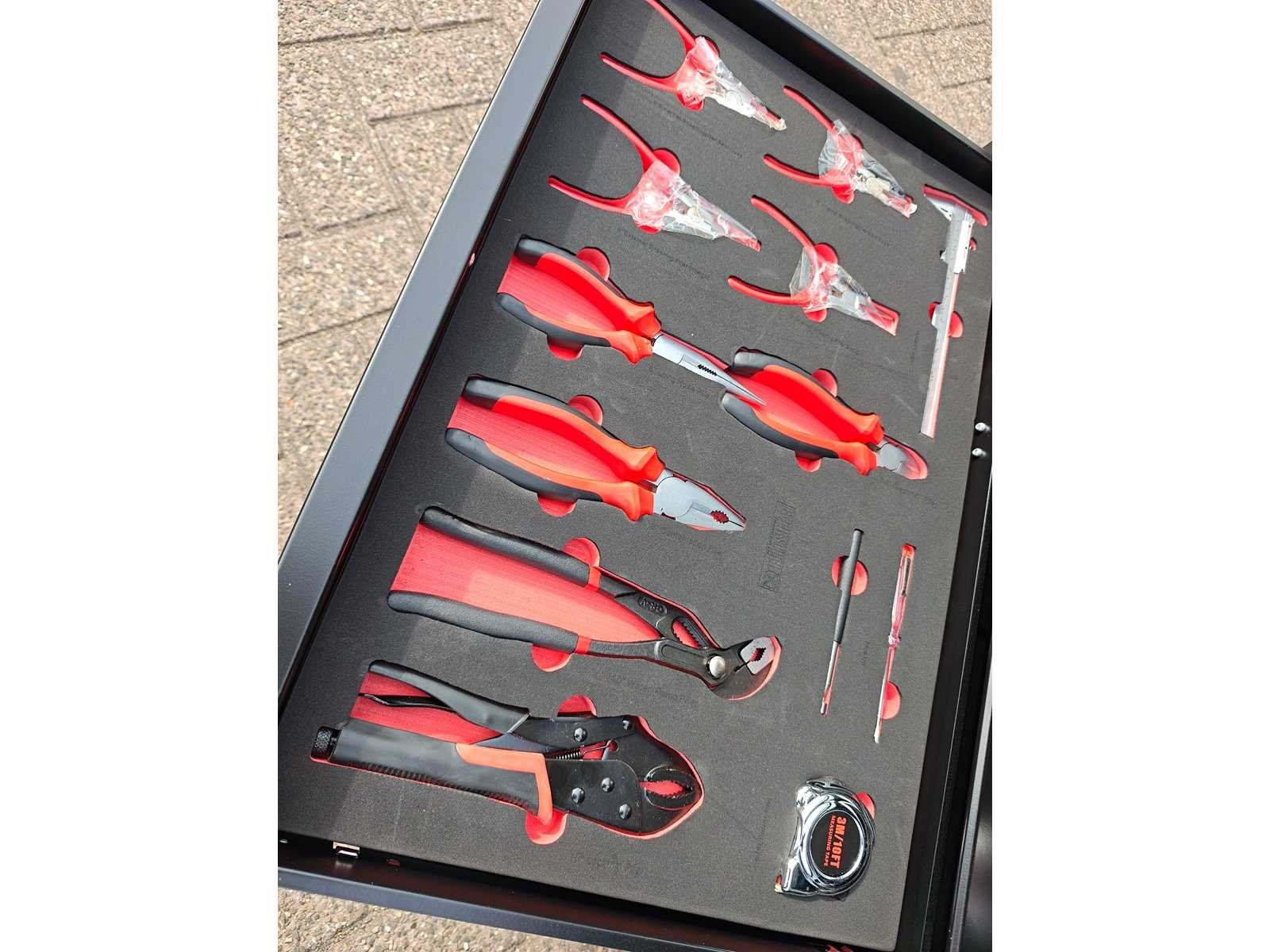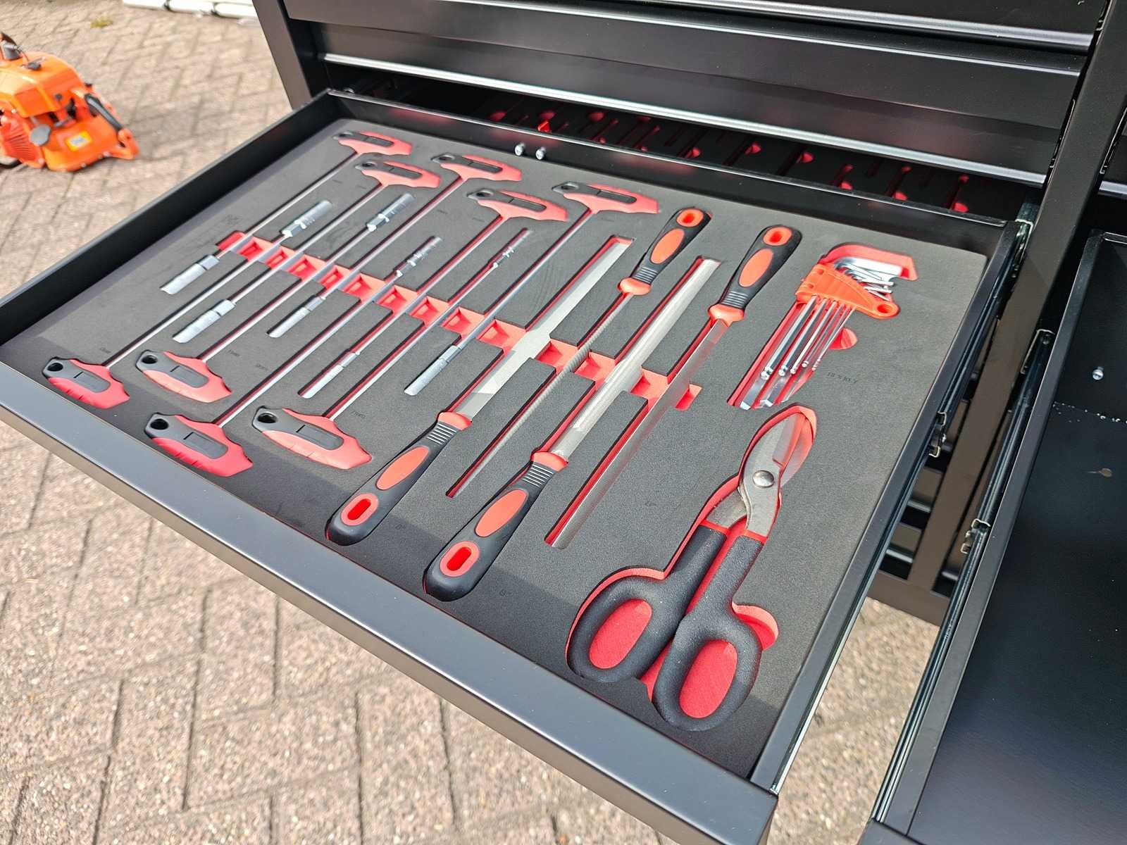 Professionele gereedschapswagen 14 laden, gevuld met gereedschap voor alledaags gebruik, ongebruikt in doos Nee Merk: Eversteel Type: Profi XXL Bouwjaar: 2025 Aantal laden: 14 Met inhoud: true Eigen gewicht: 160kg
