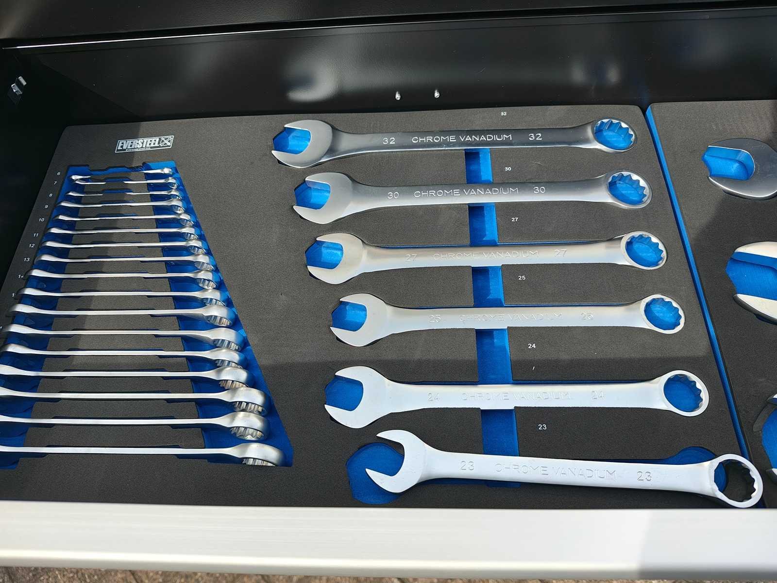 Zware Gereedschapswagen gevuld met gereedschap tot 50mm, lade gevuld met krachtdoppen, ongebruikt in doos Nee Merk: Eversteel Type: Profi XXXL Bouwjaar: 2025 Aantal laden: 13 Met inhoud: true Eigen gewicht: 180kg
