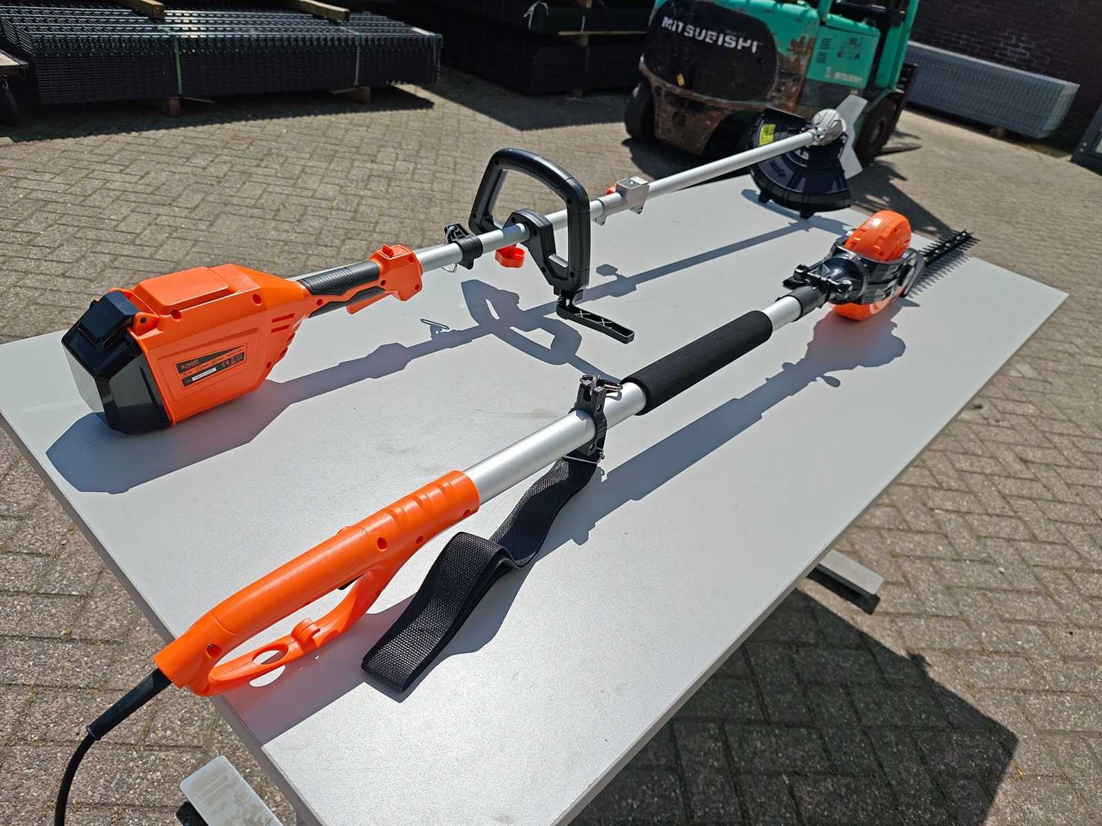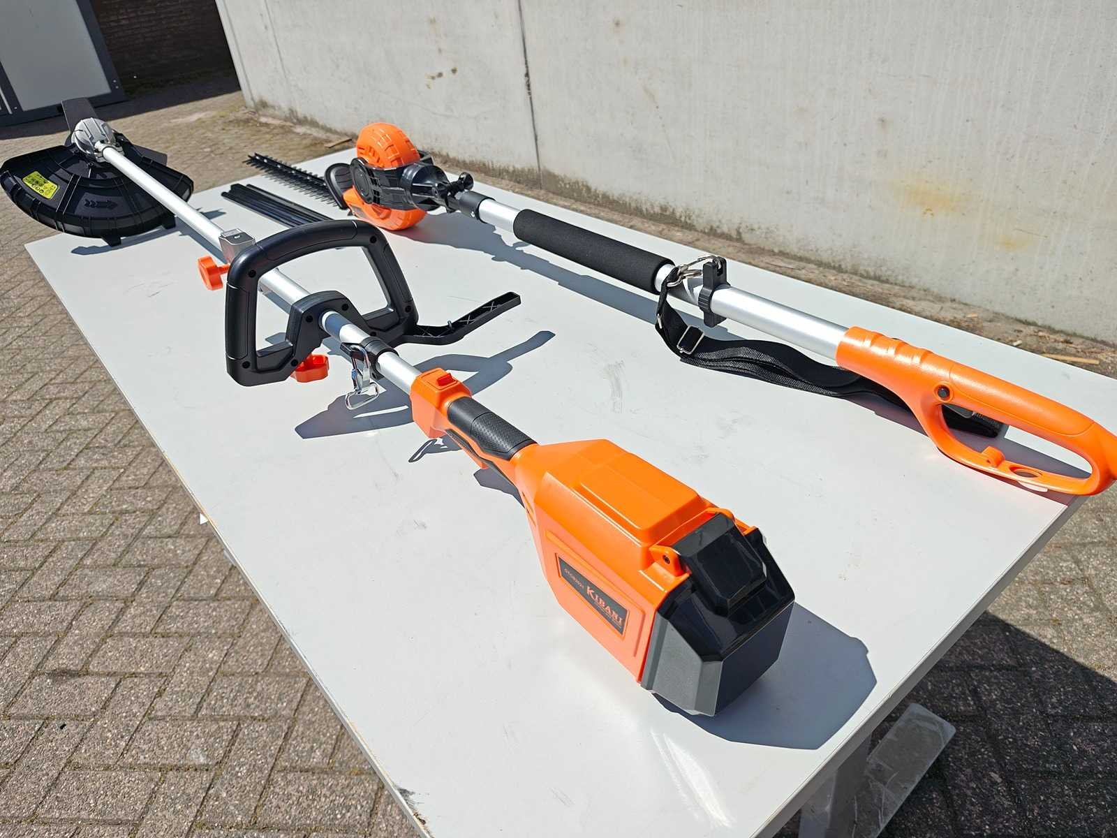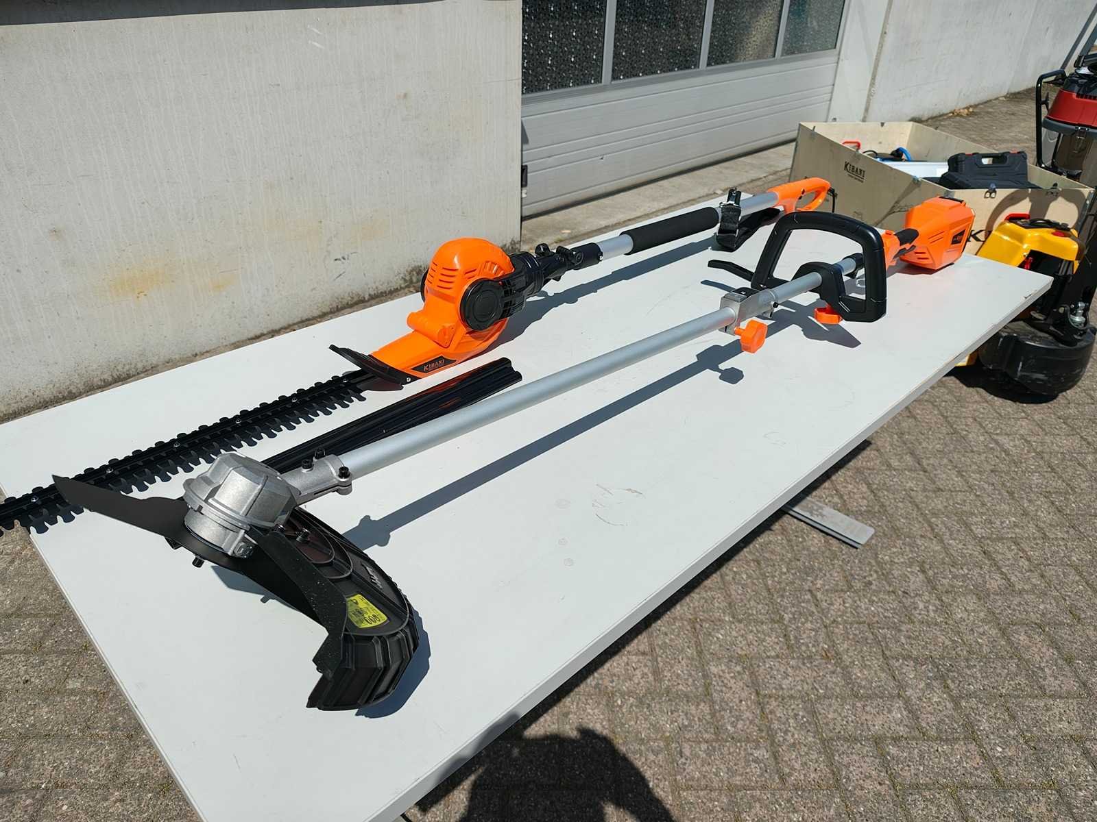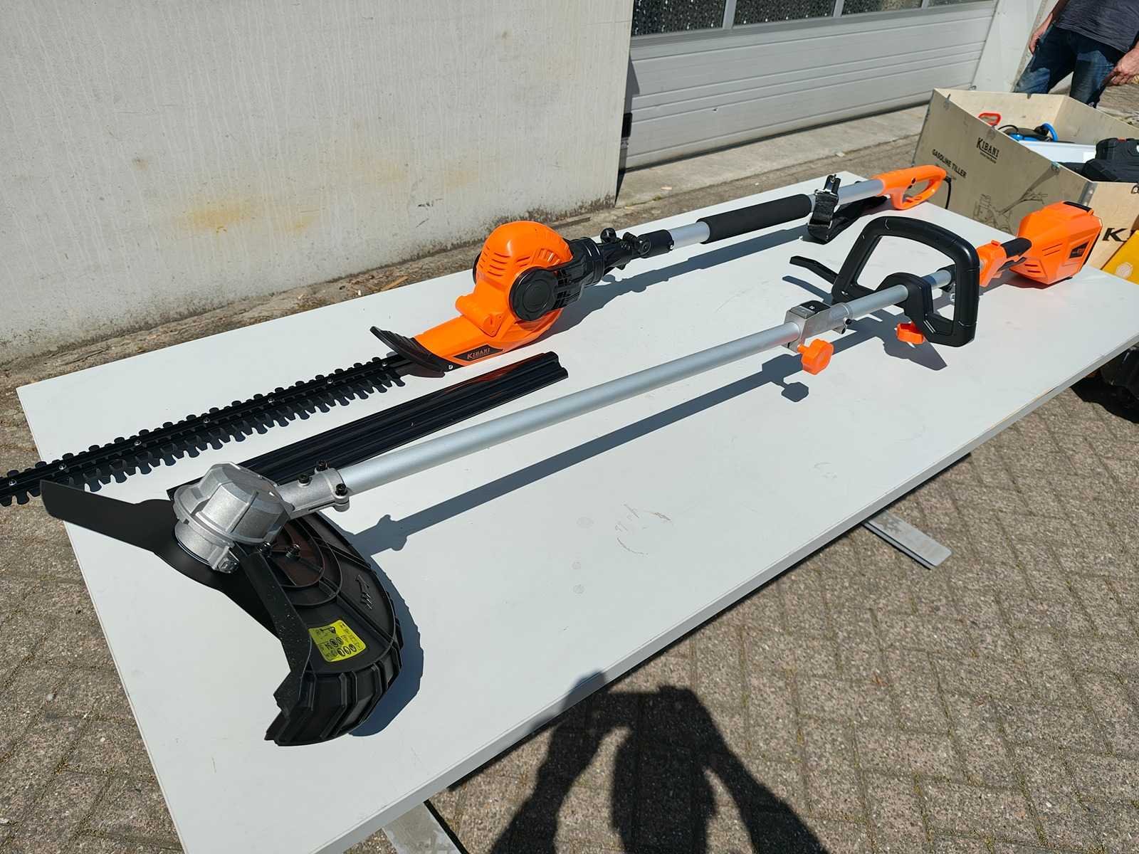 Kibani Accu Heggenschaar XXL – 45 cm Zwaardlengte - 230V - Telescopisch, verstelbare hoogte van 190 tot 250 cm, werkhoek van -60° tot +80°. ongebruikt. Bosmaaier/ grastrimmer op accu. incl accu 20 volt en lader Nee Merk: Kibani Bouwjaar: 2025