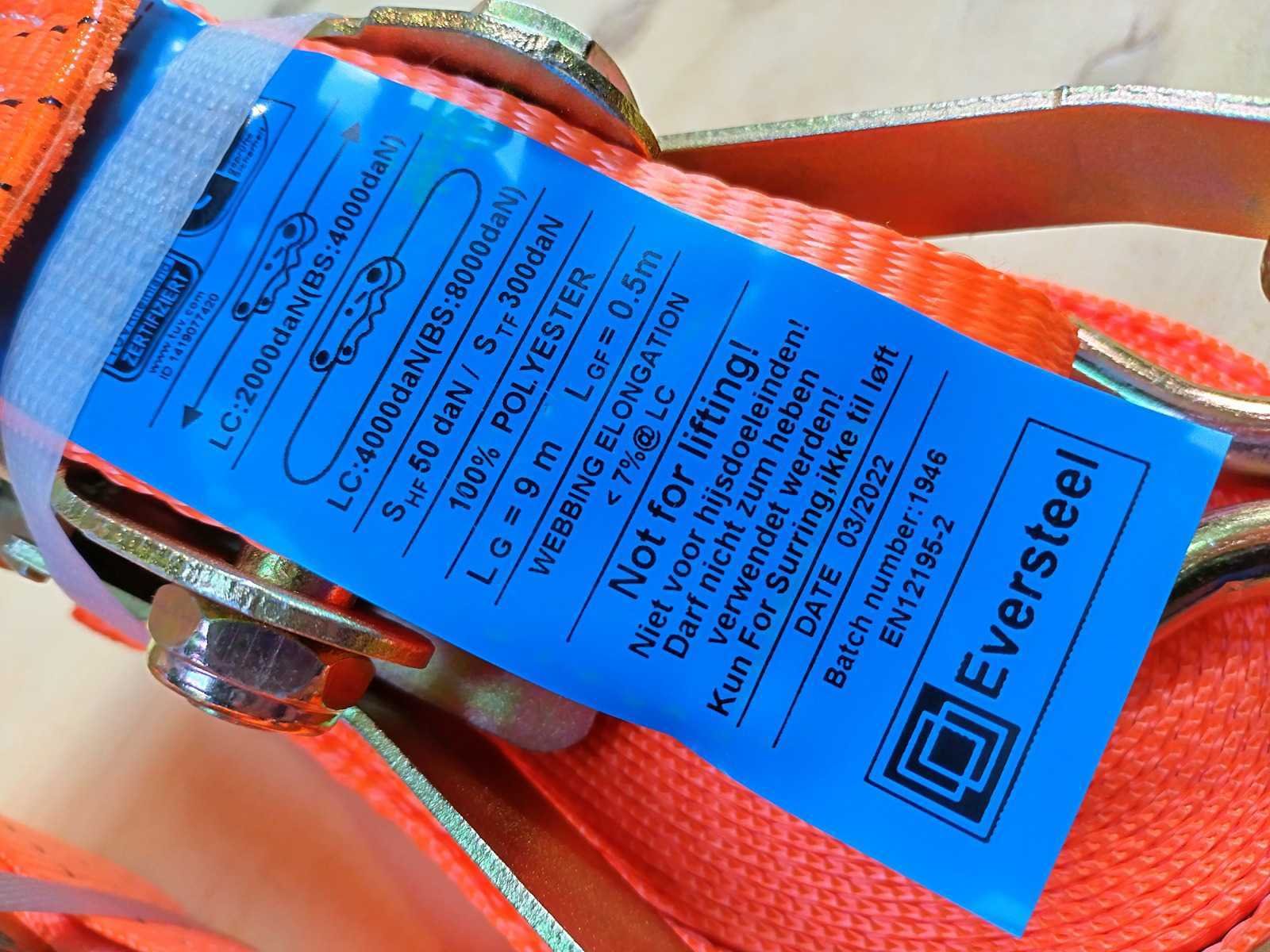 Spanbanden 5 ton 9 meter, CE. ongebruikt in doos Nee Lengte: 900cm Breedte: 5cm