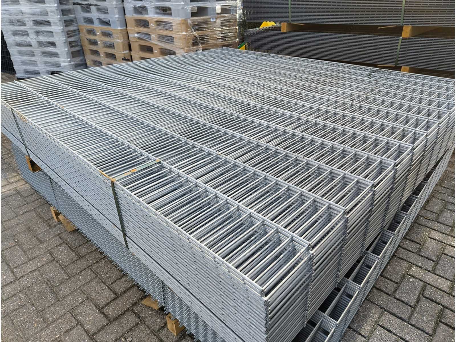 Ongebruikt hekwerk gegalvaniseerd hoogte 243cm lengte 250cm. draadstaaf dikte 8mmx6mmx8mm extra zwaar. totaalgewicht pakket 1490kg Nee Merk: Heras Model: 8/6/8 Lengte: 250cm Hoogte: 243cm