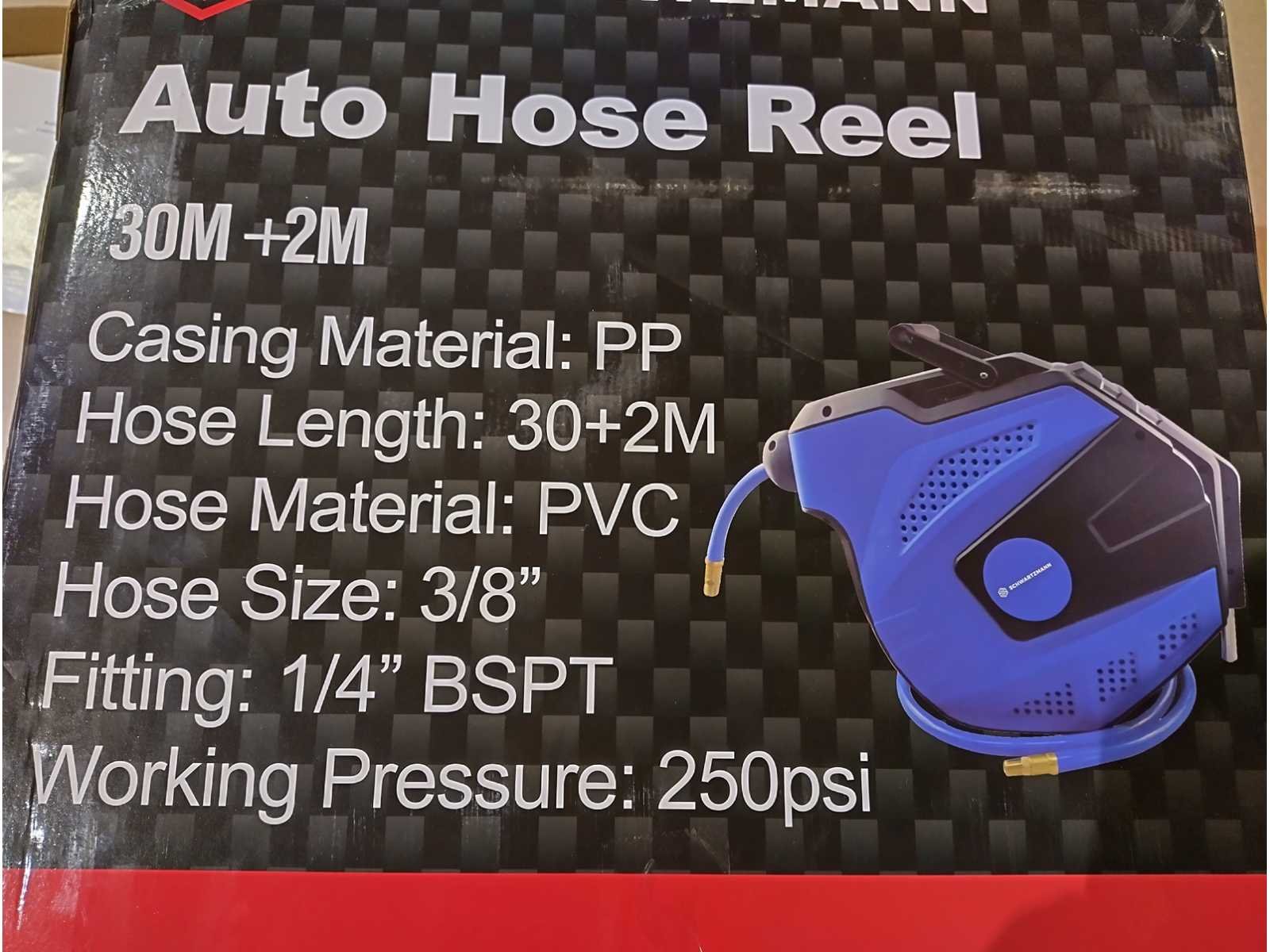 Automatische luchtslanghaspel 30 meter, incl 2 meter aansluitslang, muur bevestiging, in doos Nee Merk: Schwartzmann