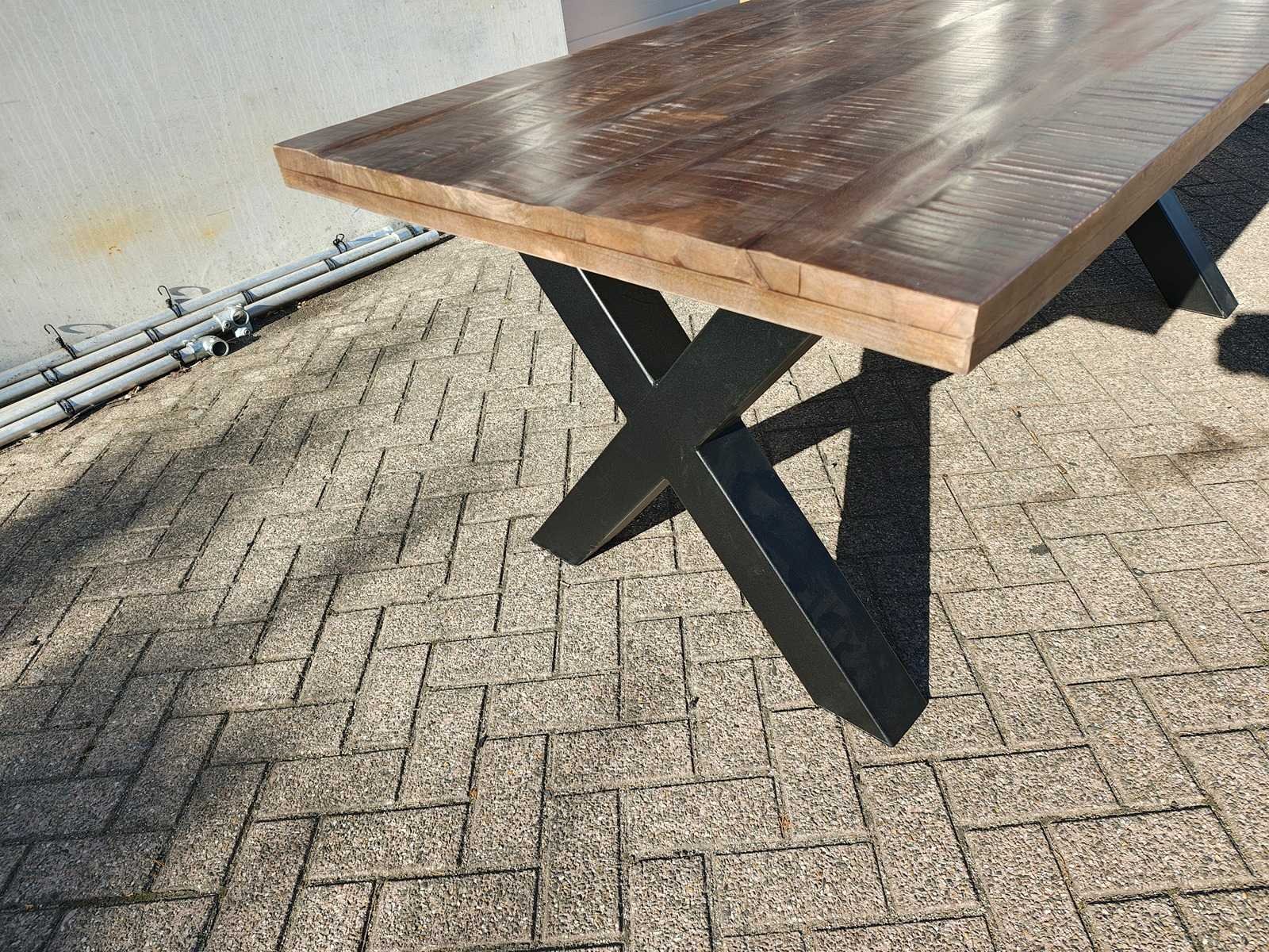 Ongebruikte Mango eetkamertafel 220cm lang met X poten Nee