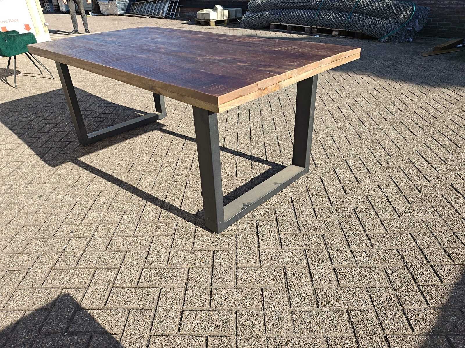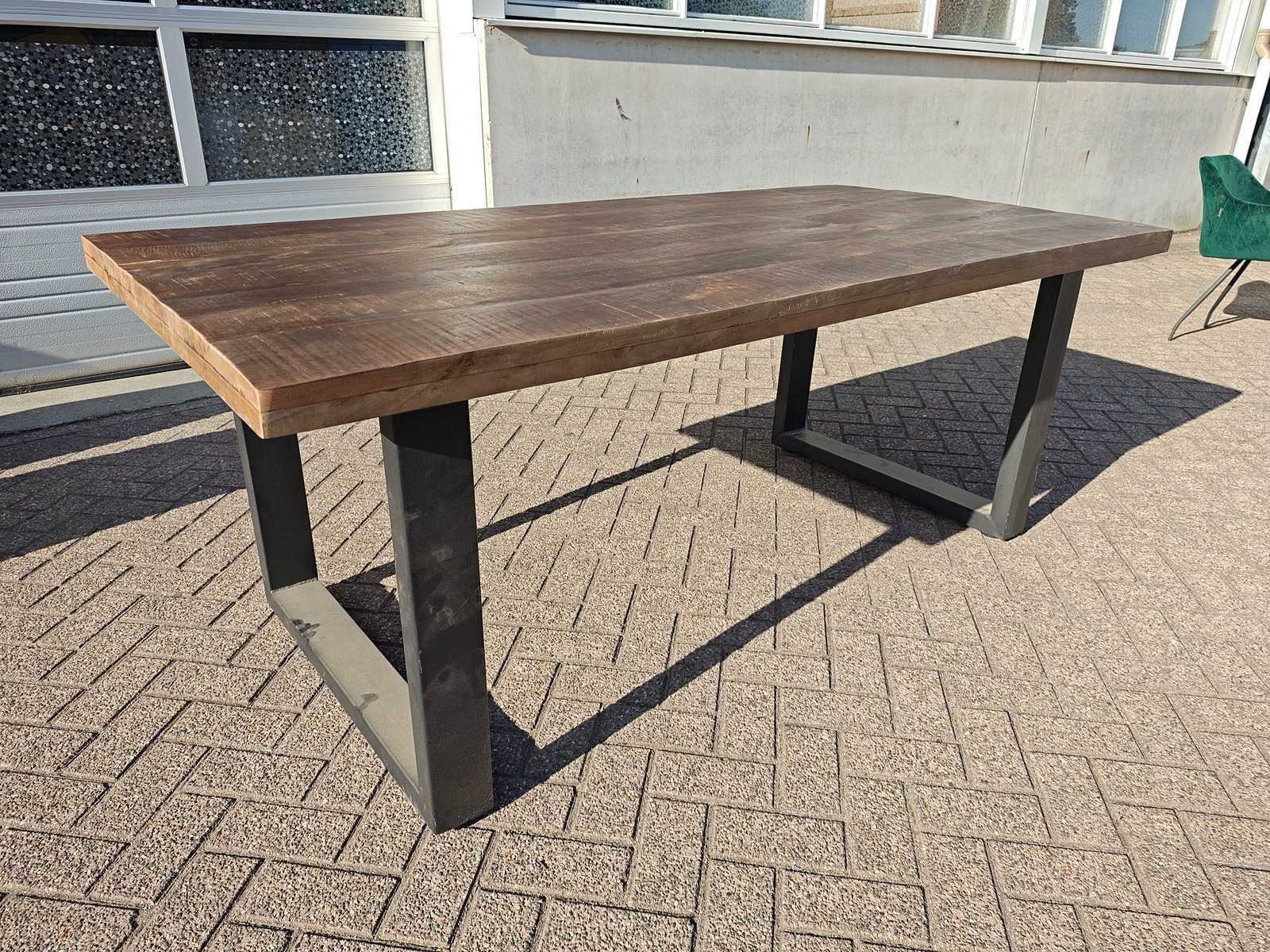 Eetkamertafel Mango 220 cm lengte ongebruikt met U poot Nee