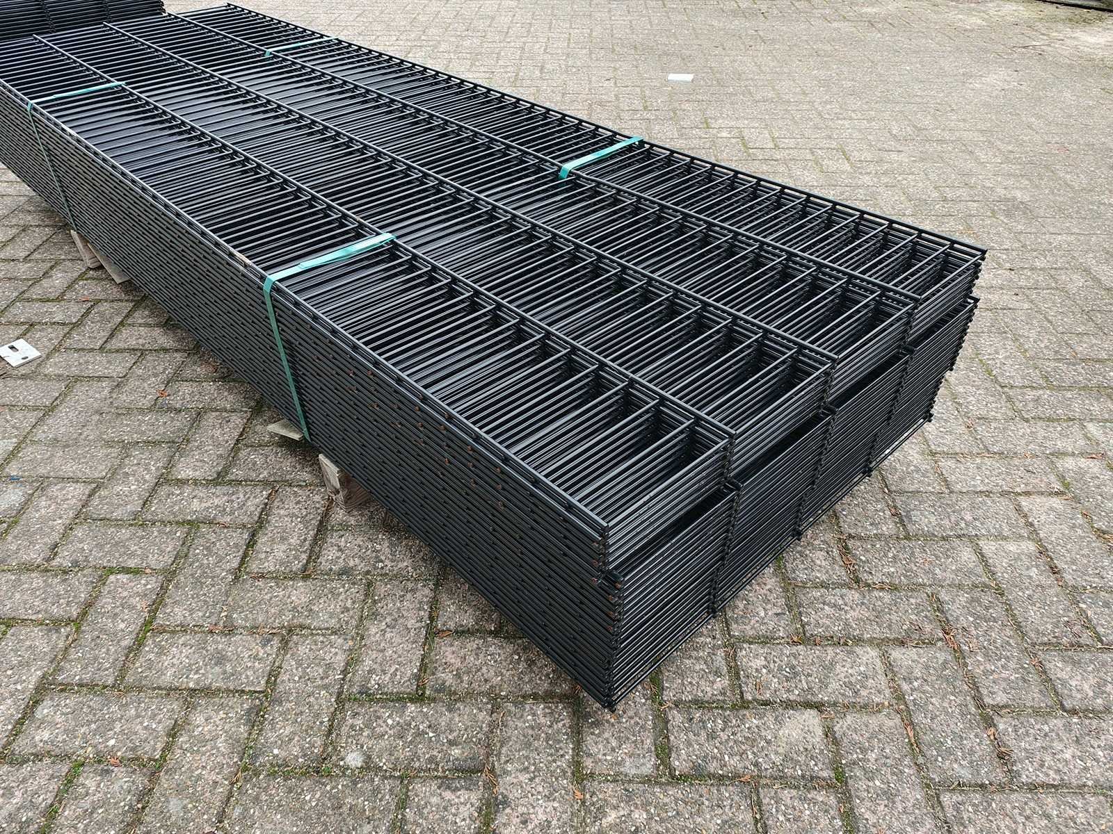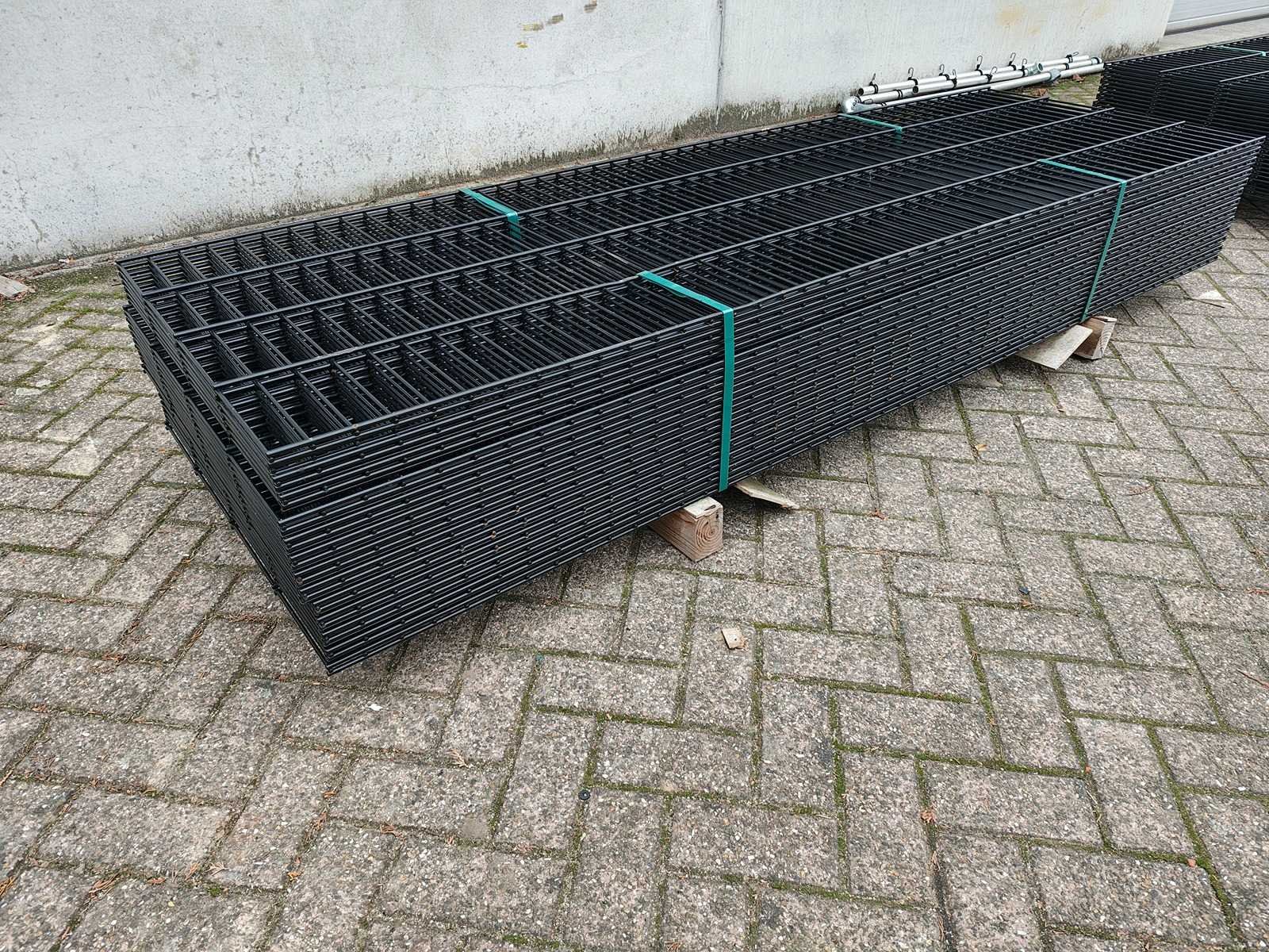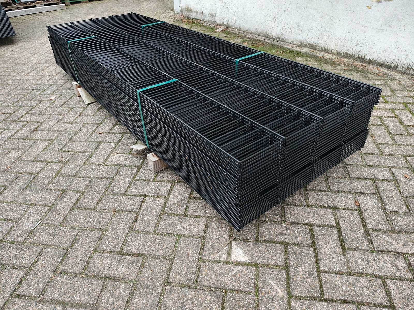 Dubbelstaafs hekwerk 83cm hoog, kleur zwart, lengte 2.50 meter. ongebruikt Nee Merk: Heras Model: 8/6/8 Gewicht: 410kg