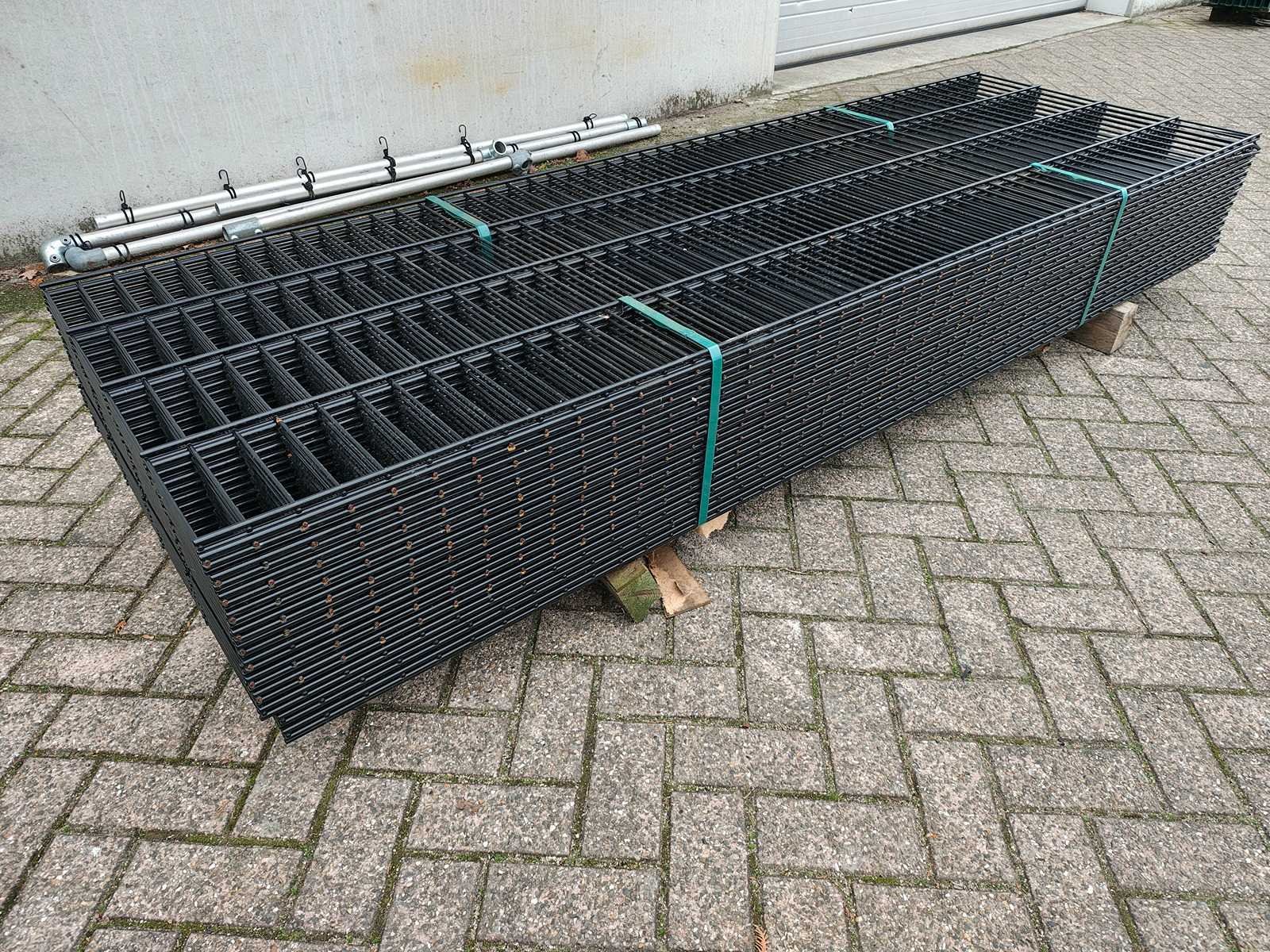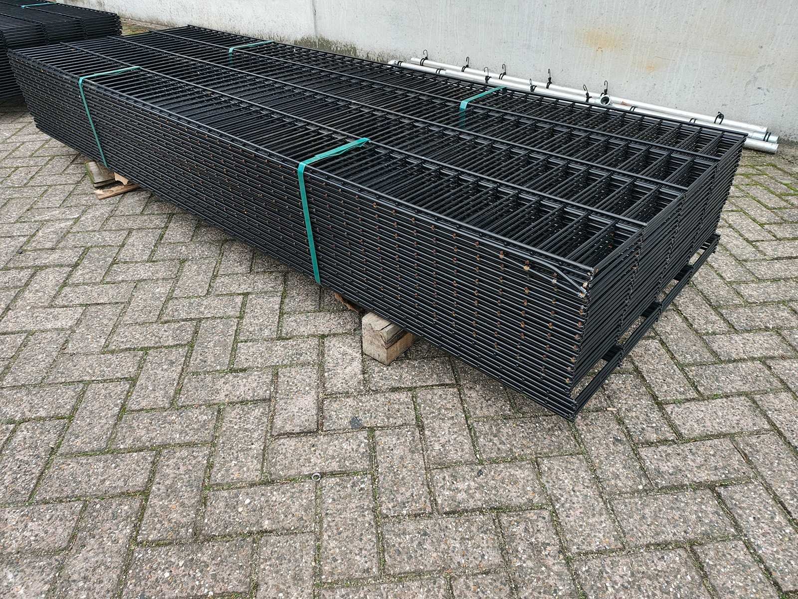 Dubbelstaafs hekwerk 83cm hoog, kleur zwart, lengte 2.50 meter. ongebruikt Nee Merk: Heras Model: 8/6/8 Gewicht: 410kg