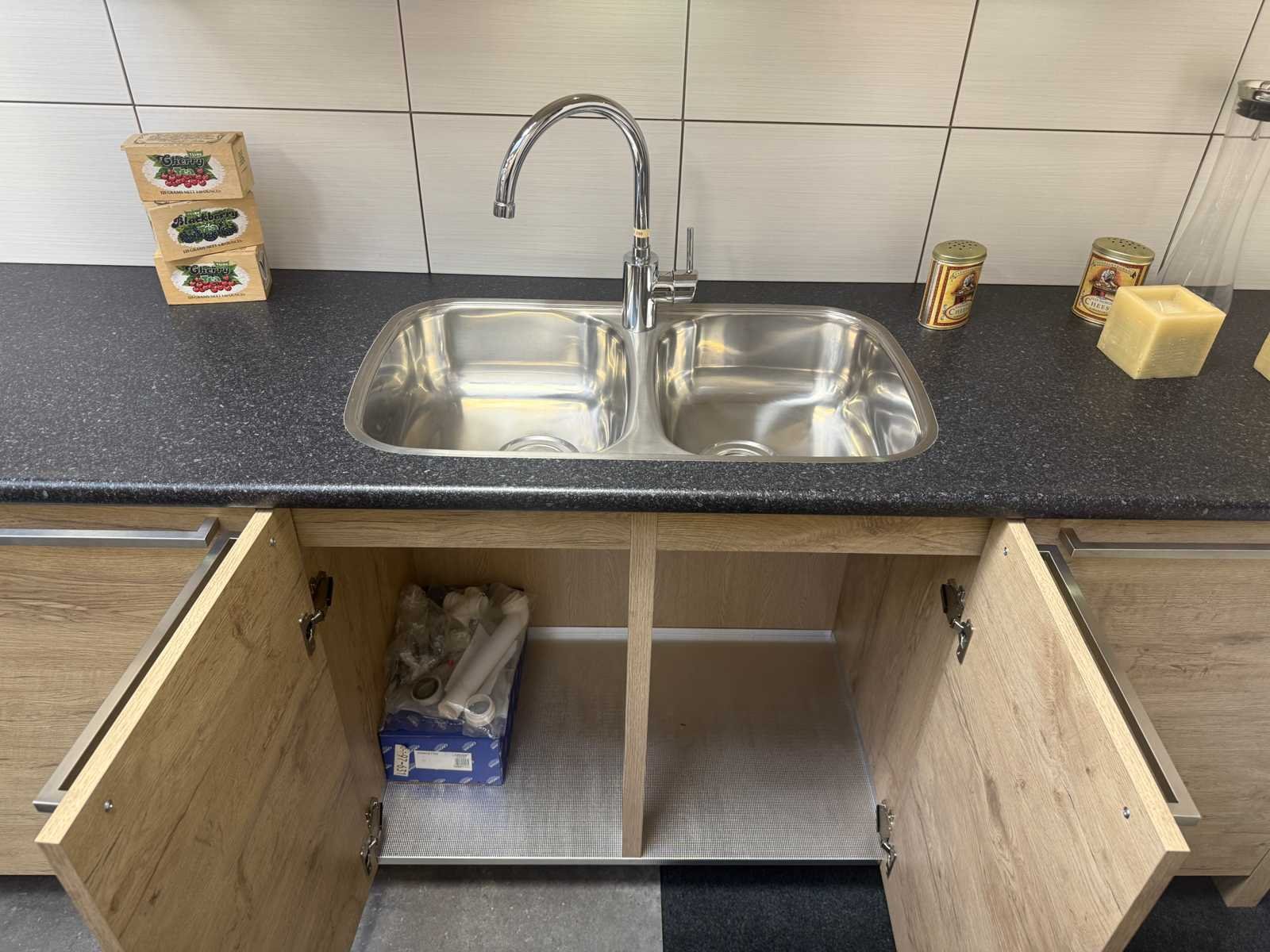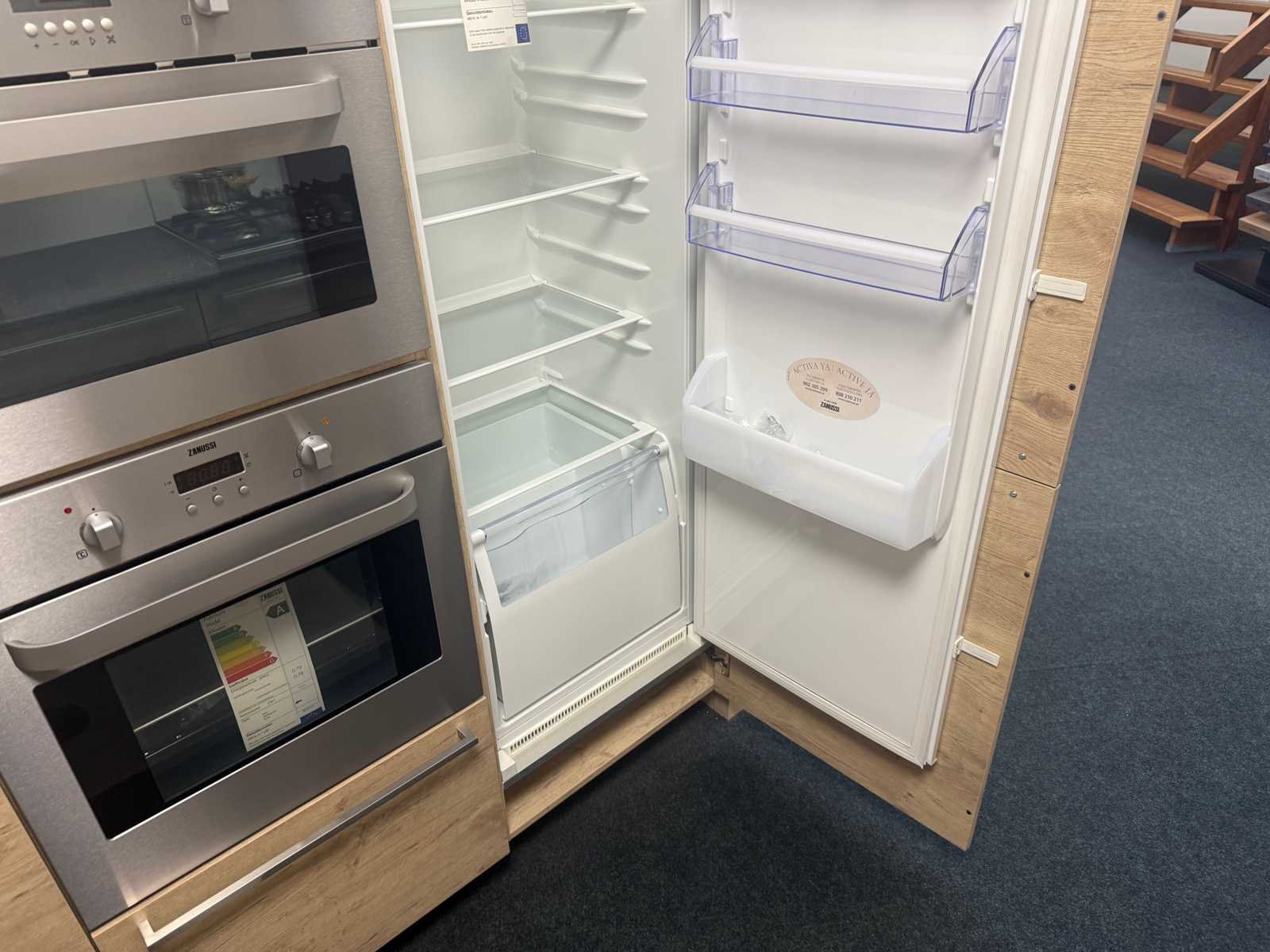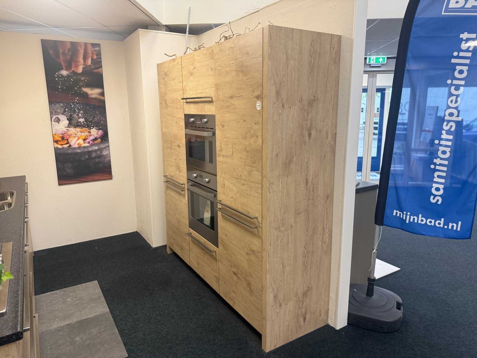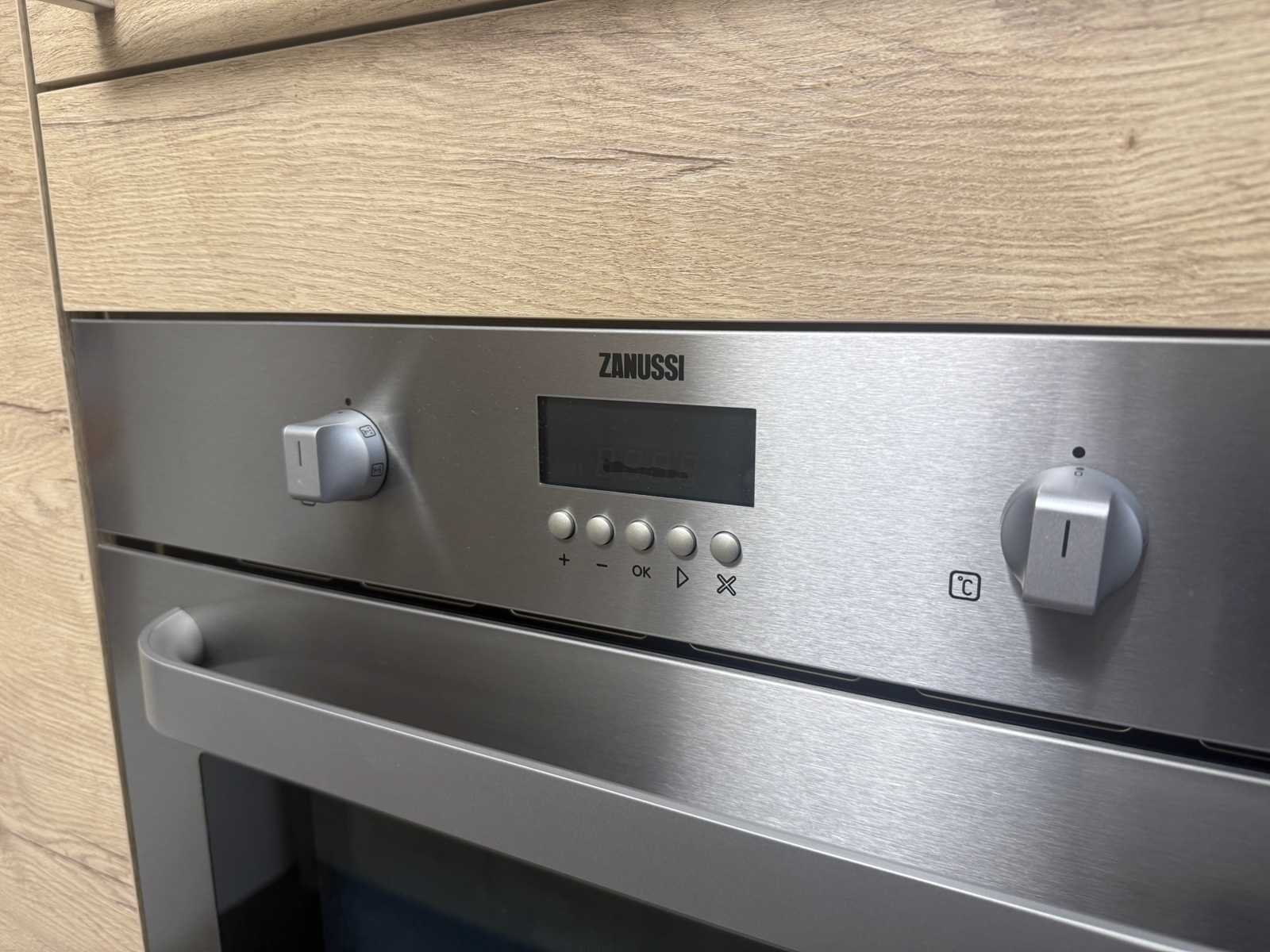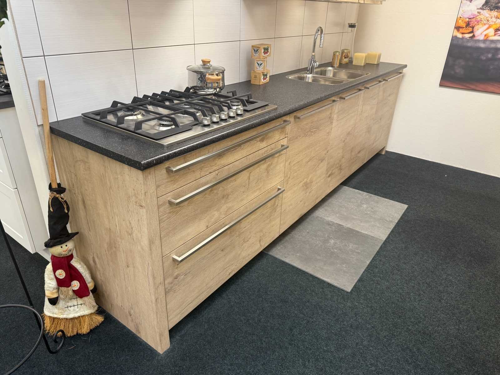 Afmetingen kastenwand circa 188x60x224 cm; keuken dient gedemonteerd te worden op locatie Nee Merk: Rotpunkt Type keukenopstelling: Recht Lengte: 298cm Breedte: 60cm Hoogte: 93cm Aanrechtblad: Kunststof Magnetron: Zanussi BH32Cf2 Fornuis: Zanussi Koelkast: Zanussi ZBA7330 Vriezer: Zanussi ZBF7226 Softclose: true Oven: Zanussi ZOB 461 Afzuigkap: Zanussi E076B Kleur: Eiken gelamineerd