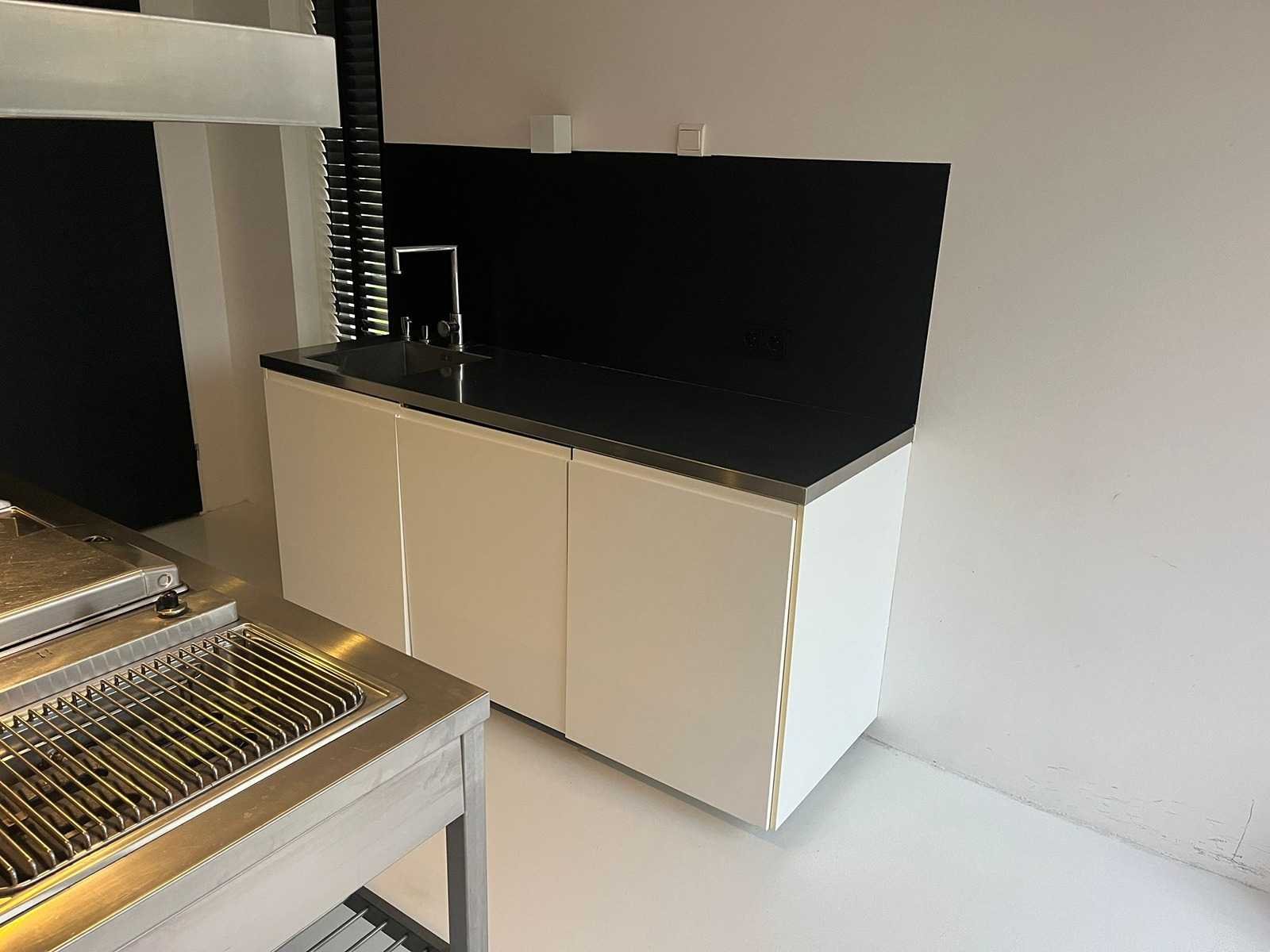 Conditie gebruikt; Let op onderstel niet geheel intact; ingepakt op 4 pallets; Afmetingen rechte deel lxb ca. 184x60 cm; afmetingen eiland lxb ca. 180x120 cm; afmetingen hoge kasten lxbxh ca. 184x62x208 cm; Reeds gedemonteerd en ingepakt op pallets. (afstapelen, omruilen of statiegeld per pallet); Pallets zijn niet inbegrepen; statiegeld betalen bij afhalen, of pallets afstapelen; werkblad niet ingepakt op pallets Nee Type keukenopstelling: Recht + eiland + hoge kasten Kraan: Jan des Bouvrie Gootsteen: Jan des Bouvrie Aanrechtblad: Hout wit + aluminium Fornuis: Alpes inox Softclose: true Oven: niet bekend Afzuigkap: Alpes inox Vaatwasser: niet bekend Hoofdkleur: wit/aluminium