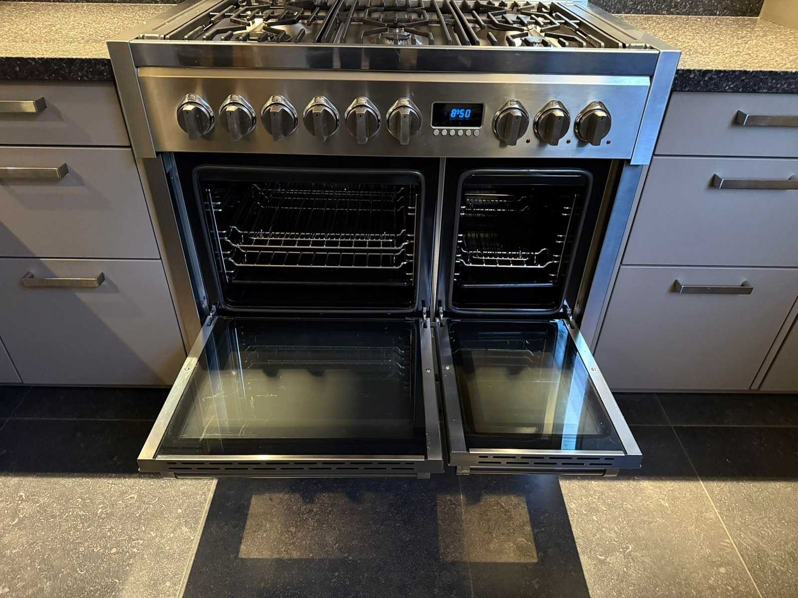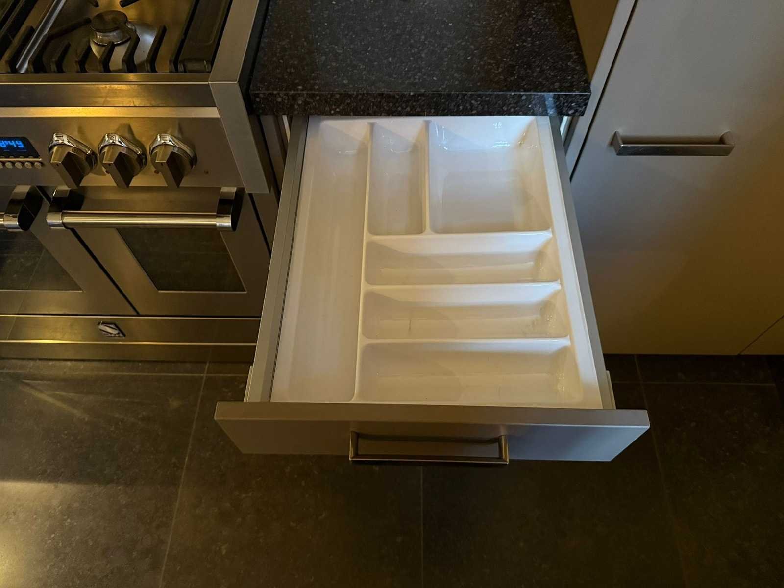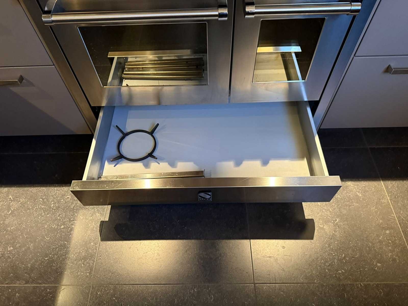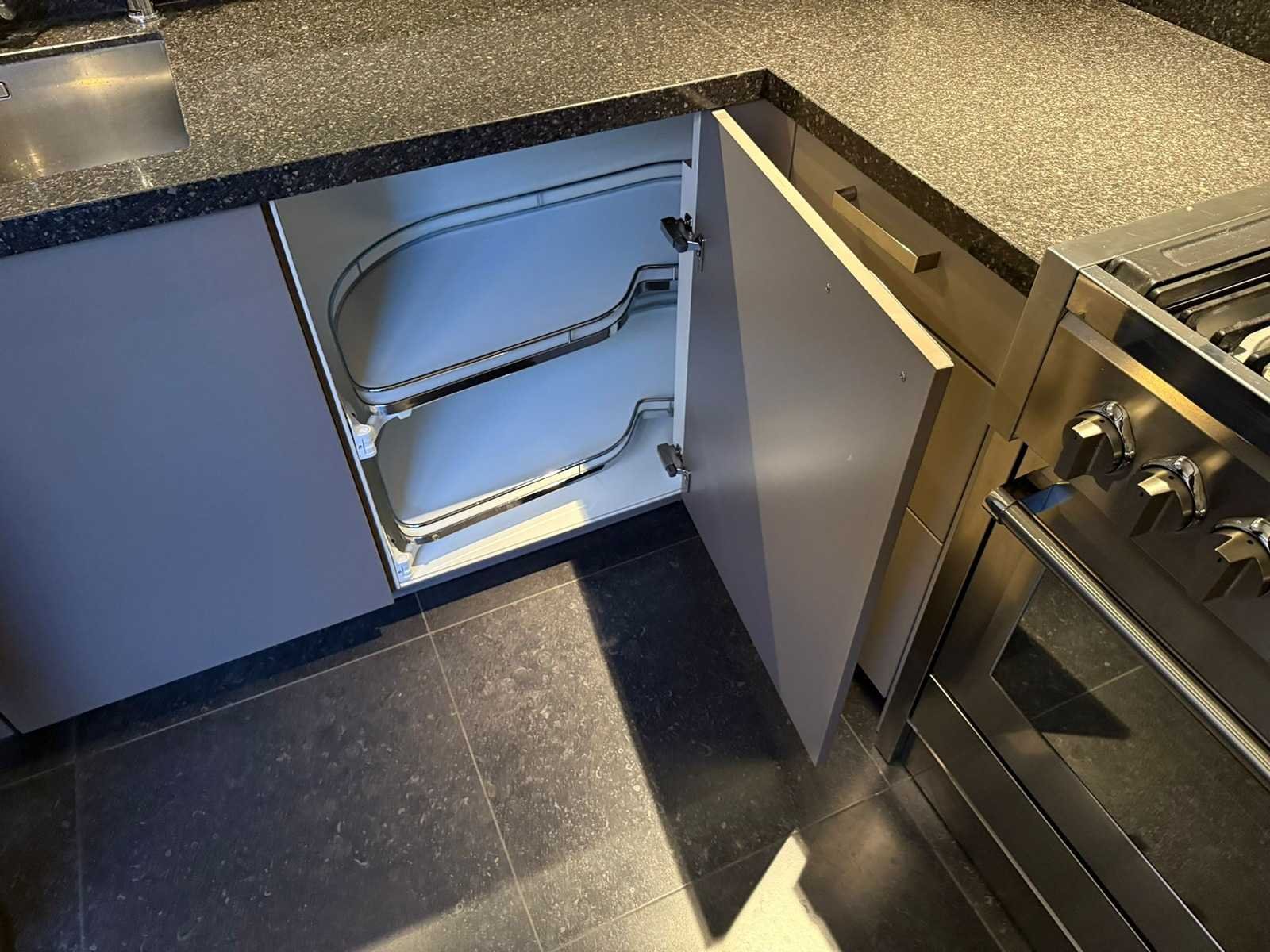 Conditie gebruikt; Afmetingen linkerdeel lxb ca. 249x60 cm; afmetingen rechterdeel lxb ca. 337x60 cm; Hoge kasten ca. 231 cm hoog; Ingepakt op 2 pallets; Reeds gedemonteerd en ingepakt op pallets. (afstapelen, omruilen of statiegeld per pallet); Pallets zijn niet inbegrepen; statiegeld betalen bij afhalen, of pallets afstapelen; werkblad niet ingepakt op pallets Nee Type keukenopstelling: Hoek keuken Kraan: Quooker Aanrechtblad: steen zwart spikkel Magnetron: Gaggenau Fornuis: S-Steel Koelkast: Liebherr Softclose: true Oven: S-Steel Afzuigkap: S-Steel Vaatwasser: Miele Hoofdkleur: Grijs