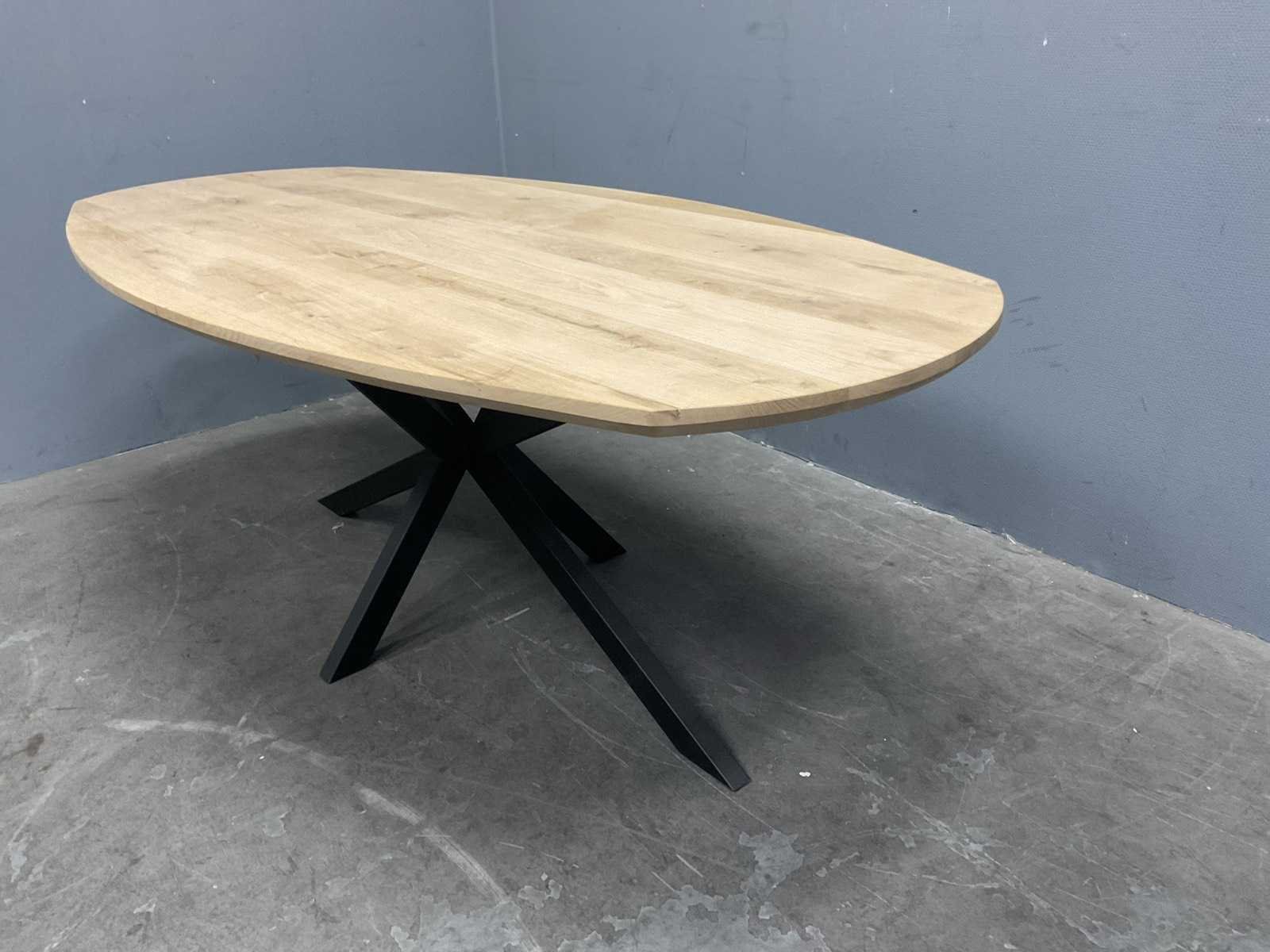 Deens ovaal eiken eetkamertafel 200x100x74 cm met onderstel spin