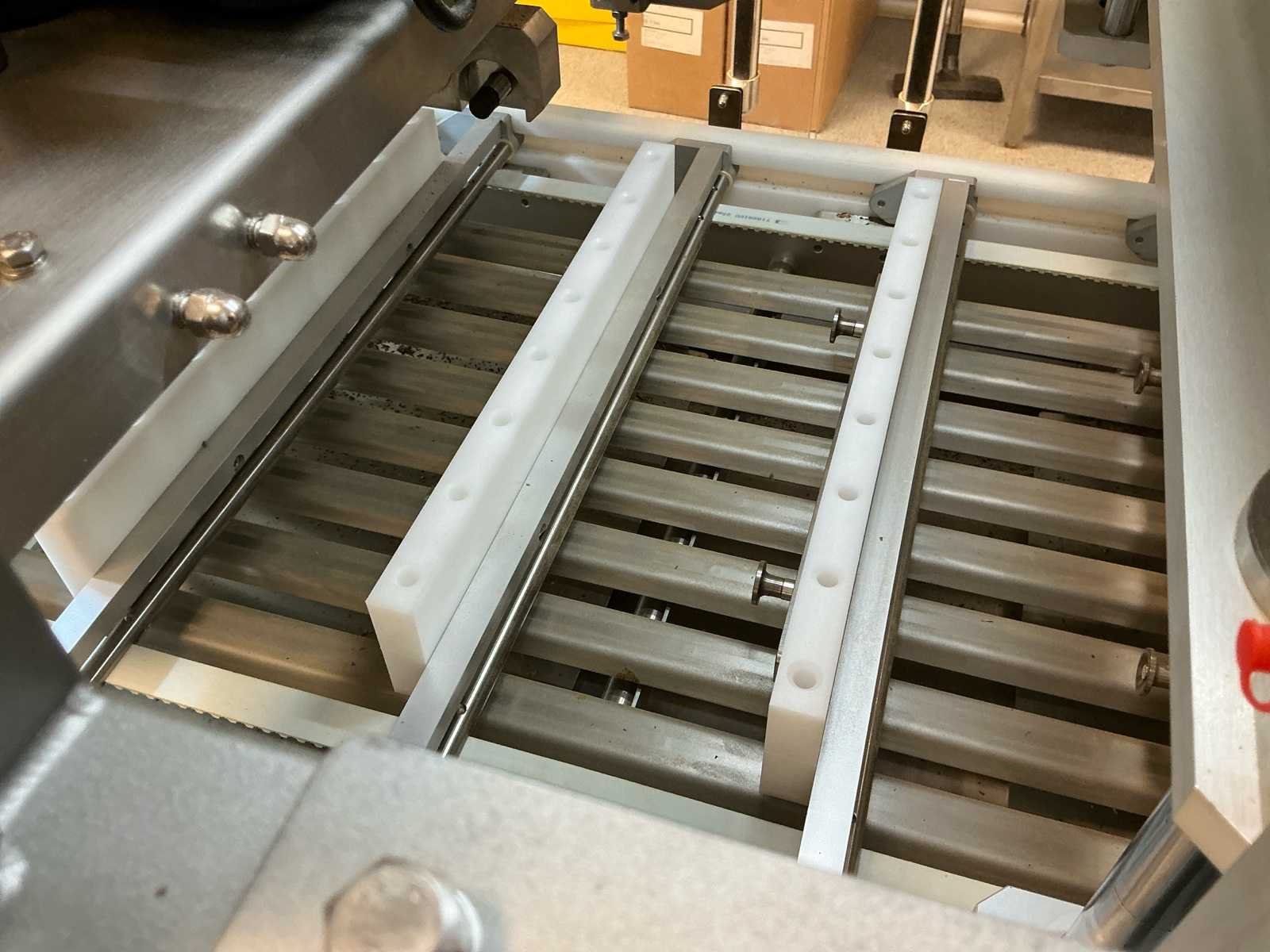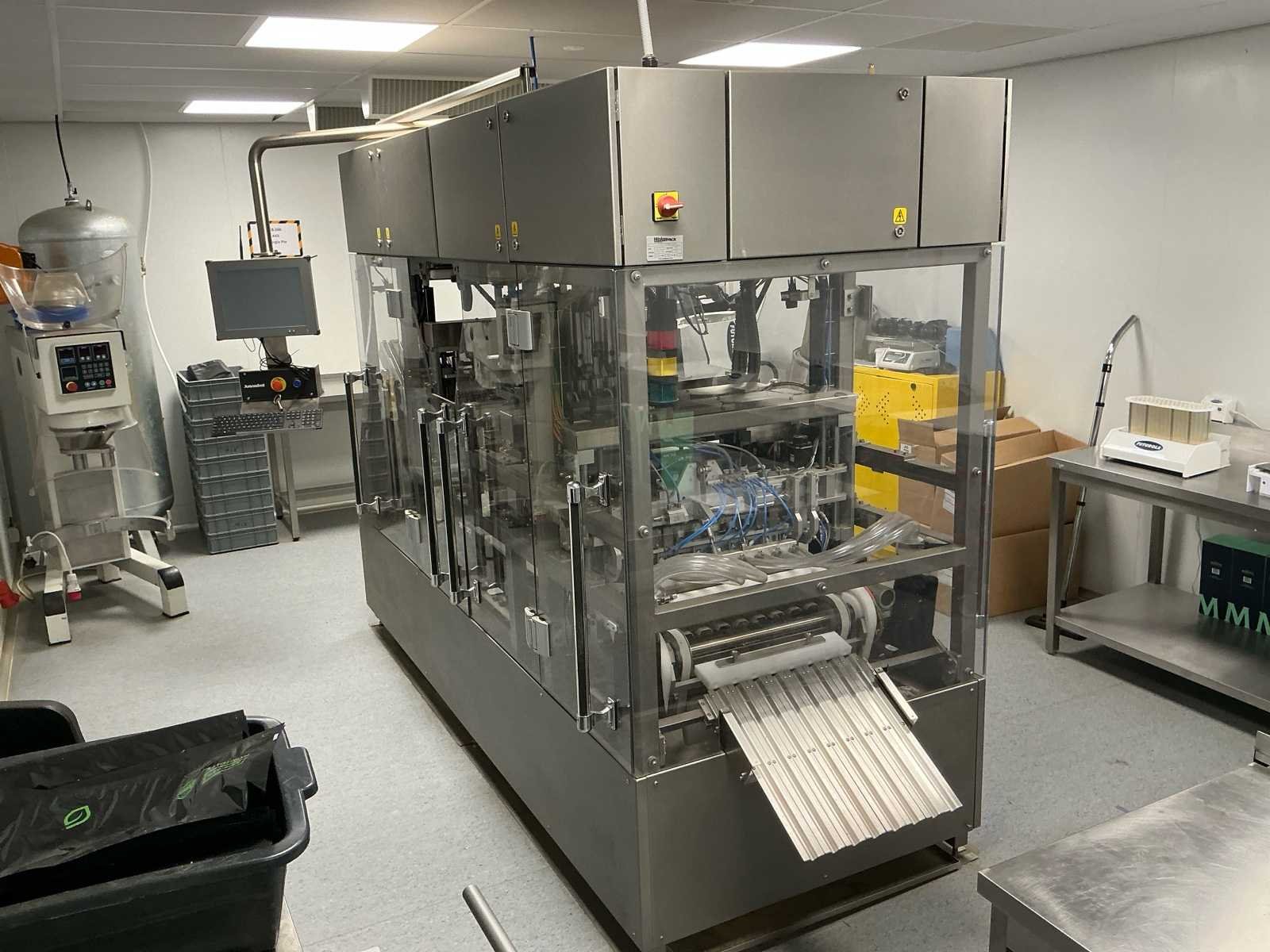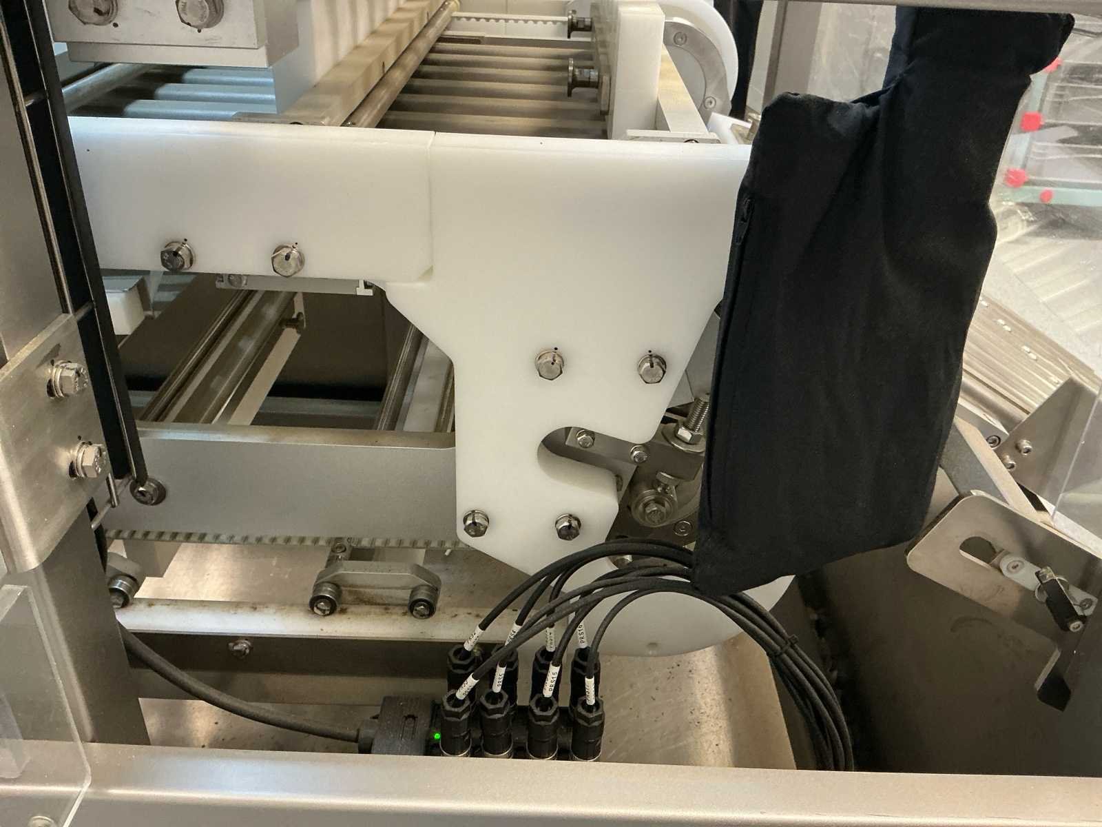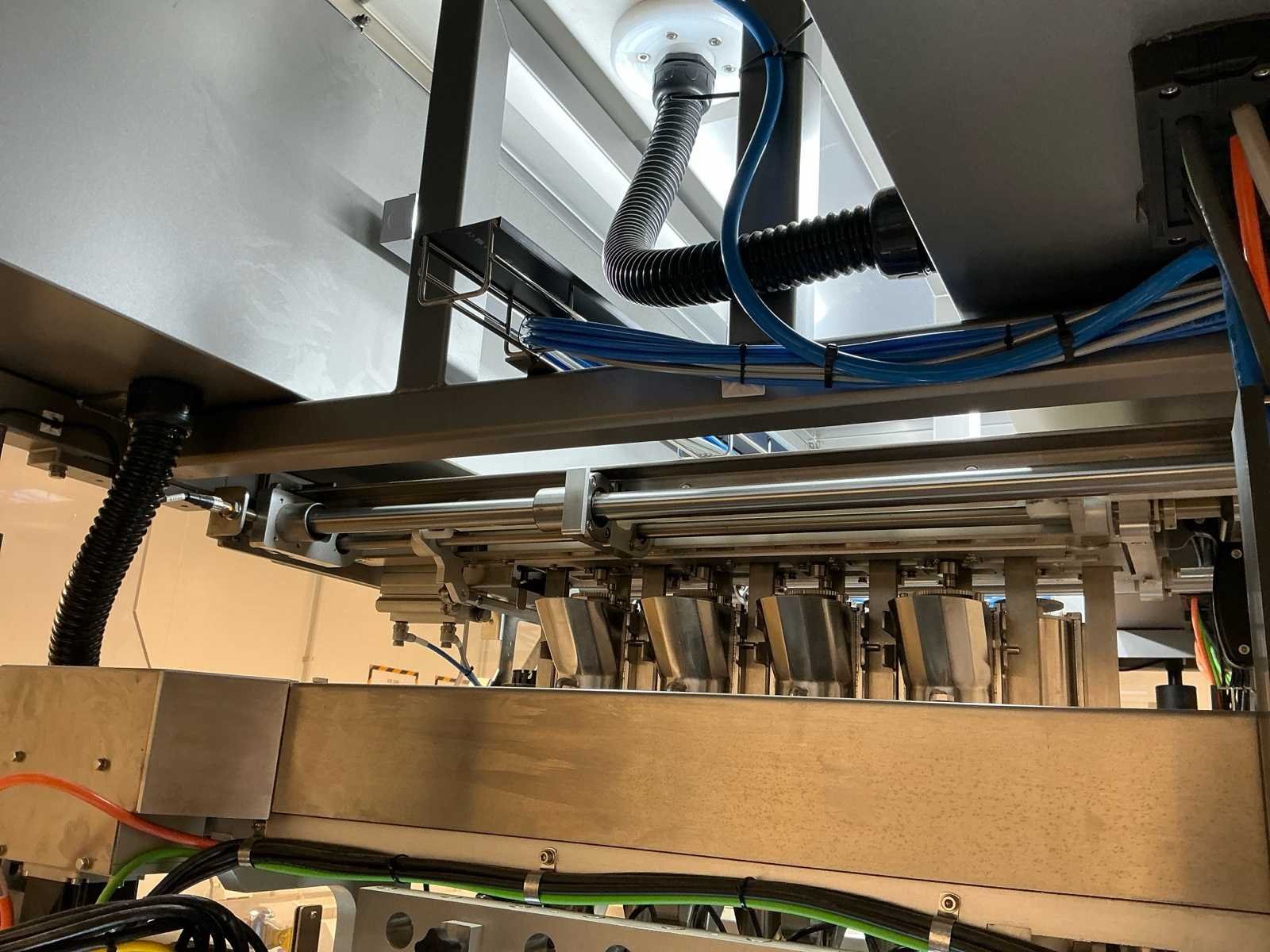 - Automatische cone-verwerkingsmachine voor het openen, vullen, wegen, comprimeren en twisten van cones - Voorzien van servo-gestuurde conveyor met cone blocks voor station-tot-station verwerking - Vision System per kanaal voor controle op correct geopende cones vóór vulling - Weegsystemen met individuele weegcellen per kanaal voor nauwkeurige dosering - Vibratory feeders en RVS canisters per kanaal voor producttoevoer - Funnel- en compactorassemblies met instelbare compactiesequenties via HMI - Tamping station voor gelijkmatige verdichting van het product - Twister-unit voor het automatisch sluiten van cones (optioneel met trimmer-systeem) - Centrale HMI-bediening met receptbeheer, alarmmeldingen en onderhoudsfuncties - Elektrische aansluiting: 230 Vac, 60 Hz, 1 fase, 20 Ampère - Pneumatische aansluiting: 90 PSI (6,2 bar) droge lucht - Luchtverbruik: ca. 15 CFM (7,1 L/s) - Gewicht machine: ca. 1.800 kg - Afmetingen (L x B x H): ca. 362 x 131 x 235 cm - Machine is ontworpen voor industriële productieomgevingen - Wordt geleverd inclusief operator’s manual (digitaal) Gedetailleerde technische specificaties, configuraties, instellingen, onderhouds- en veiligheidsinformatie zijn terug te vinden in de bijgevoegde handleiding Nee Merk: Weighpack Type: JuanaRoll Bouwjaar: 2022 Eigen gewicht: 1800kg Afmeting l: 3620mm Afmeting b: 1310mm Afmeting h: 2350mm