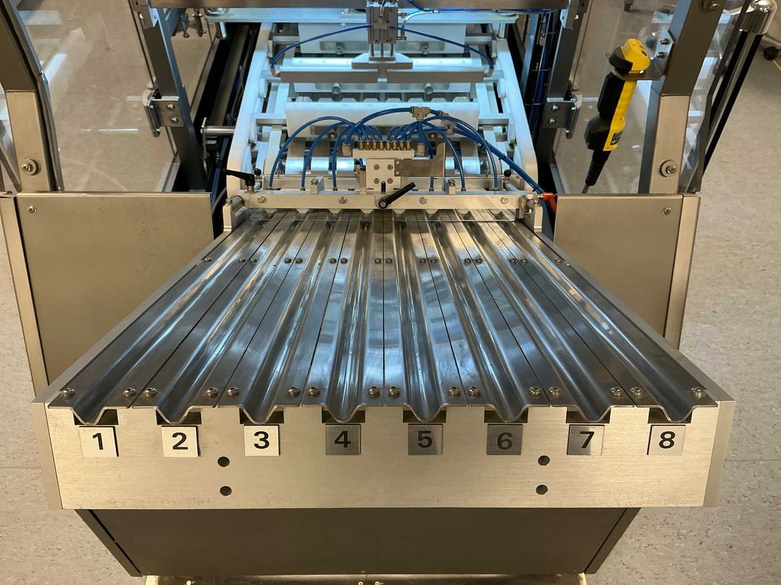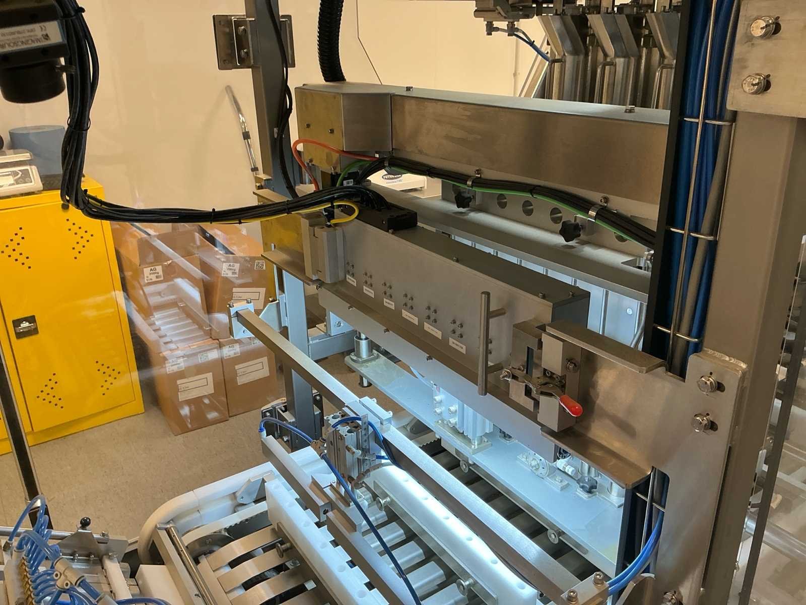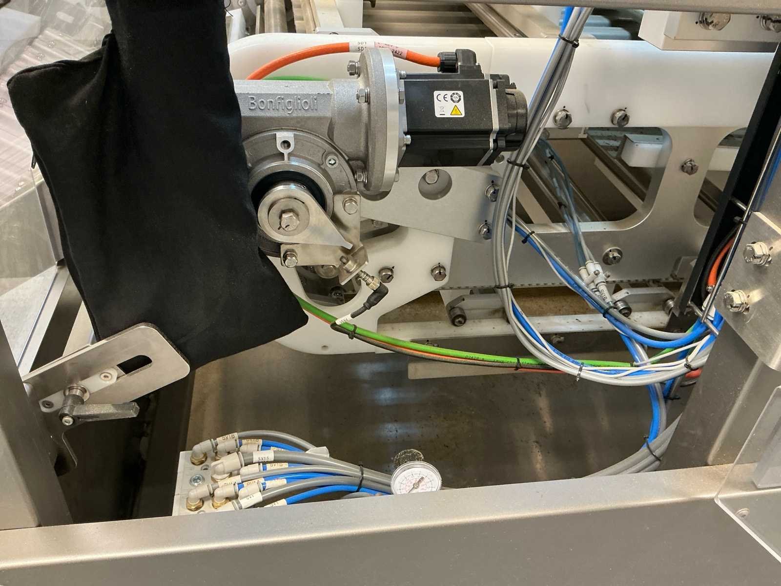 - Automatische cone-verwerkingsmachine voor het openen, vullen, wegen, comprimeren en twisten van cones - Voorzien van servo-gestuurde conveyor met cone blocks voor station-tot-station verwerking - Vision System per kanaal voor controle op correct geopende cones vóór vulling - Weegsystemen met individuele weegcellen per kanaal voor nauwkeurige dosering - Vibratory feeders en RVS canisters per kanaal voor producttoevoer - Funnel- en compactorassemblies met instelbare compactiesequenties via HMI - Tamping station voor gelijkmatige verdichting van het product - Twister-unit voor het automatisch sluiten van cones (optioneel met trimmer-systeem) - Centrale HMI-bediening met receptbeheer, alarmmeldingen en onderhoudsfuncties - Elektrische aansluiting: 230 Vac, 60 Hz, 1 fase, 20 Ampère - Pneumatische aansluiting: 90 PSI (6,2 bar) droge lucht - Luchtverbruik: ca. 15 CFM (7,1 L/s) - Gewicht machine: ca. 1.800 kg - Afmetingen (L x B x H): ca. 362 x 131 x 235 cm - Machine is ontworpen voor industriële productieomgevingen - Wordt geleverd inclusief operator’s manual (digitaal) Gedetailleerde technische specificaties, configuraties, instellingen, onderhouds- en veiligheidsinformatie zijn terug te vinden in de bijgevoegde handleiding Nee Merk: Weighpack Type: JuanaRoll Bouwjaar: 2022 Eigen gewicht: 1800kg Afmeting l: 3620mm Afmeting b: 1310mm Afmeting h: 2350mm