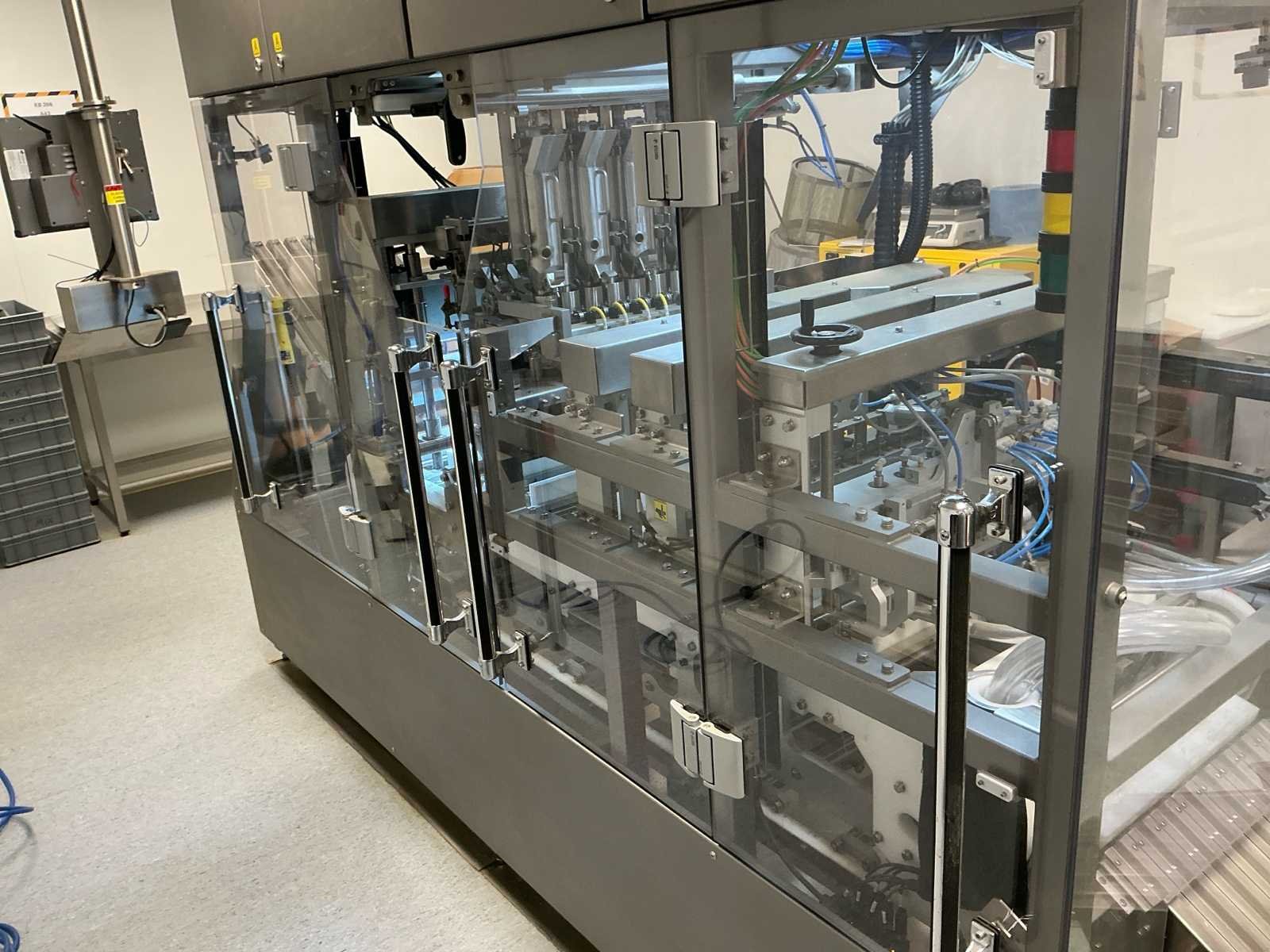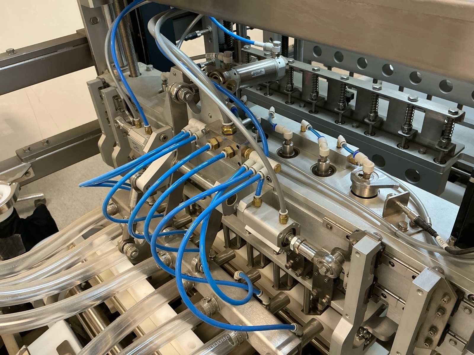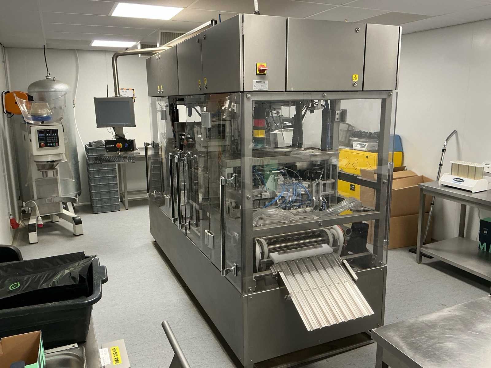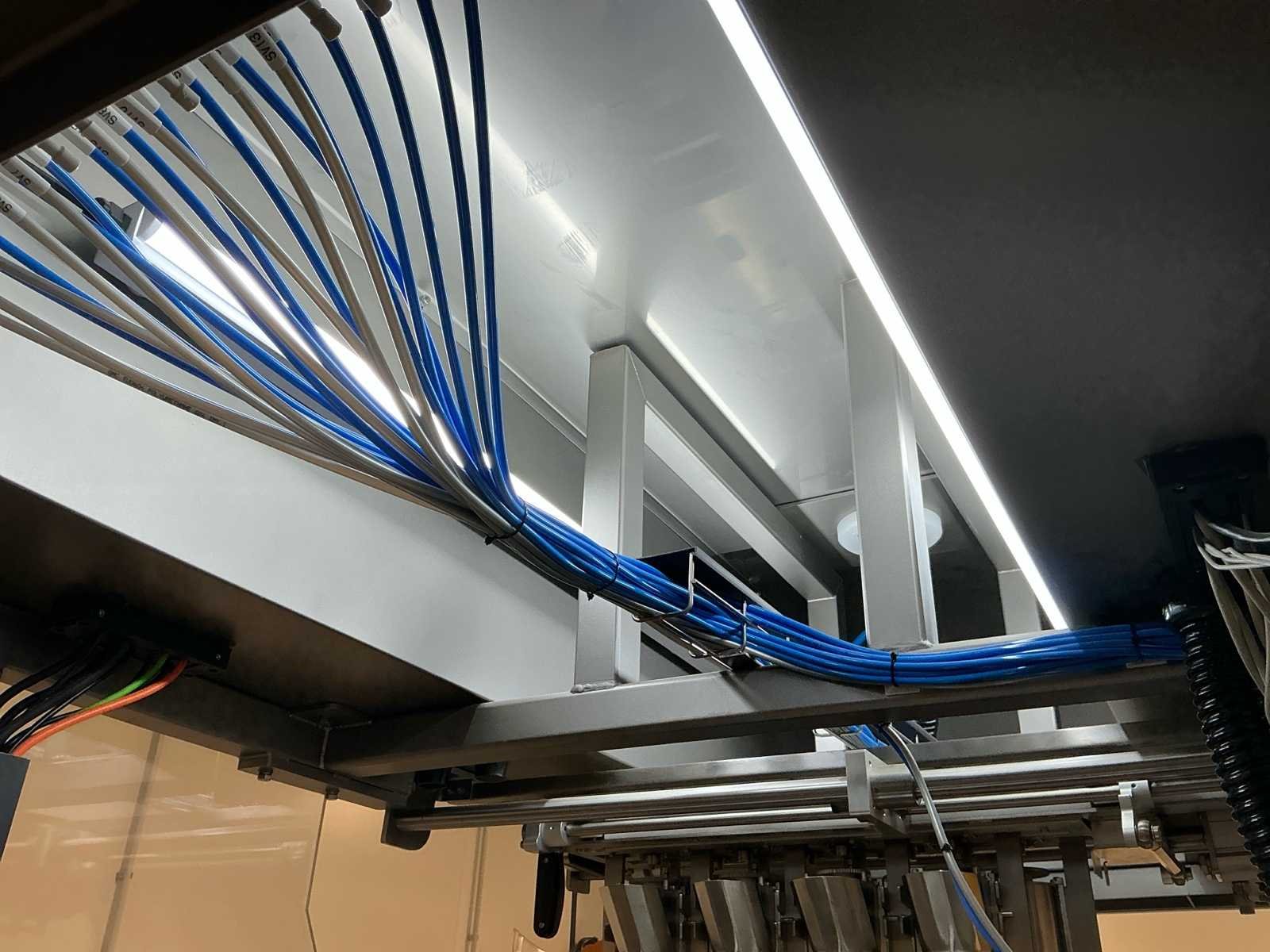 - Automatische cone-verwerkingsmachine voor het openen, vullen, wegen, comprimeren en twisten van cones - Voorzien van servo-gestuurde conveyor met cone blocks voor station-tot-station verwerking - Vision System per kanaal voor controle op correct geopende cones vóór vulling - Weegsystemen met individuele weegcellen per kanaal voor nauwkeurige dosering - Vibratory feeders en RVS canisters per kanaal voor producttoevoer - Funnel- en compactorassemblies met instelbare compactiesequenties via HMI - Tamping station voor gelijkmatige verdichting van het product - Twister-unit voor het automatisch sluiten van cones (optioneel met trimmer-systeem) - Centrale HMI-bediening met receptbeheer, alarmmeldingen en onderhoudsfuncties - Elektrische aansluiting: 230 Vac, 60 Hz, 1 fase, 20 Ampère - Pneumatische aansluiting: 90 PSI (6,2 bar) droge lucht - Luchtverbruik: ca. 15 CFM (7,1 L/s) - Gewicht machine: ca. 1.800 kg - Afmetingen (L x B x H): ca. 362 x 131 x 235 cm - Machine is ontworpen voor industriële productieomgevingen - Wordt geleverd inclusief operator’s manual (digitaal) Gedetailleerde technische specificaties, configuraties, instellingen, onderhouds- en veiligheidsinformatie zijn terug te vinden in de bijgevoegde handleiding Nee Merk: Weighpack Type: JuanaRoll Bouwjaar: 2022 Eigen gewicht: 1800kg Afmeting l: 3620mm Afmeting b: 1310mm Afmeting h: 2350mm