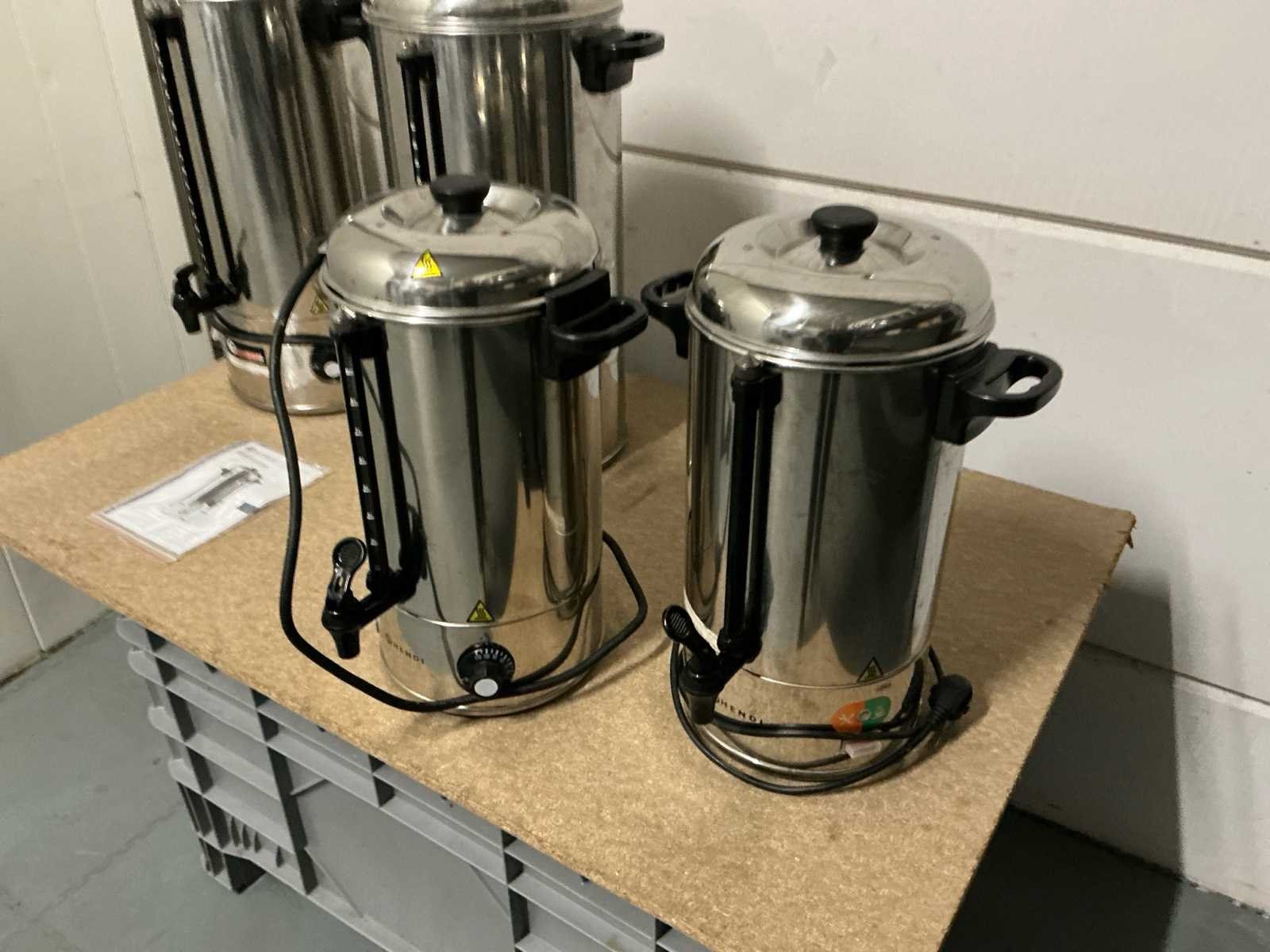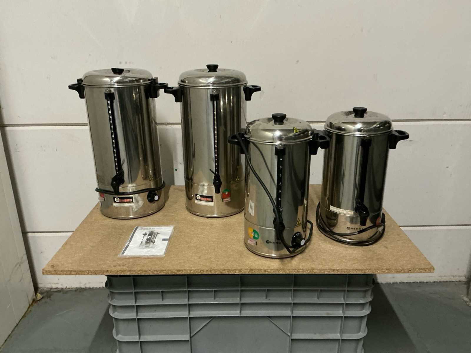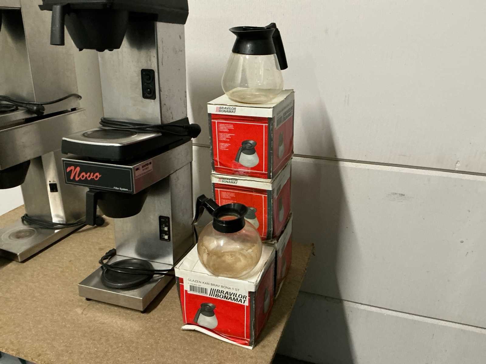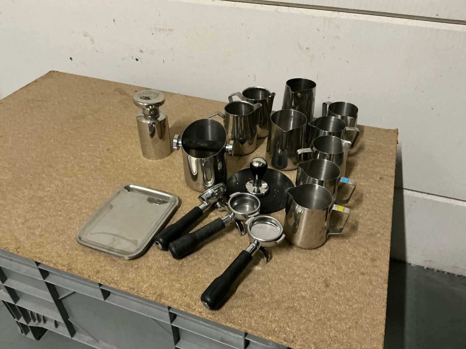 Koffiemolens: 1x Compak Conic Hi-tech RVS 1x Compak Conic Hi-tech Wit 1x GS 1x Misce La D’oro Koffiezetapparaten: 1x Jura Impressa S9 Avantgarde 4x Filter apparaat 2x Novo, 1x Hendi & 1x GS 1x Nespresso machine Koffie verwarmers: 4x Hendi (2 verschillende volumes) Koffie attributen (RVS): 9x melkkannetje 3x piston 1x stamper + matje 9x plateau 1x cacao bus 1x koffiedik afvalbakje 6x Koffiepotten (glas voor bij filter apparaat) 2x koffie thermoskannen 264x wit koffie kopje No Aansluiting: 220V Aantal groepen: 1pcs Beker/glasverwarming: true Chroom: true Rvs: true