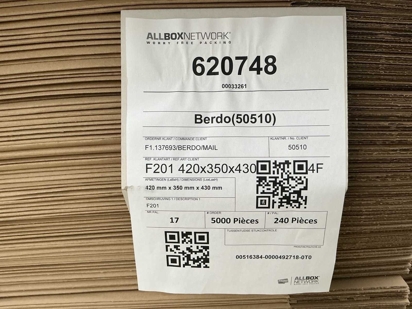 240/300 dozen per pallet; 27 pallets totaal No