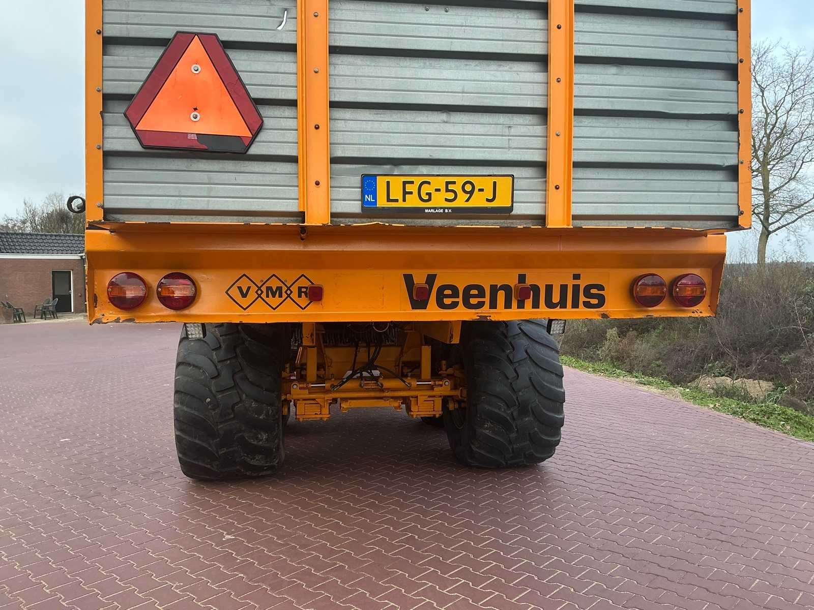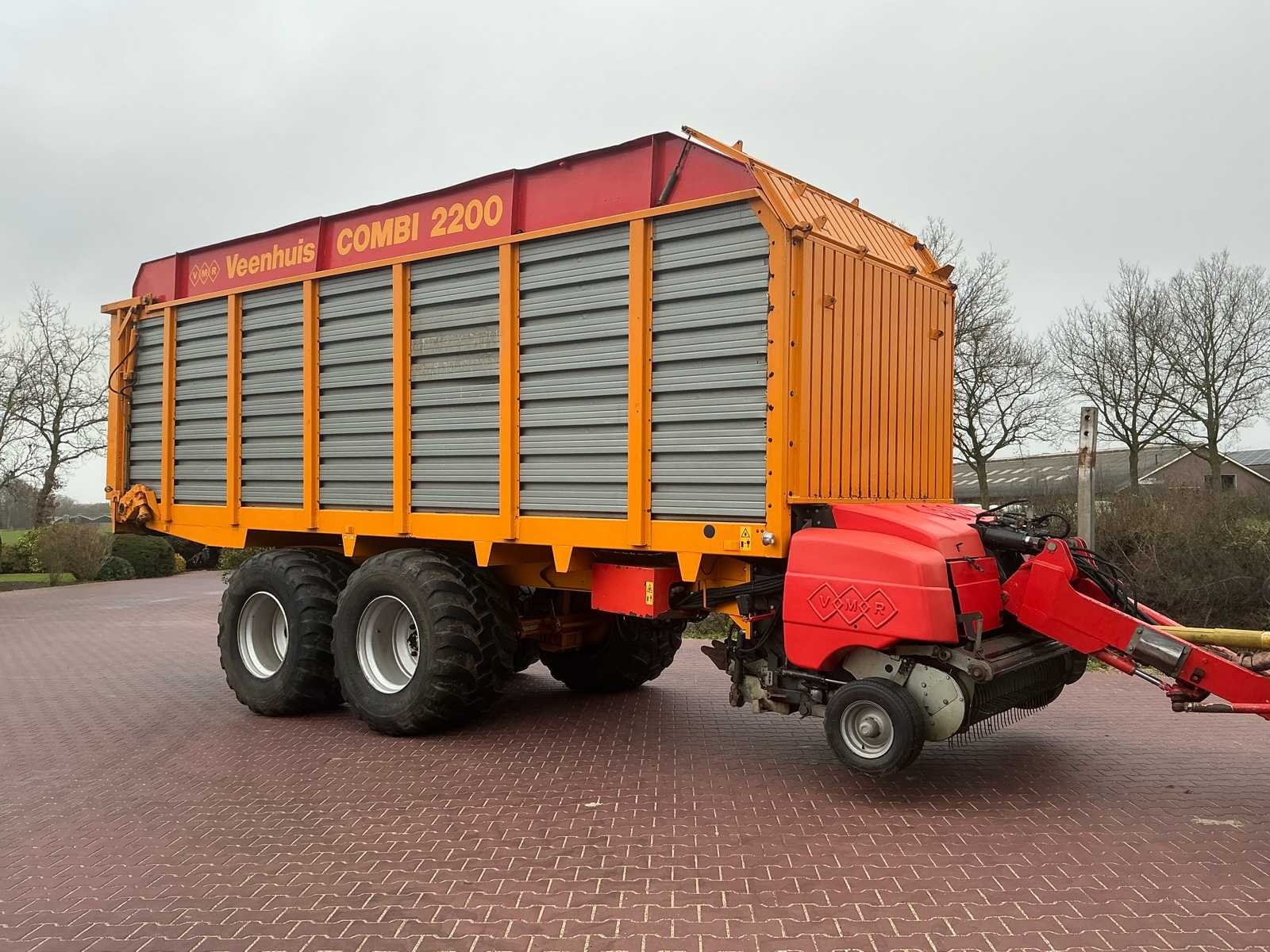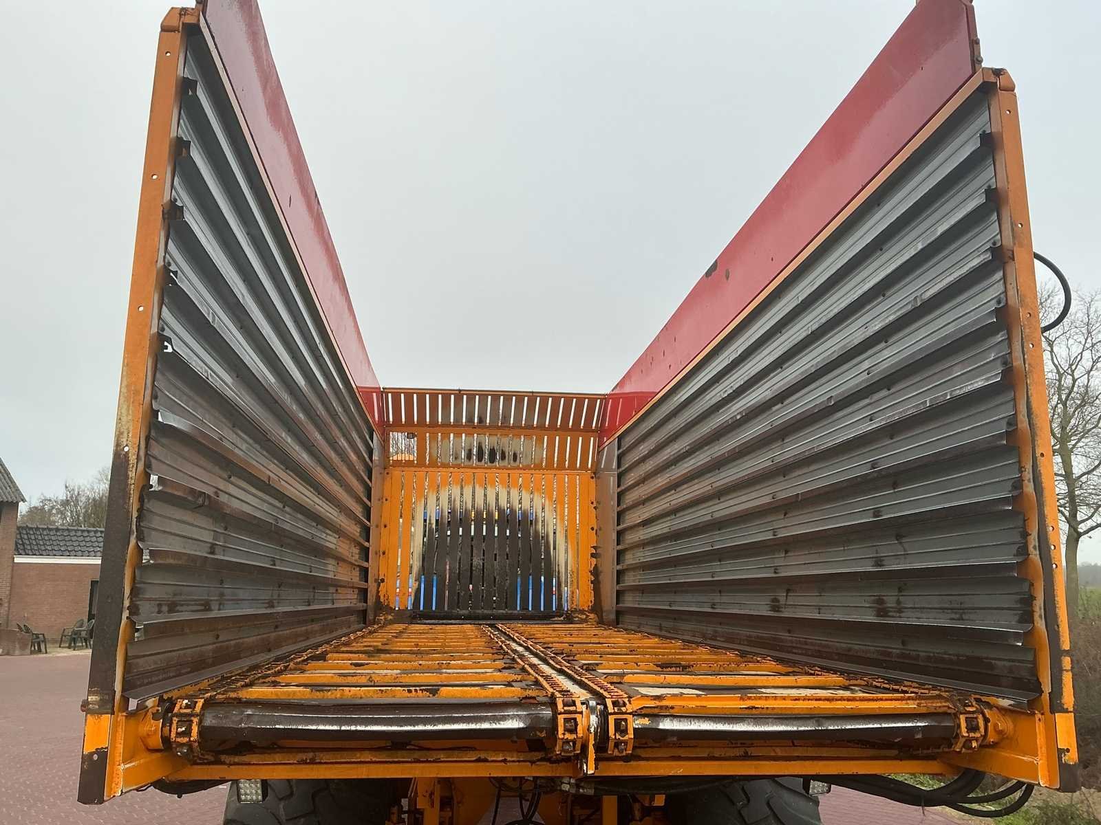 Beschikt over bodemketting, elektrische bedieningskast, invoerrotor, pick-up, messenbalk, gedwongen gestuurd, load sensing, werkverlichting rondom, hydraulische geremd, steunpoot en geveerde knikdissel. Messen zijn niet gemonteerd en worden los bijgeleverd. Nee Merk: Veenhuis Type: 2200 Bouwjaar: 2004 Serienummer: XL931238304248000 Kenteken: LFG59J Opslagcapaciteit: 21500 Met onderstel: true Bandenmaat: 750/45 R 26.5 Maximaal aantal messen: 40 Stuuras: true Eigen gewicht: 7500