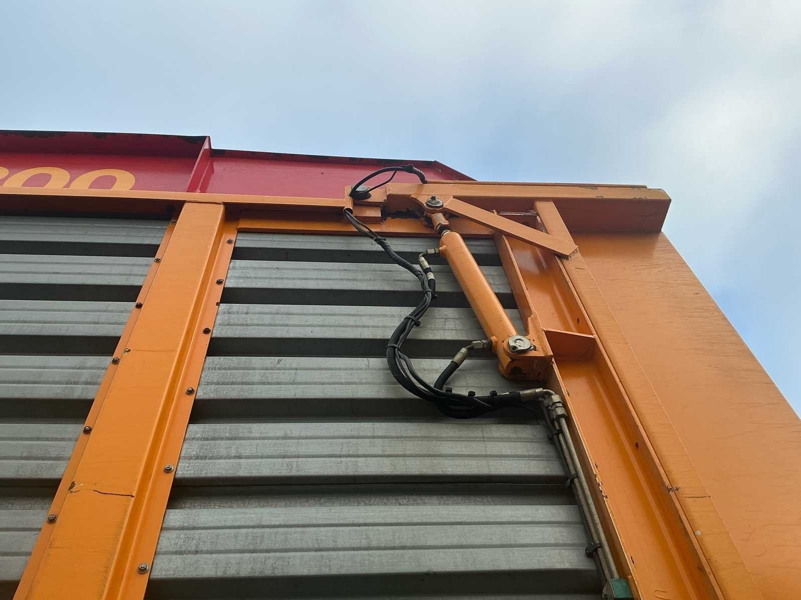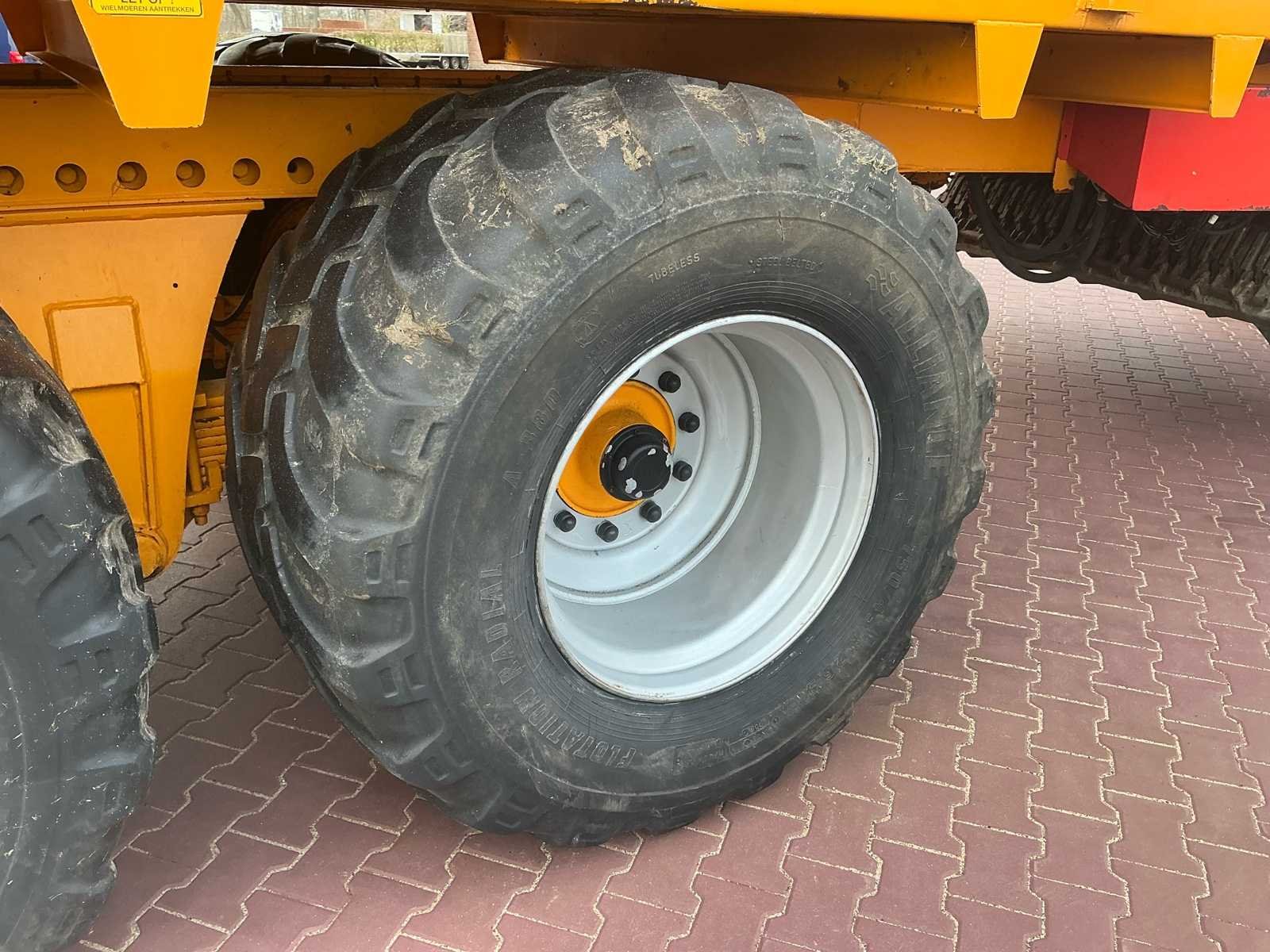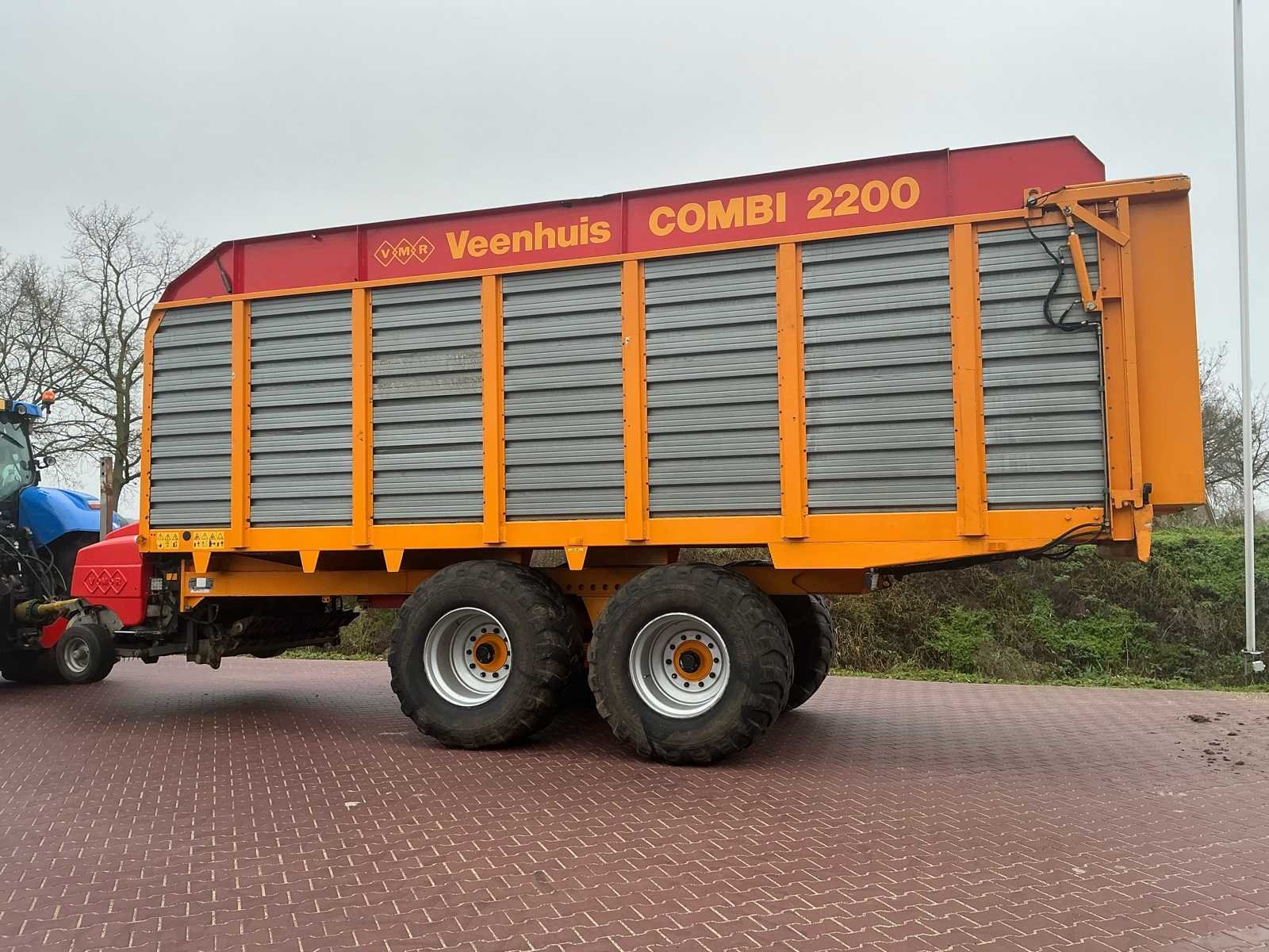 Beschikt over bodemketting, elektrische bedieningskast, invoerrotor, pick-up, messenbalk, gedwongen gestuurd, load sensing, werkverlichting rondom, hydraulische geremd, steunpoot en geveerde knikdissel. Messen zijn niet gemonteerd en worden los bijgeleverd. Nee Merk: Veenhuis Type: 2200 Bouwjaar: 2004 Serienummer: XL931238304248000 Kenteken: LFG59J Opslagcapaciteit: 21500 Met onderstel: true Bandenmaat: 750/45 R 26.5 Maximaal aantal messen: 40 Stuuras: true Eigen gewicht: 7500