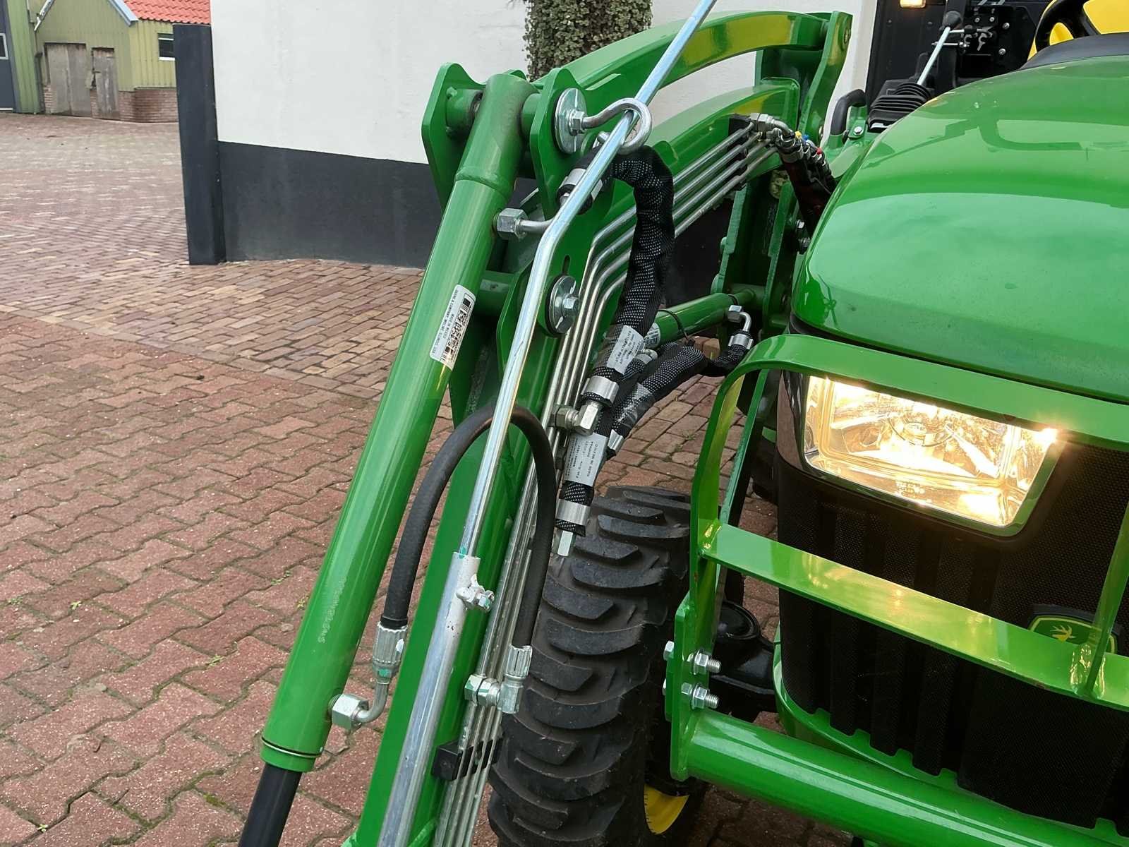 Staat: nieuw. Beschikt over nog 2 jaar fabrieksgarantie. Beschikt over 3 cilinders, 1642 cc, John Deere 300E voorlader en bak, veiligheidsbeugel, Max snelheid 27km/uur. , trekhaak achter, topstang, 2 dubbelwerkende ventielen achter, hoge en lage giering en een diesel Leander motor. Nee Merk: John Deere Type: E02 Bouwjaar: 2022 Serienummer: 1LV3025EPNN200875 Kenteken: T96FFX Motorvermogen (kW): 18kW Afgelezen urenstand: 3 Versnellingsbaktype: Automaat Aftakastoerental: 540rpm Aantal hydraulische ventielen achter: 2 Bandenmaat voor: 25x8.50-14 Bandenmaat achter: 15-19.5 Voorlader: true Eigen gewicht: 1500kg Kentekenpapieren compleet?: true Nationaliteit documenten: Nederlands Zelf rijdend exporteren: Mogelijk