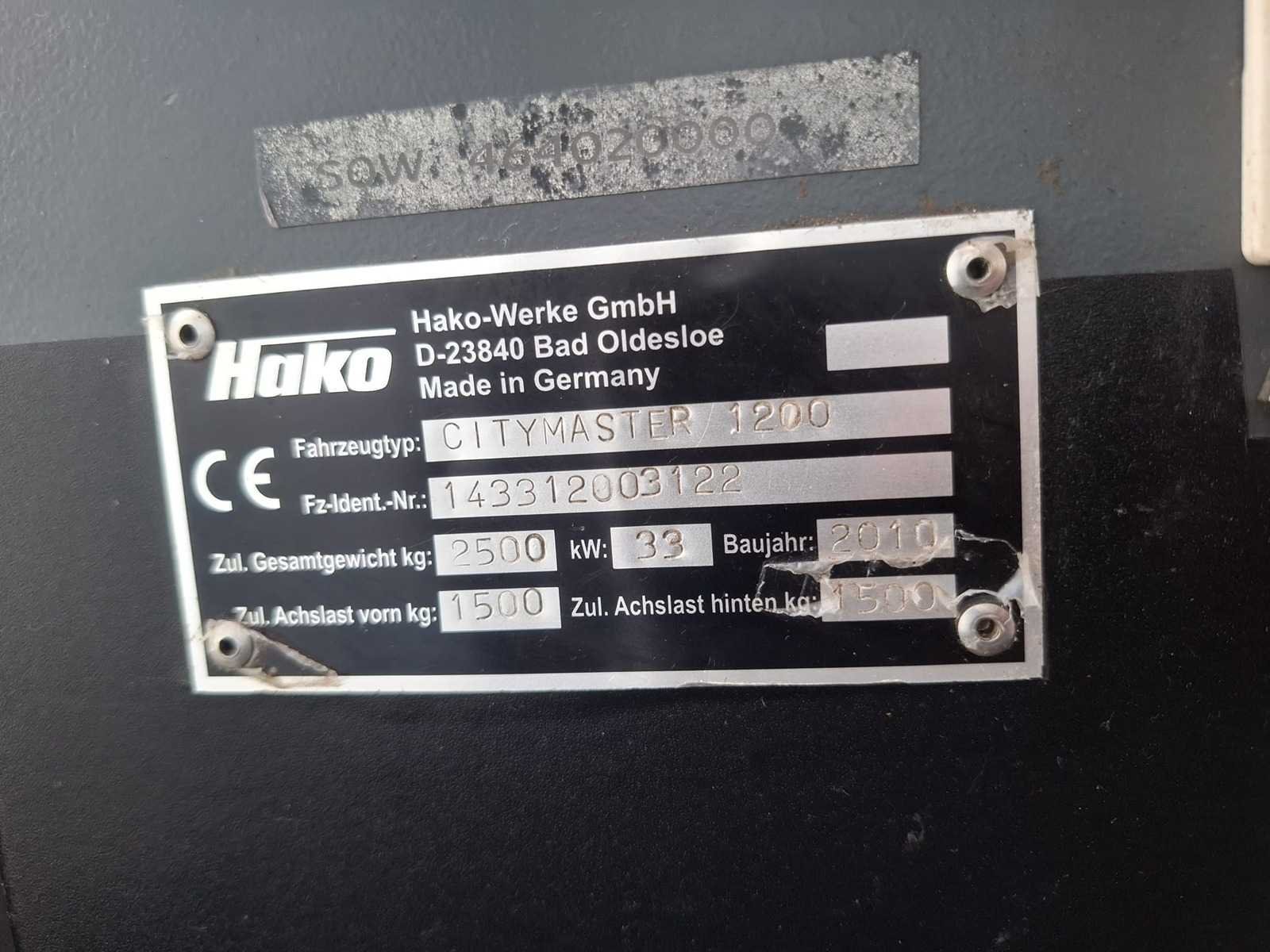Nee Merk: HAKO Type: Citymaster 1200 Bouwjaar: 2010 Kenteken: T05DDB Serienummer: 143312003122 Brandstofmotor aangedreven: true Brandstof: Diesel Vermogen: 33kW Eigen gewicht: 2500kg Motor type: true Aantal cilinders: 4 Schoonwatertank: true Inhoud waterreservoir: 190l Inhoud vuilwatertank: 190l Max. snelheid: 20km/h Totale afmeting L: 3300mm Totale afmeting Breedte: 1200mm Totale afmeting Hoogte: 1990mm