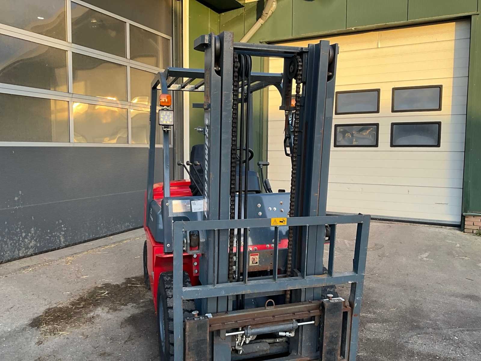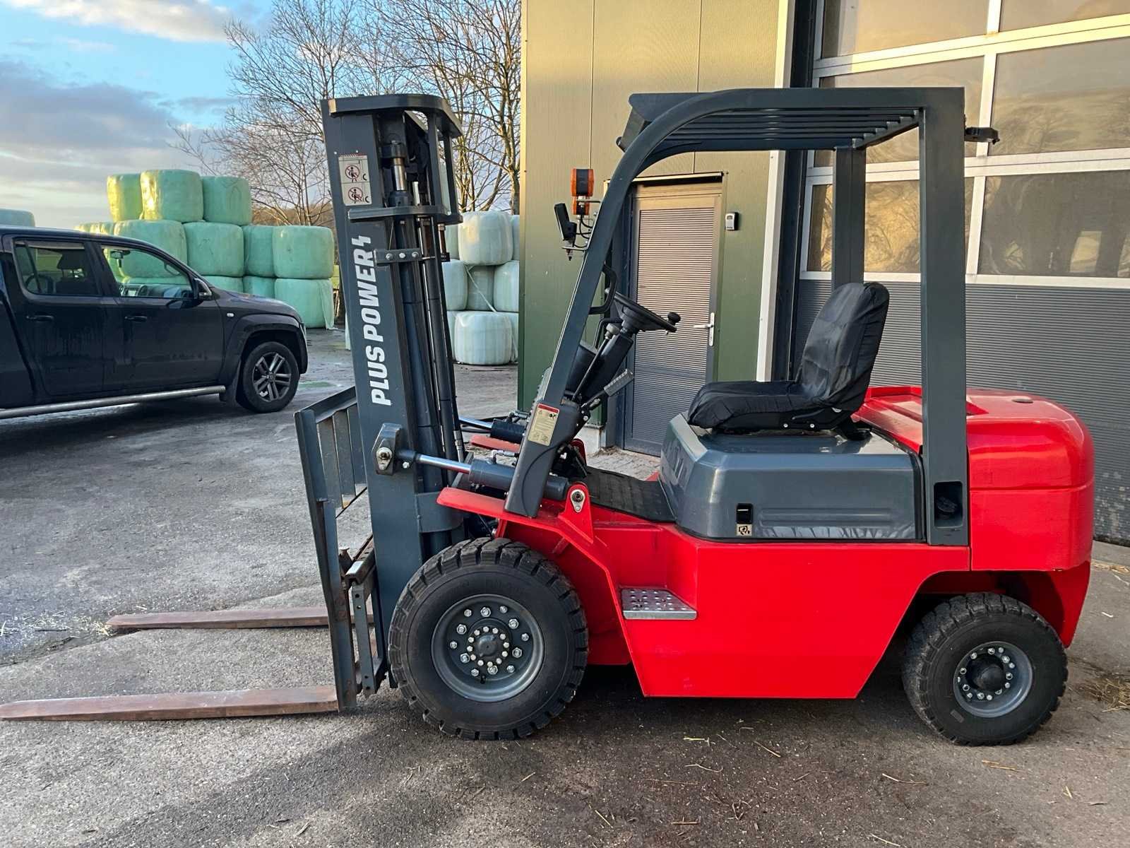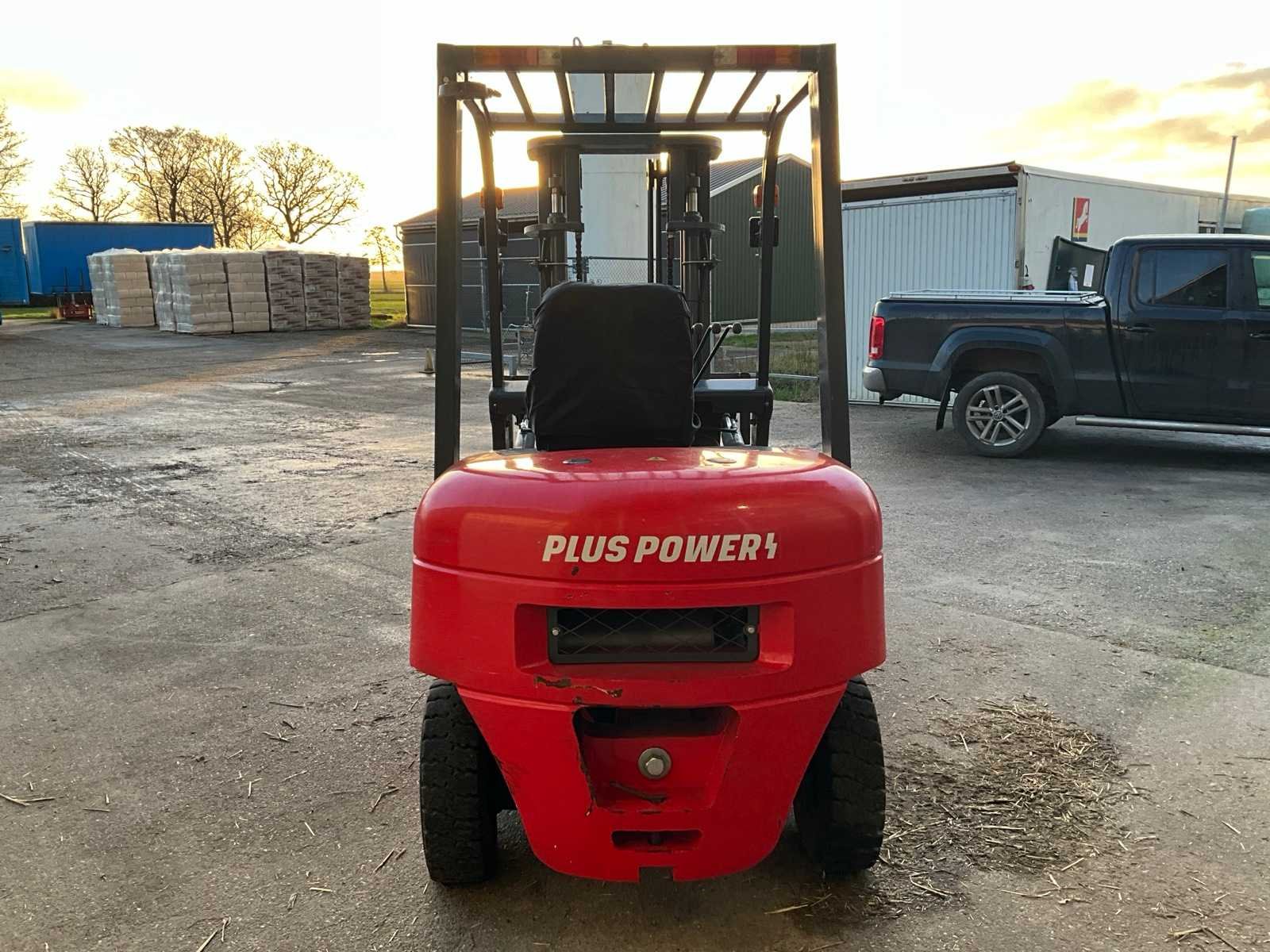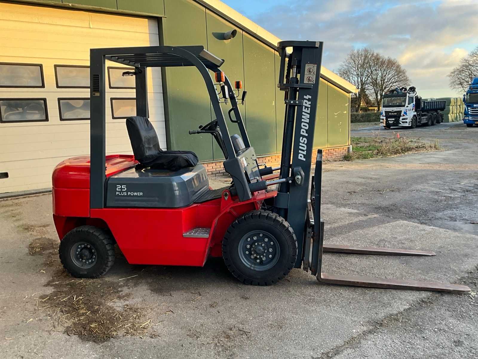 Voorzien van side shift; duplex mast; Nee Merk: Plus Power Type: VTDD-25 Bouwjaar: 2023 Serienummer: 23031961 Brandstof: Diesel Mast: Duplex Soort band: Volrubber banden Aantal wielen: 4 Afgelezen urenstand: 127 Side-shift: true Duplex mast: true Eigen gewicht: 3680kg Hefvermogen: 2500kg Lepellengte: 1220mm Max. hefhoogte: 3000mm Hefhoogte: 3000mm Vol rubber banden: true Minimale doorrijhoogte: 2070mm Totale afmeting L: 3646mm Totale afmeting Breedte: 1170mm Totale afmeting Hoogte: 2070mm Diesel: true