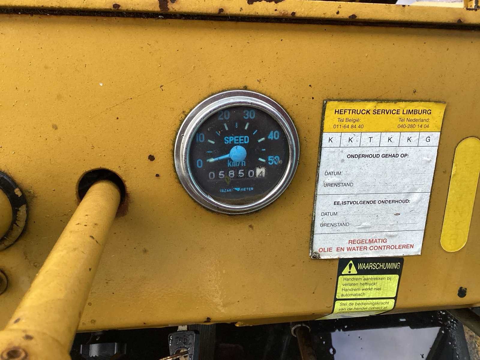 LPG Heftruck Toyota, 6 Cilinder motor, exclusief gasfles (fles kan wel gebruikt worden voor het opladen) Inclusief 6 extra goede banden. Nee Merk: Toyota Type: fg5 Brandstof: LPG Aantal wielen: 6 Afgelezen urenstand: 5850 Ruw terrein: true Duplex mast: true Hefvermogen: 5000kg Lepellengte: 1900mm Max. hefhoogte: 3000mm Luchtbanden: true Vol rubber banden: true Minimale doorrijhoogte: 2560mm Totale afmeting L: 5000mm Totale afmeting Breedte: 1800mm Totale afmeting Hoogte: 2560mm LPG: true