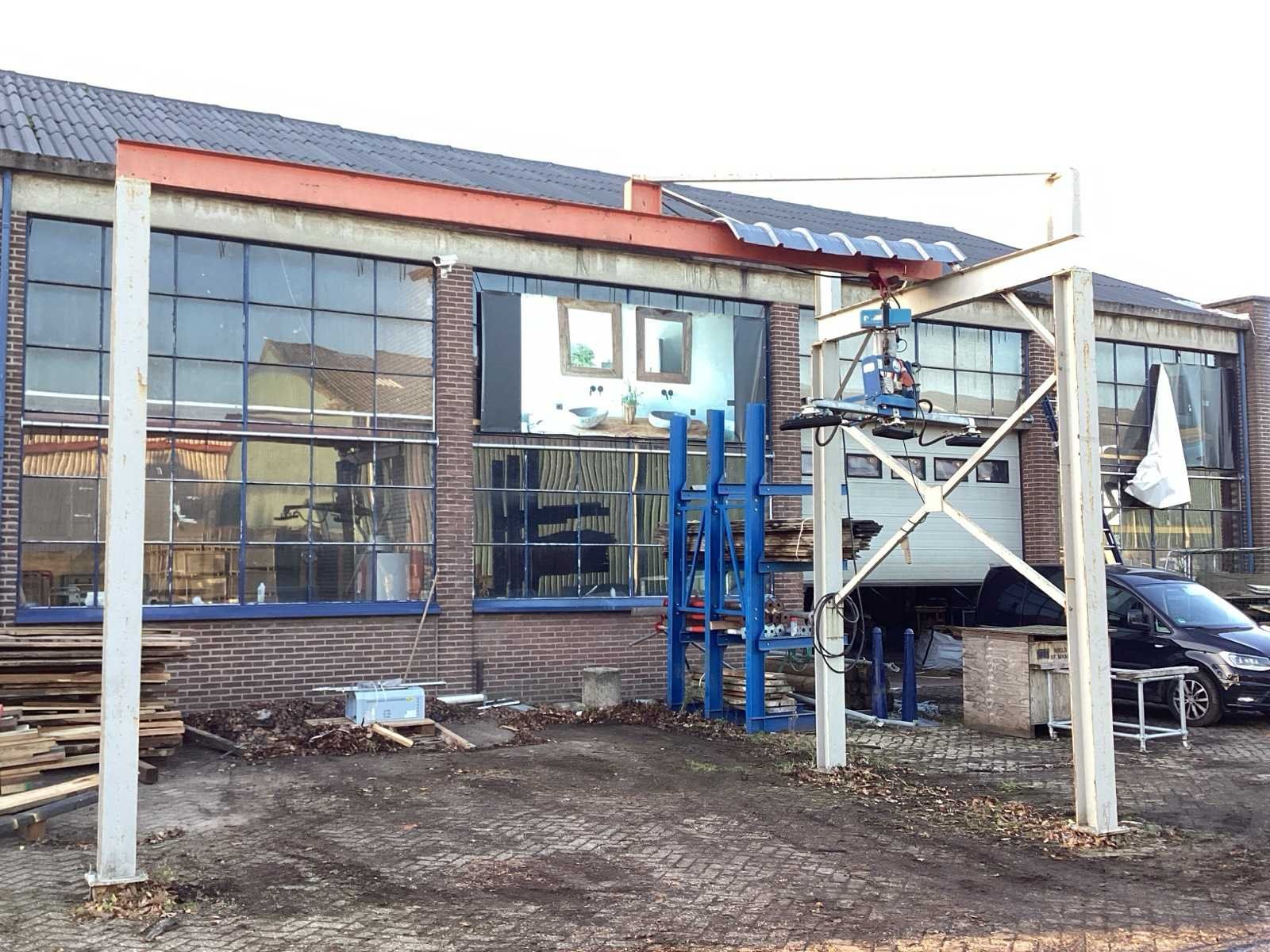 Vacuümheffer is niet inbegrepen, zie andere kavel. Inclusief Loopkat en elektrische ketting takel. Nee Merk: Staalconstructie Materiaal: Stalen balken Type: 610 x 315 x 400 cm Totale afmeting L: 6100mm Totale afmeting Breedte: 3150mm Totale afmeting Hoogte: 4000mm