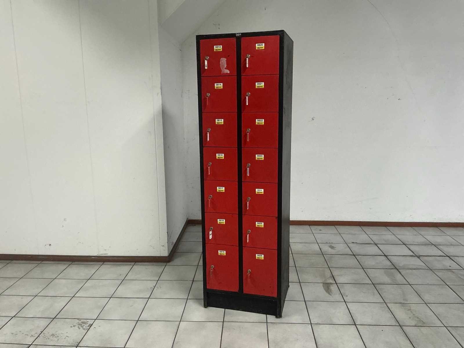 14 lockers per kast, sleutels 99% aanwezig. Lockers: 25x23x50cm, onderste 2 lockers: 25x35x50cm. Bestaande uit 16x lockerkast a 14 lockers. Nee Merk: Locker Company Breedte: 58cm Hoogte: 195cm Materiaal: Staal Diepte: 50cm