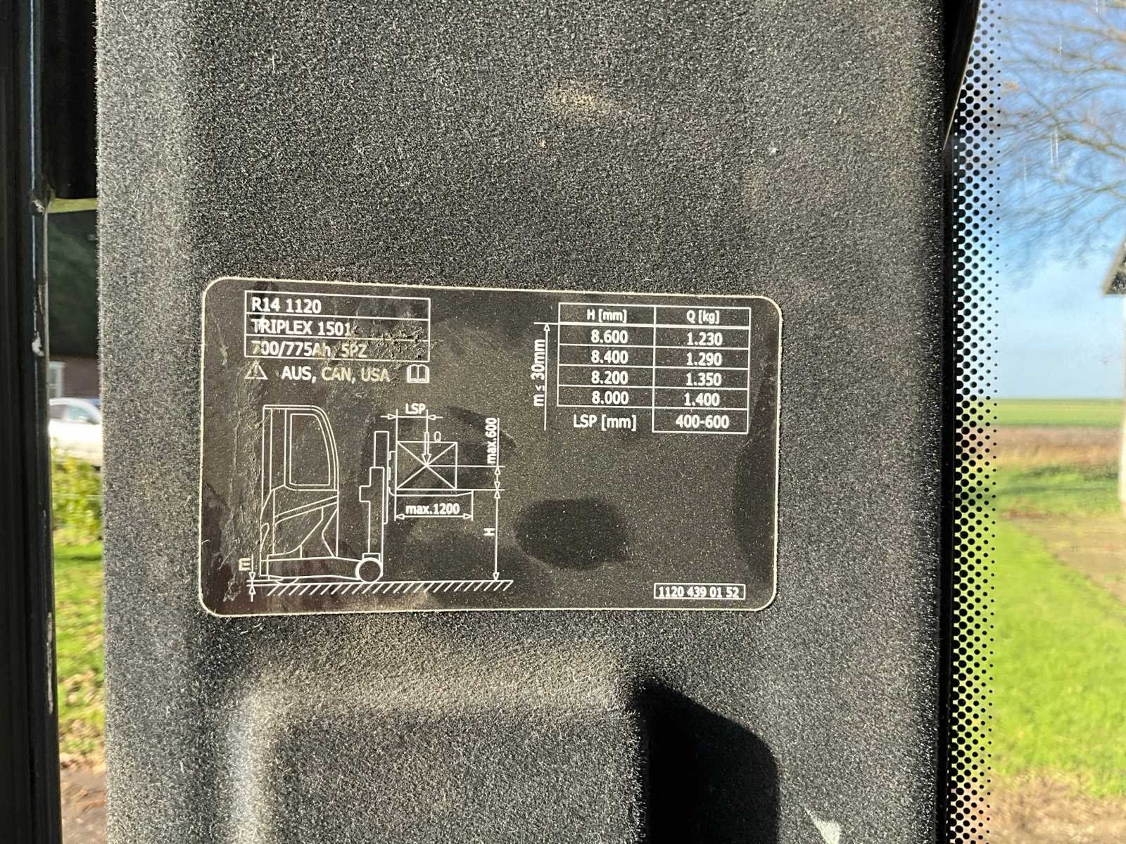 Voorzien van acculader; coldstore uitvoering ; bluespot; Nee Merk: Linde Type: R14-01 Coldstore Bouwjaar: 2014 Serienummer: H21120E00269 Brandstof: Elektrische Mast: Trilplaat Soort band: Volrubber Afgelezen urenstand: 16441 Accu lader: true Free-lift: true Side-shift: true Triple mast: true Eigen gewicht: 2770kg Hefvermogen: 1400kg Lepellengte: 1150mm Hefhoogte: 8000mm Elektrisch: true