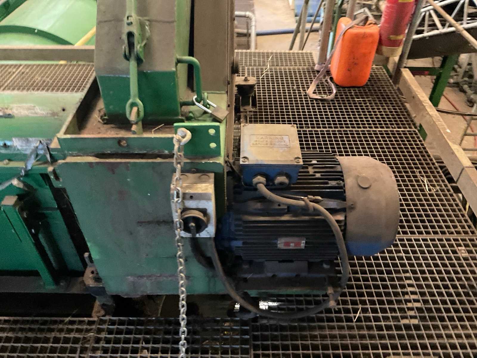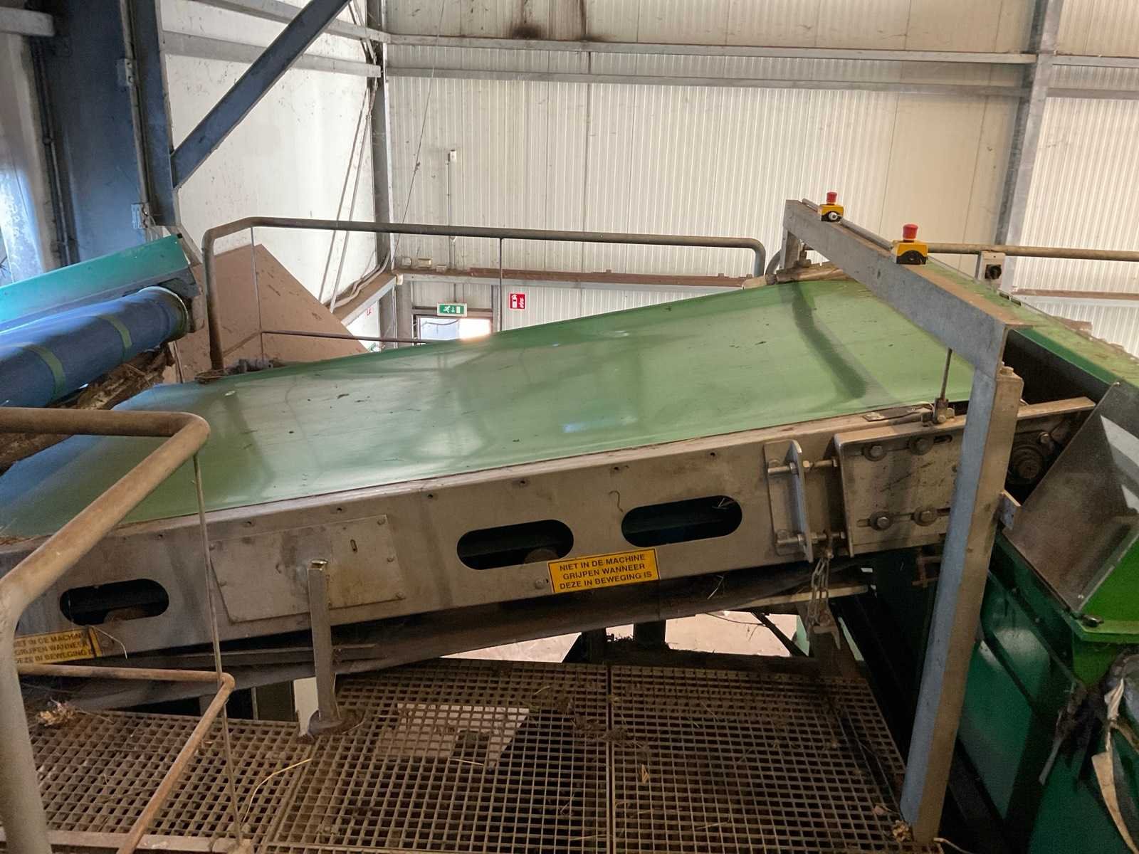 Motor vermogen: 11 KW, 400 volt, voorzien van noodstop beveiliging, Lincoln centrale smeerinrichting, 1 Rvs motor aangedreven aanvoertransportband, afmeting: L4000 x B1600mm, inclusief gegalvaniseerde loopbordes. Dit kavel maakt deel uit van de eindcombinatie 31 (1 t/m 30) Nee Totale afmeting L: 9300mm Totale afmeting Breedte: 5000mm Totale afmeting Hoogte: 4340mm