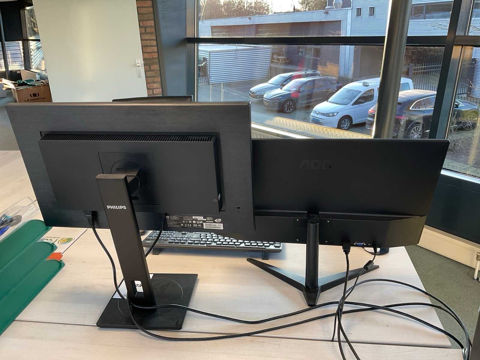 Bestaande uit: 1x Philips 242b1g/00, 24 inch, 1x AOC AOC24B1, 24 inch, toetsenbord, muis. Nee