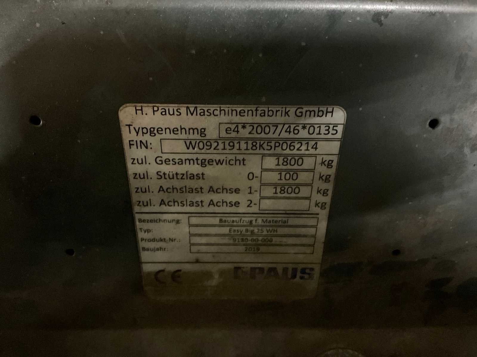2019 paus easy big 25wh ladderlift aanhangwagen, 53-wv-jh