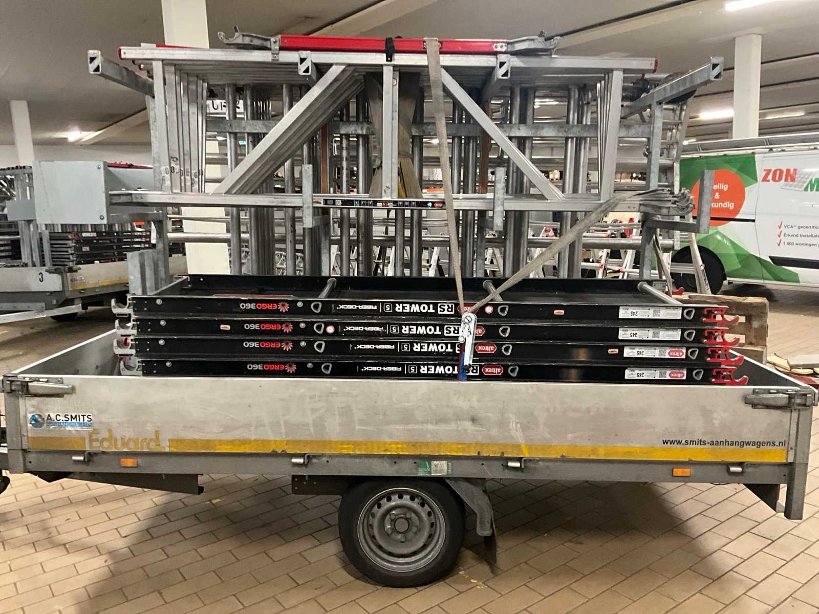 Inclusief steigerbok met 5x Altrex RS Tower 5 fiber deck 60x240cm, 7x Altrex safe quick 2 voorloopleuning 245cm, 8x Altrex RS Tower 5 opbouwframe 130x200cm, Altrex stabilisatoren, Altrex wielen en 3x RSS dakrandbeveiliging 100x300cm Nee Merk: Eduard Type: P3 Bouwjaar: 2021 Chassisnummer: YC3EDUARD21138304 Aantal assen: 1 Laadbak afmeting l: 310cm Laadbak afmeting b: 160cm Ledig gewicht: 334kg Laadvermogen: 1166kg Datum eerste toelating: 2021-11-04 Datum eerste toelating (NL): 2021-11-04 Kenteken: 88-WBL-5