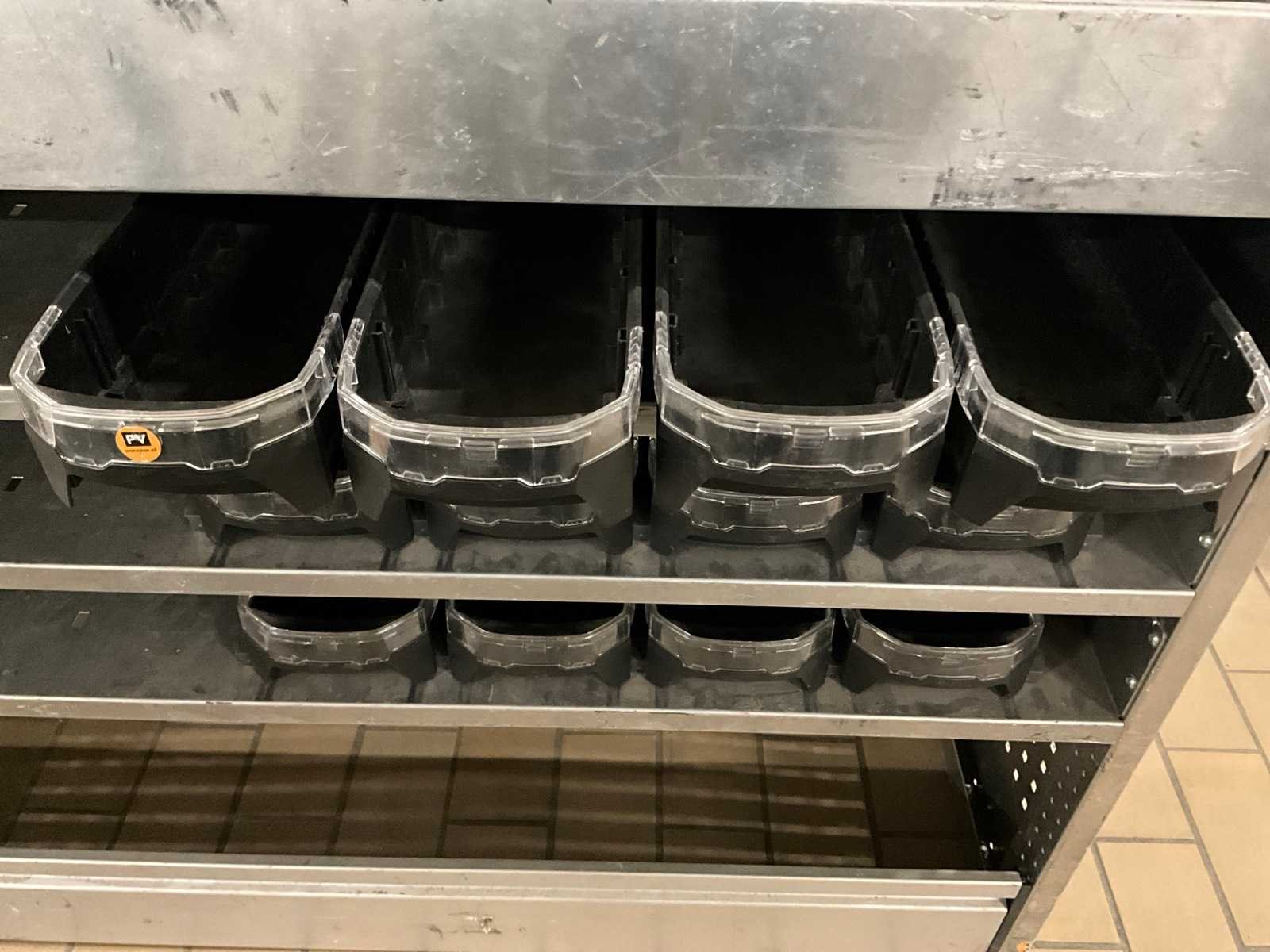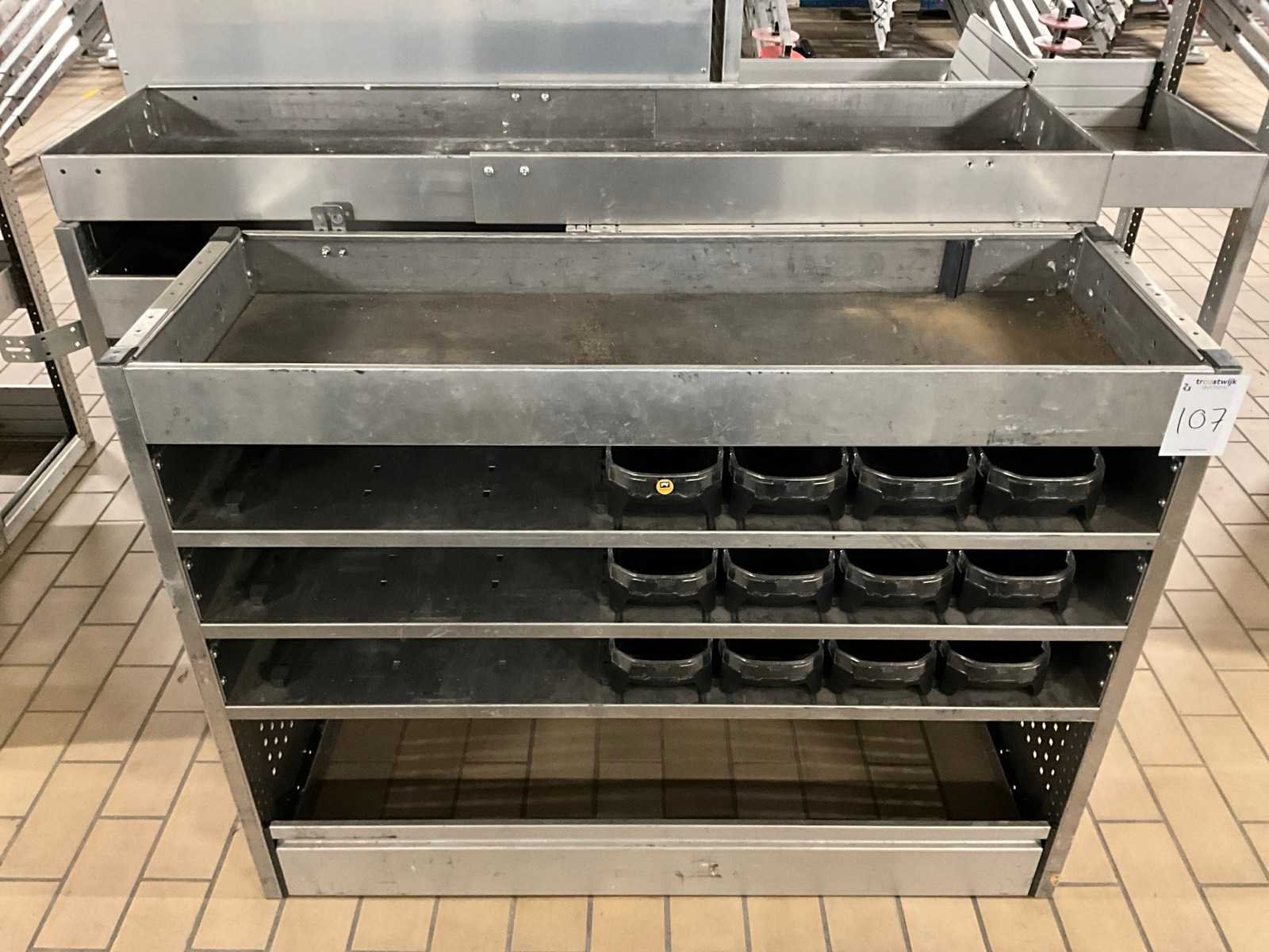 Afmetingen: H95xL125xD42cm en H105xL150x42cm; 1x bedrijfswageninrichting met 2x lade en diverse kunststof voorraadbakken Nee Merk: Aluca Materiaal: Metaal