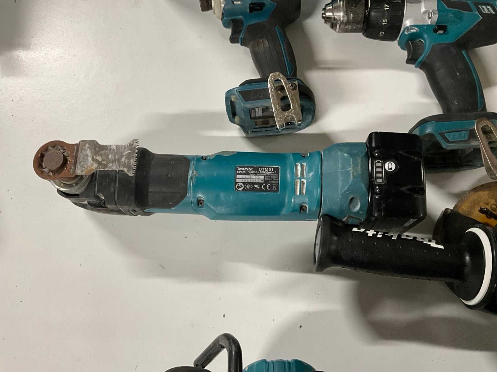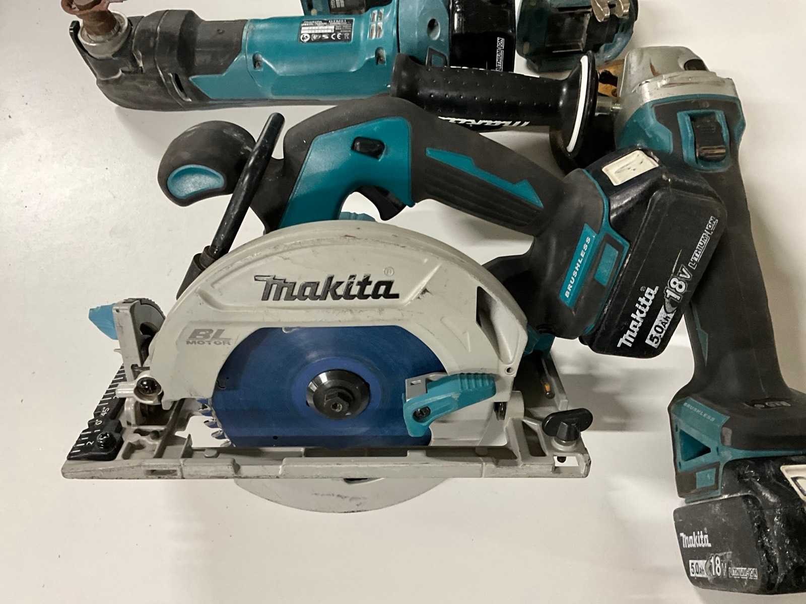 Bestaande uit: DGA 504 accu haakse slijpmachine , accu slagschroevendraaier, DHS 680 accu cirkelzaag, DTM51 accu multitool en een DDF 481 accu schroefmachine. Inclusief 3x 18V 5.0Ah accu en DC18RD acculader. Nee Merk: Makita Delig: 5 Aansluiting: 18V