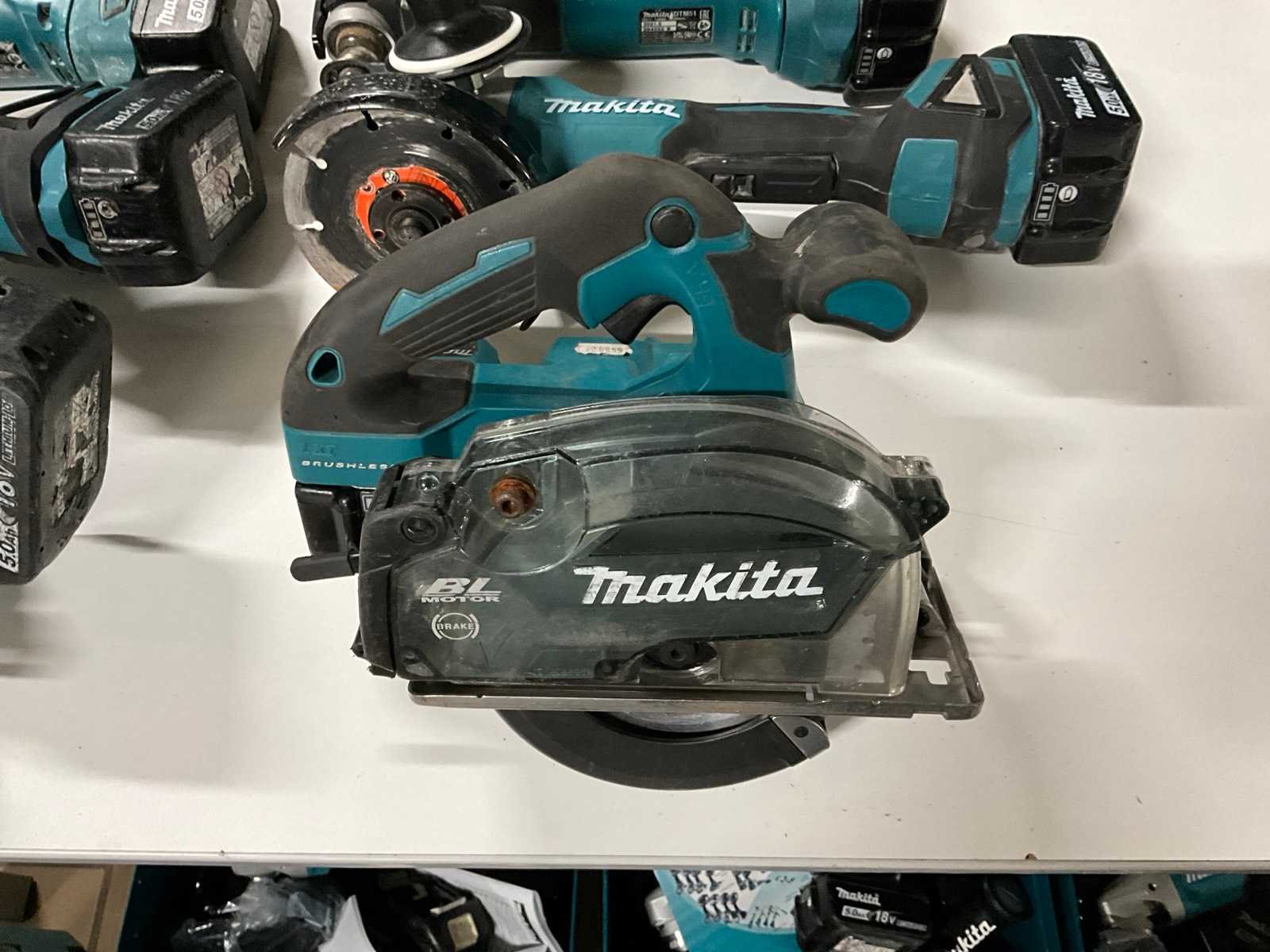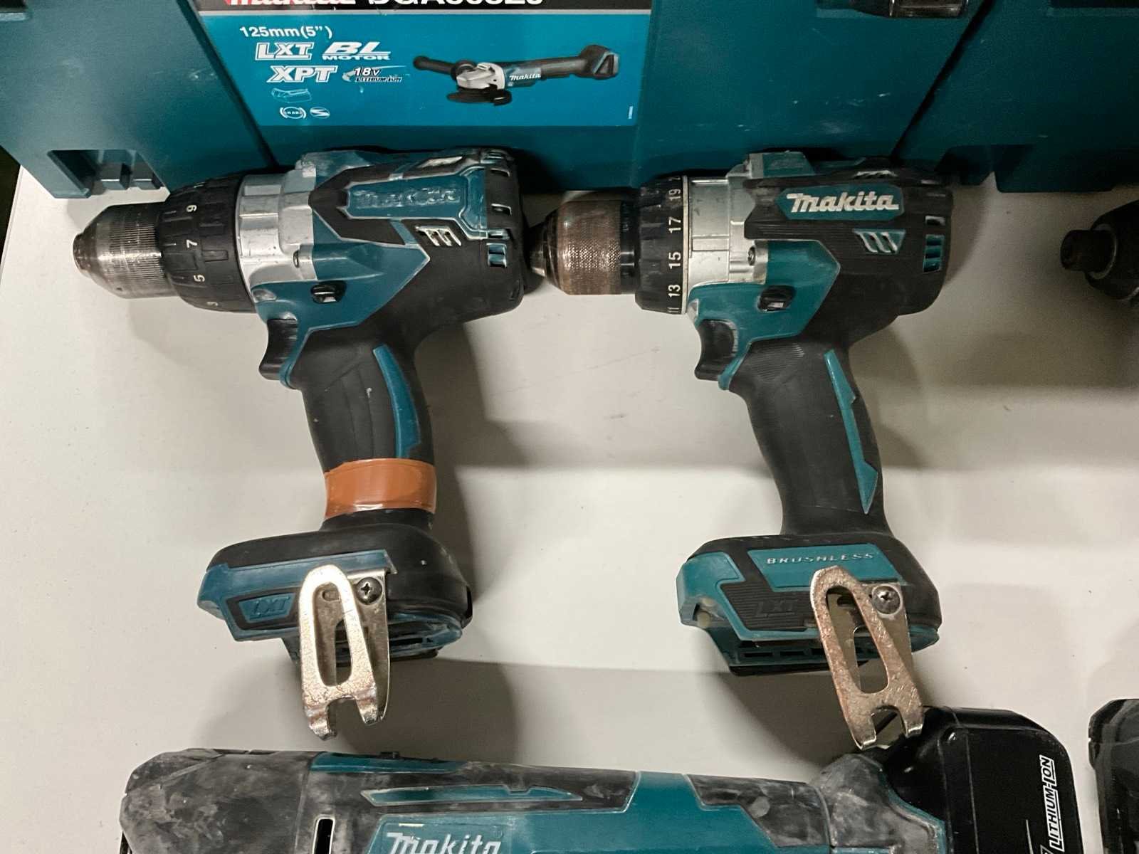 Bestaande uit: 2x DGA 504/508 accu haakse slijpmachine , 2x accu slagschroevendraaier, 2x DHS 680/DCS 553 accu cirkelzaag, 2x DTM51 accu multitool en een 2x DDF 481 accu schroefmachine. Inclusief 6x 18V 5.0Ah accu en 2x DC18RD acculader. Nee Merk: Makita Delig: 5 Aansluiting: 18V