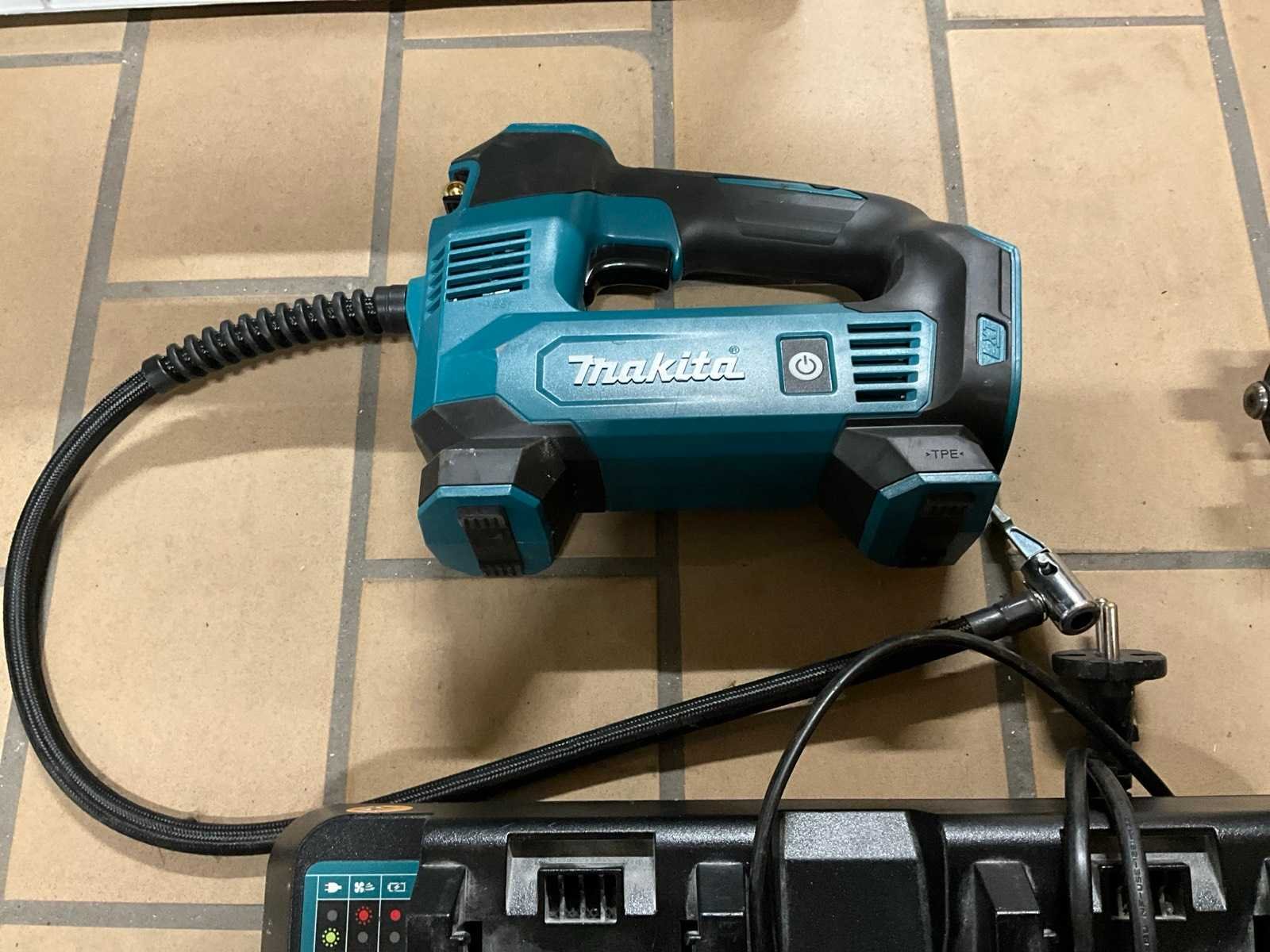 Makita haakse slijpmachine en luchtpomp