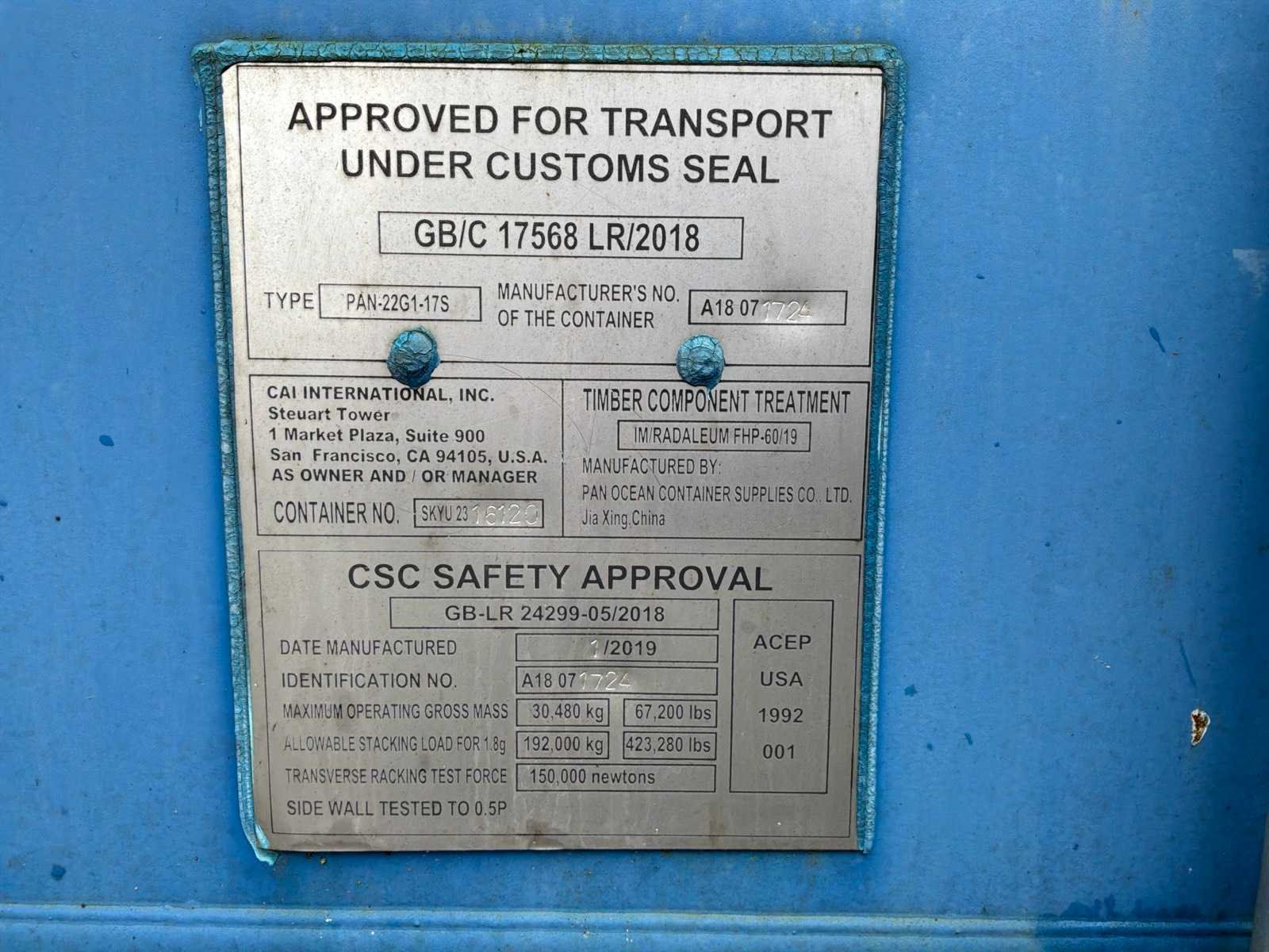 Zeecontainer met inhoud. Inhoud betreft afgekeurde steiger onderdelen en gereedschap. Koper is zelf verantwoordelijk voor transport en laden. Nee Type: 20ft Bouwjaar: 2019 Serienummer: SKY231612 Lengte (ft): 20 Eigen gewicht: 2000kg Totale afmeting L: 6060mm Totale afmeting Breedte: 2440mm Totale afmeting Hoogte: 2590mm