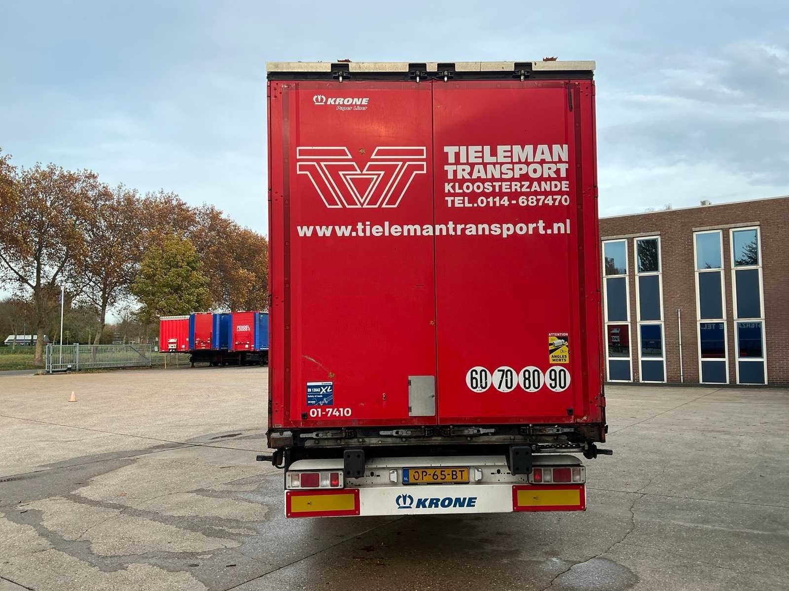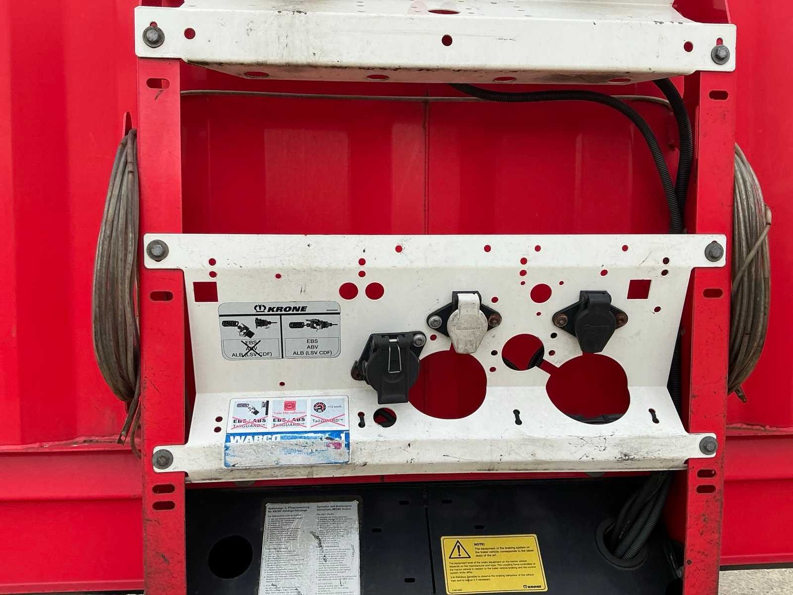 Max massa 41000kg, Afstand hart koppeling tot achterzijde voertuig 1200cm; Wielbasis 879 cm; 1e as is hefas; Voorzien van luchtgeveerde BPW assen, schuifzeilen, zijborden, schuifdak en palletkist Nee Merk: Krone Type: SD Type aanhangwagencarrosserie: Tautliner Bouwjaar: 2016 Chassisnummer VIN: WKESD000000693786 Kenteken: OP-65-BT Datum eerste toelating (NL): 2016-01-14 Datum eerste toelating: 2016-01-14 APK vervaldatum: 2026-01-20 Aantal assen: 3 Laadvermogen: 33950kg Eigen gewicht: 7050kg Totale afmeting L: 13860mm Totale afmeting Breedte: 2550mm Zelf rijdend exporteren: Ja