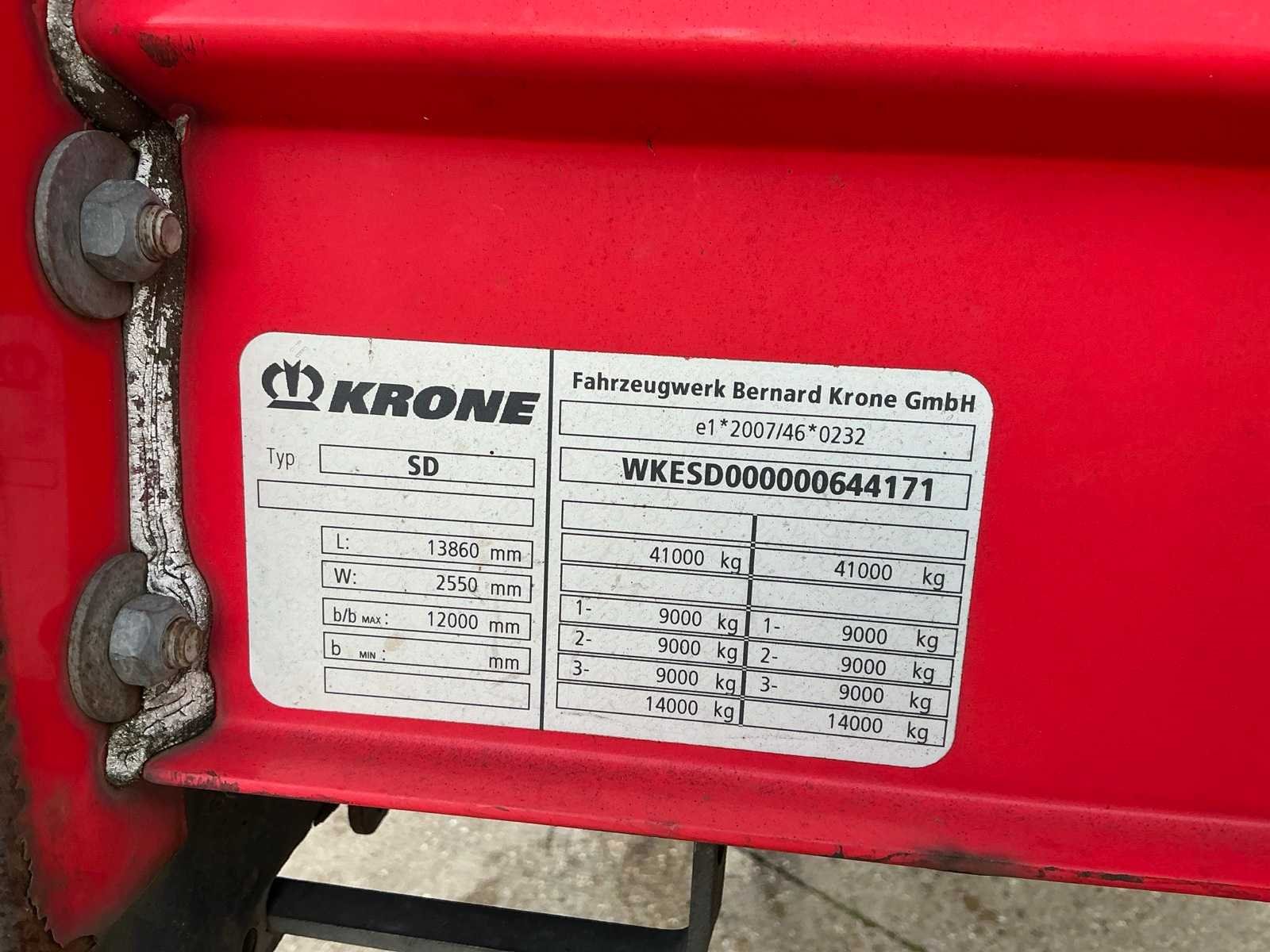Max massa 41000kg, Afstand hart koppeling tot achterzijde voertuig 1200cm; Wielbasis 879 cm; 1e as is hefas; Voorzien van luchtgeveerde BPW Eco plus assen, schuifzeilen, aluminium zijborden, schuifdak en palletkist Nee Merk: Krone Type: SD Type aanhangwagencarrosserie: Tautliner Bouwjaar: 2015 Chassisnummer VIN: WKESD000000644171 Kenteken: ON-55-NR Datum eerste toelating (NL): 2015-01-06 Datum eerste toelating: 2015-01-06 APK vervaldatum: 2026-01-06 Aantal assen: 3 Laadvermogen: 34111kg Eigen gewicht: 7130kg Totale afmeting L: 13860mm Totale afmeting Breedte: 2550mm Zelf rijdend exporteren: Nee No self drive export!: true