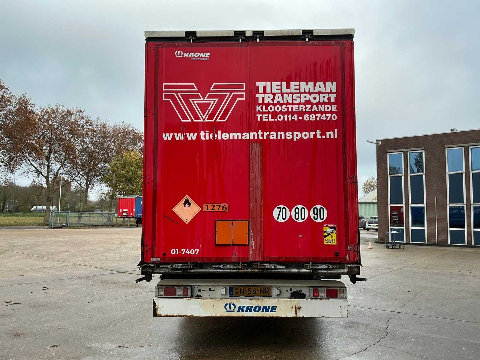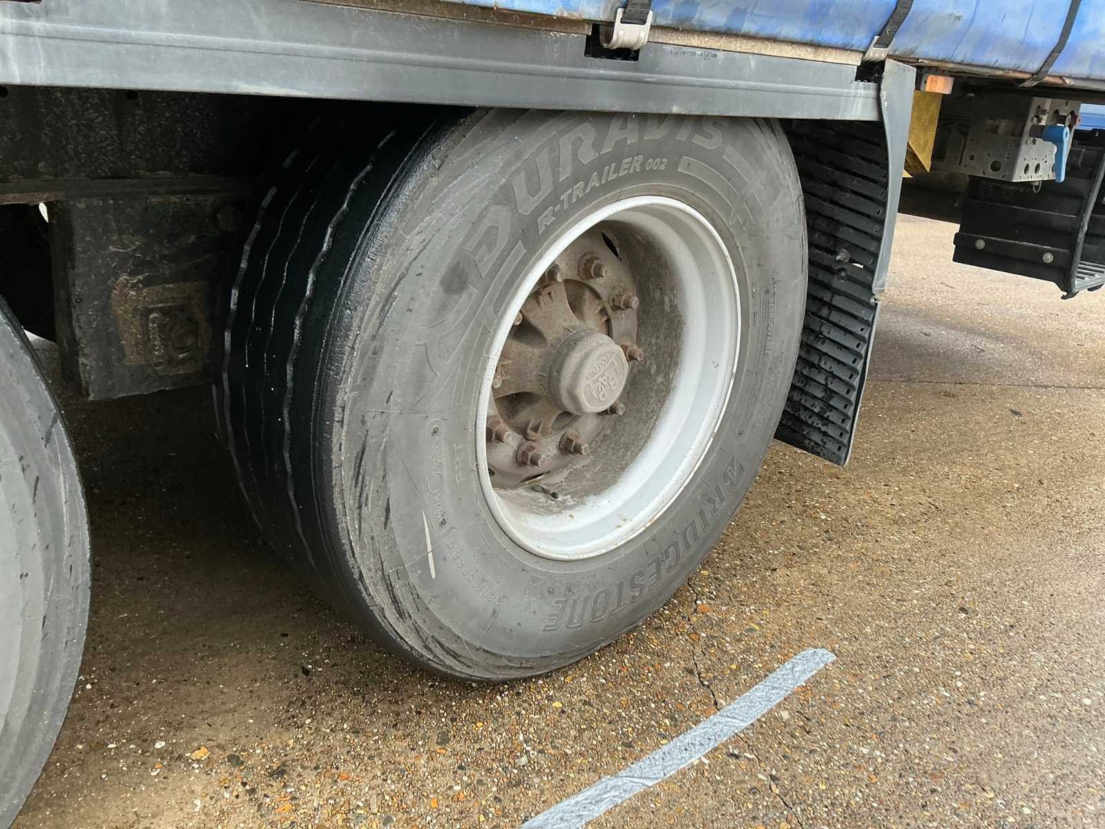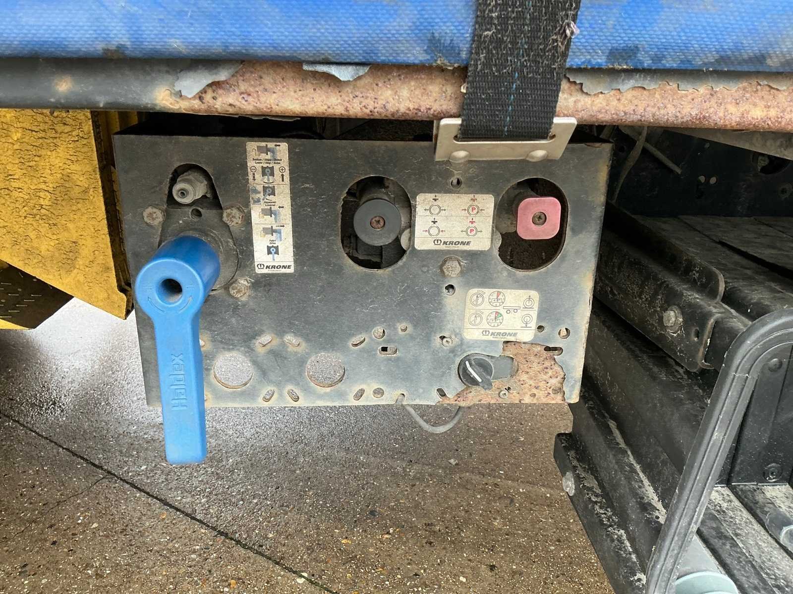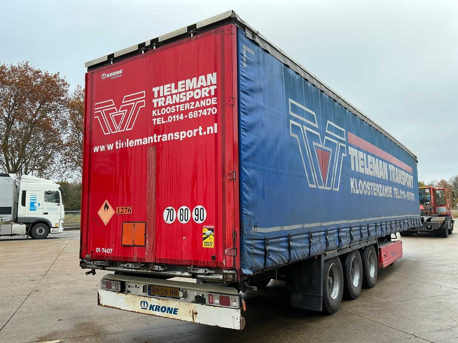 Max massa 41000kg, Afstand hart koppeling tot achterzijde voertuig 1200cm; Wielbasis 879 cm; 1e as is hefas; Voorzien van luchtgeveerde BPW assen, 1e as is lift-as, schuifzeilen, zijborden, schuifdak en palletkist, bandenmaat 385/65R22.5, zonder de inhoud. Nee Merk: Krone Type: SD Type aanhangwagencarrosserie: Tautliner Bouwjaar: 2015 Chassisnummer VIN: WKESD000000644172 Kenteken: ON-56-NR Datum eerste toelating (NL): 2015-01-06 Datum eerste toelating: 2015-01-06 APK vervaldatum: 2026-01-07 Aantal assen: 3 Laadvermogen: 34111kg Eigen gewicht: 6889kg Totale afmeting L: 13860mm Totale afmeting Breedte: 2550mm Zelf rijdend exporteren: Nee No self drive export!: true