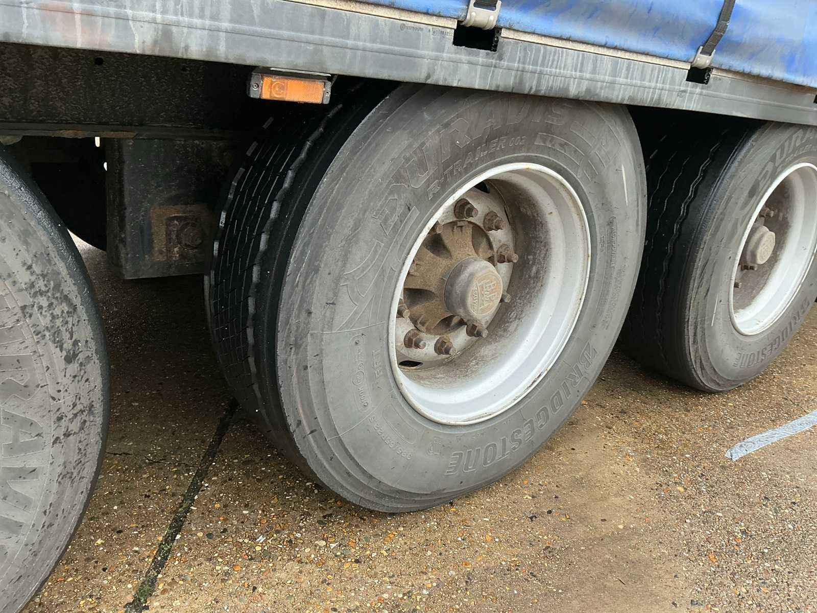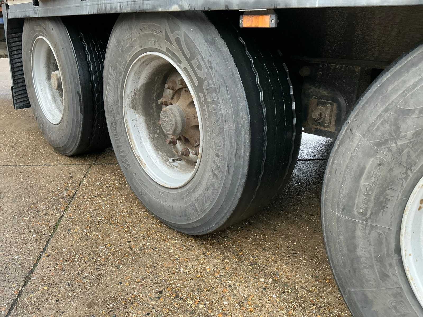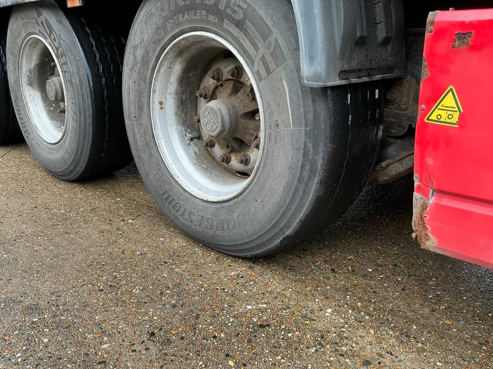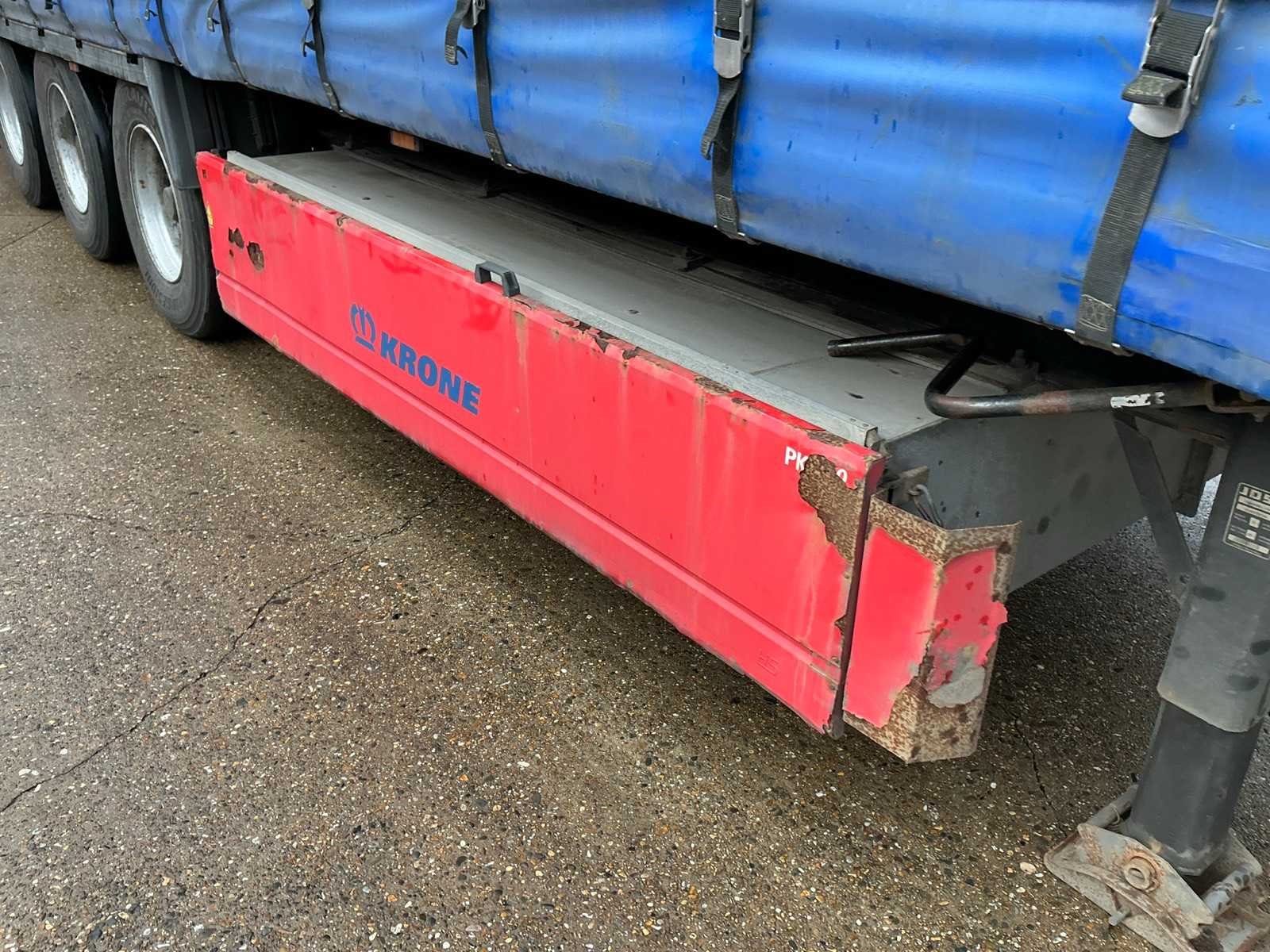 Max massa 41000kg, Afstand hart koppeling tot achterzijde voertuig 1200cm; Wielbasis 879 cm; 1e as is hefas; Voorzien van luchtgeveerde BPW assen, 1e as is lift-as, schuifzeilen, zijborden, schuifdak en palletkist, bandenmaat 385/65R22.5, zonder de inhoud. Nee Merk: Krone Type: SD Type aanhangwagencarrosserie: Tautliner Bouwjaar: 2015 Chassisnummer VIN: WKESD000000644172 Kenteken: ON-56-NR Datum eerste toelating (NL): 2015-01-06 Datum eerste toelating: 2015-01-06 APK vervaldatum: 2026-01-07 Aantal assen: 3 Laadvermogen: 34111kg Eigen gewicht: 6889kg Totale afmeting L: 13860mm Totale afmeting Breedte: 2550mm Zelf rijdend exporteren: Nee No self drive export!: true